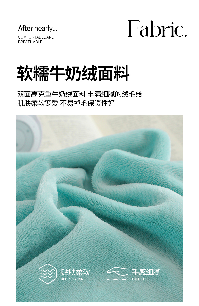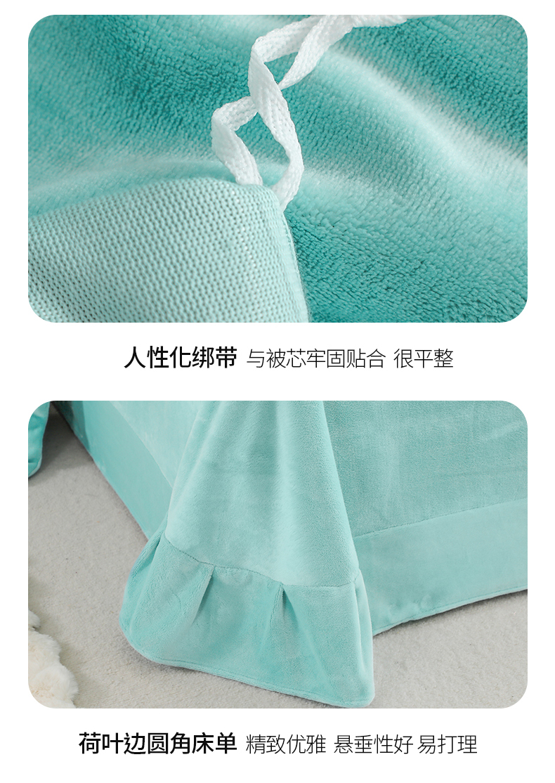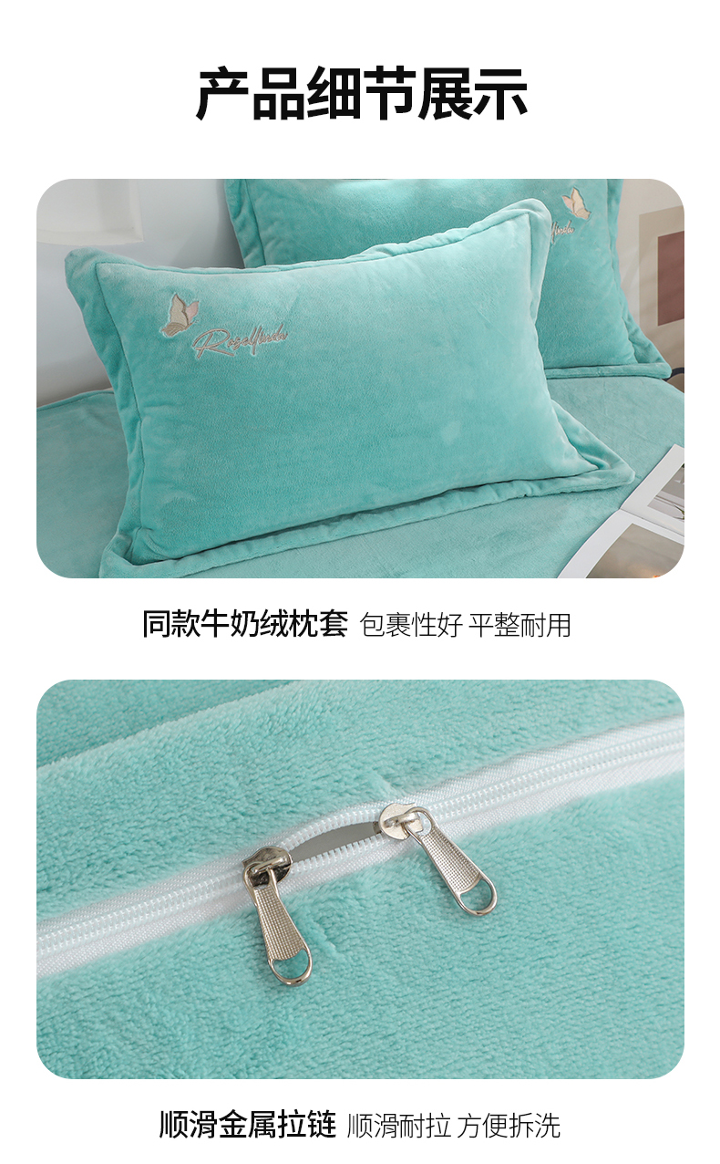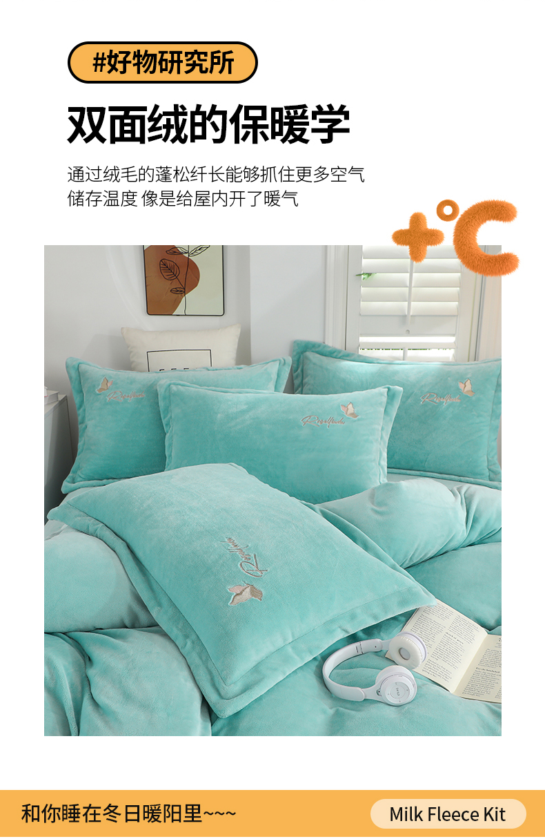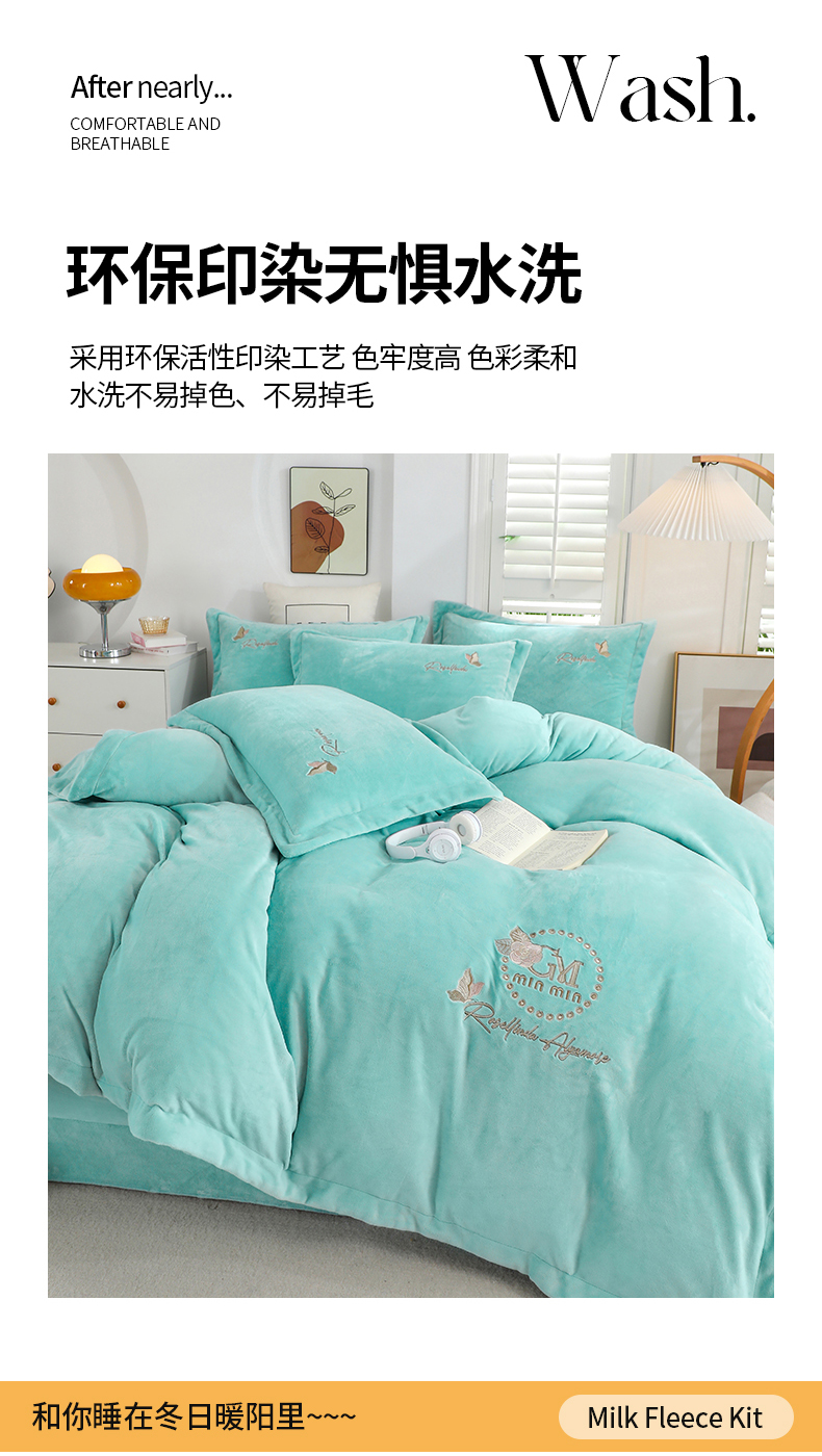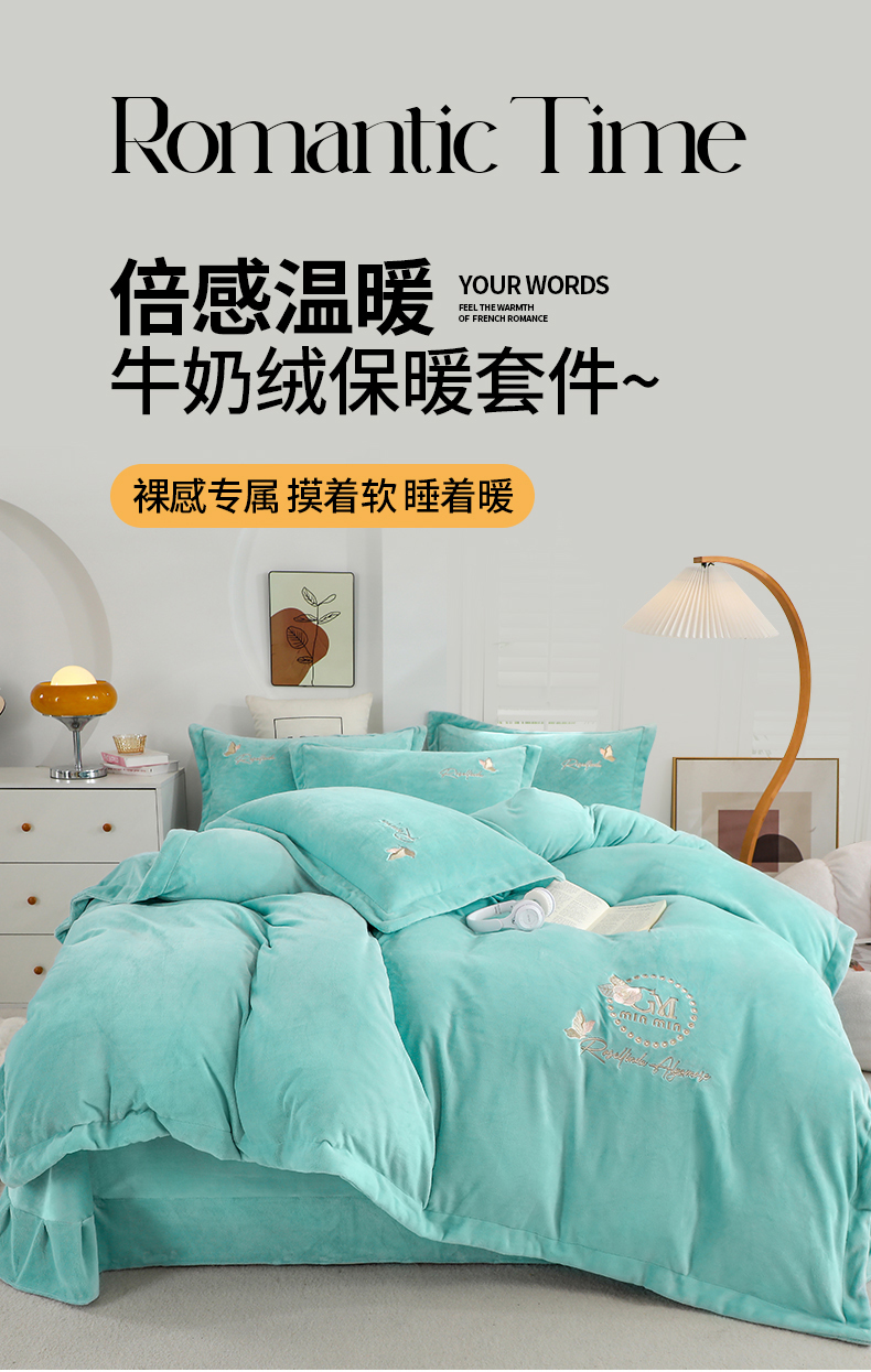 商品名称:畅畅家纺 2024新款宽边高克重冬季9斤加厚牛奶绒绣花四件套 水绿色
