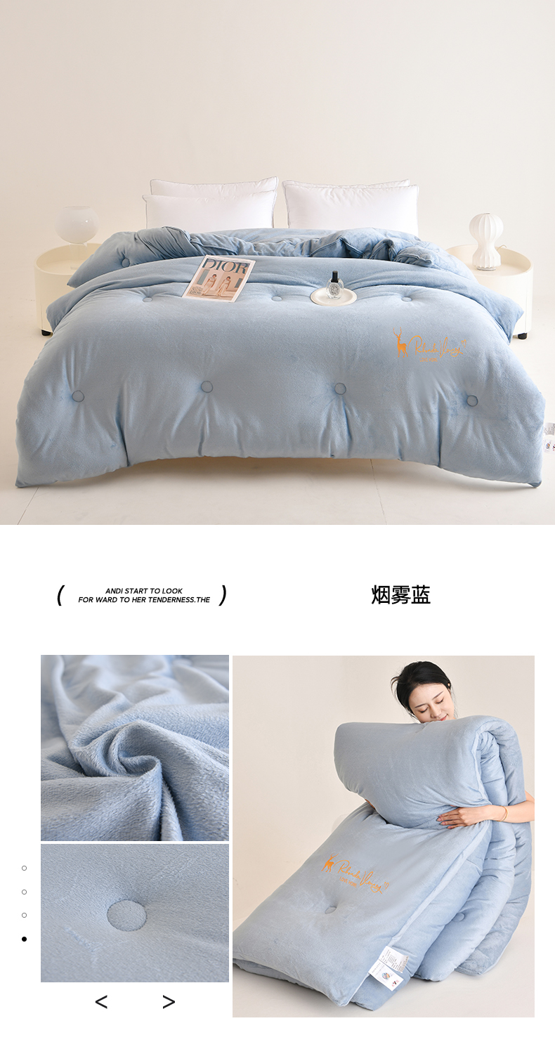 蓝冰家纺 2024新款水晶绒羽丝棉刺绣冬被 高雅月光蓝