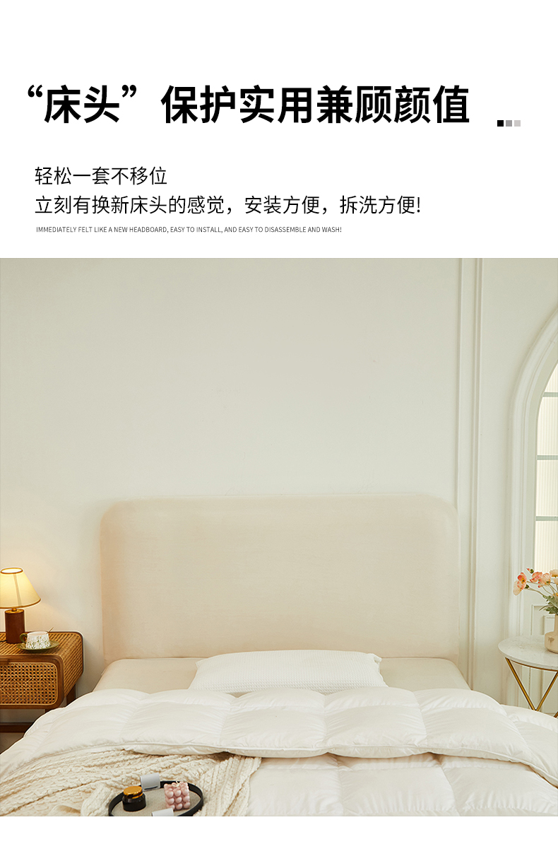 商品名称:逐日沙发套 2024新款超柔云感绒系列-床头罩 超柔云感绒-奶油白