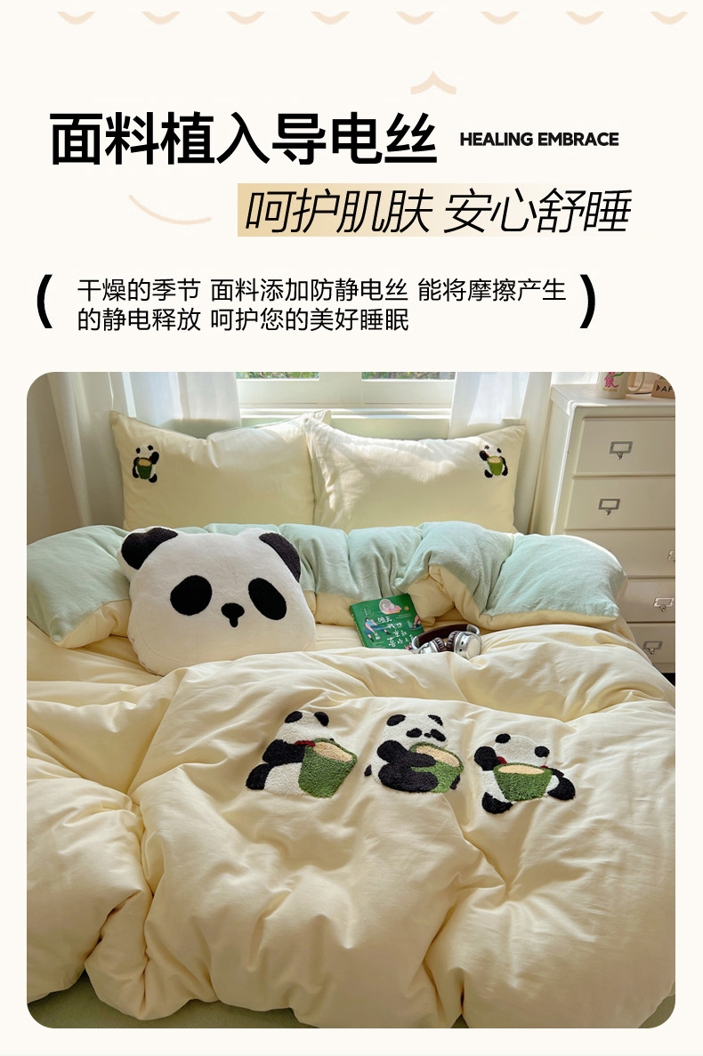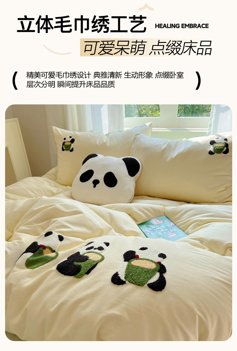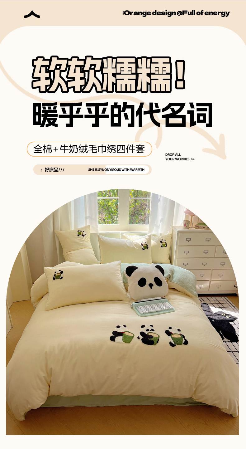 当前位置: 91家纺网 > 商品网购 > 床品套件 > 四件套 > 牛奶绒四件套 > 2025新款牛奶绒+全棉毛巾绣四件套 背篓熊猫
