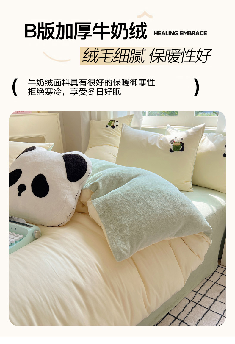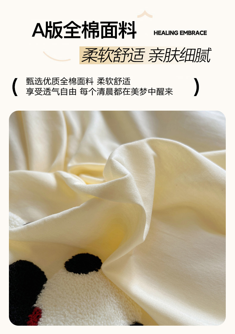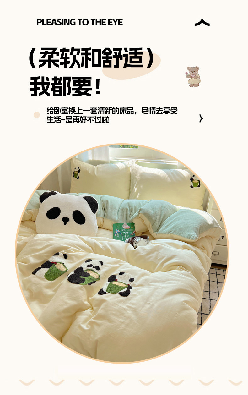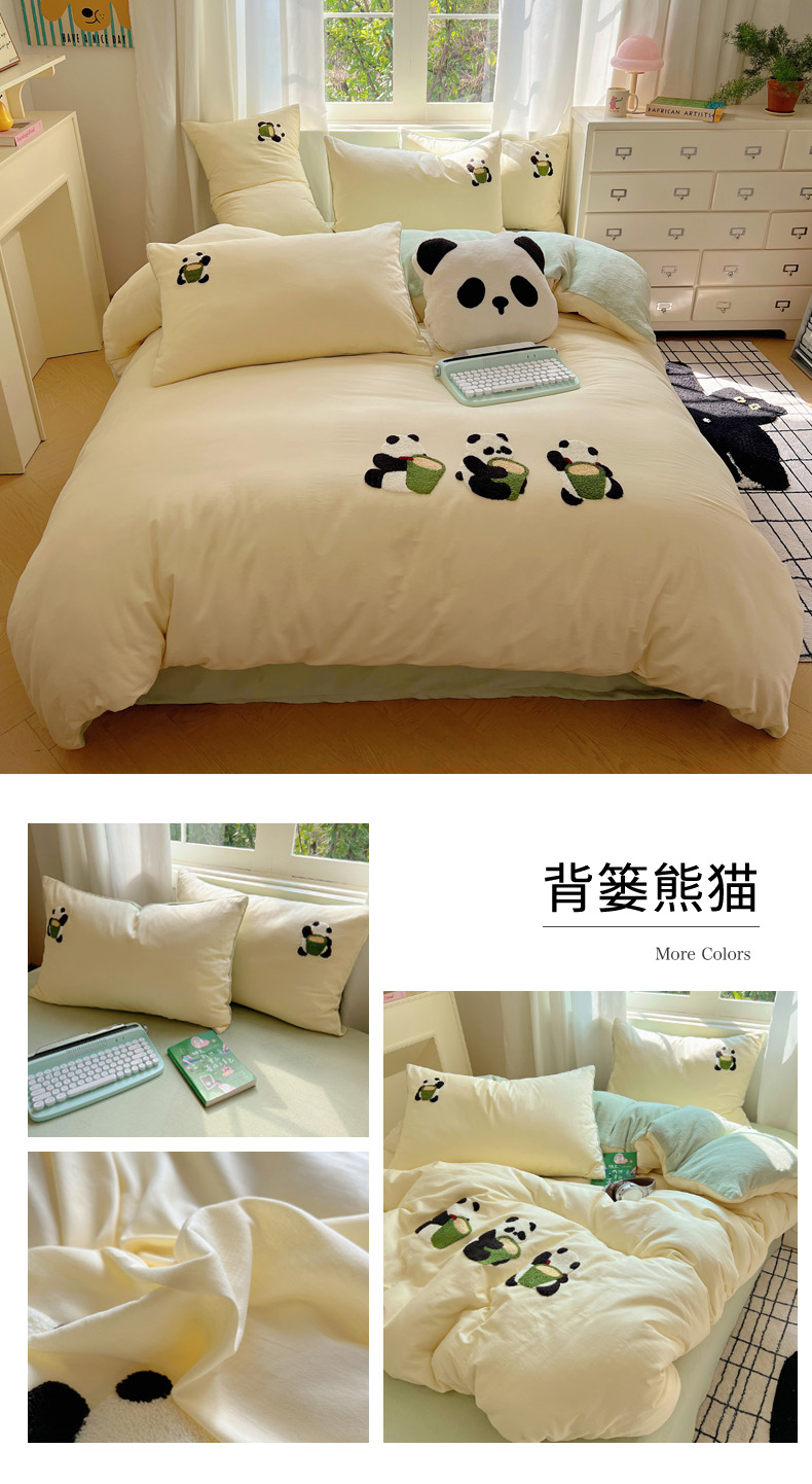 当前位置: 91家纺网 > 商品网购 > 床品套件 > 四件套 > 牛奶绒四件套 > 2025新款牛奶绒+全棉毛巾绣四件套 背篓熊猫