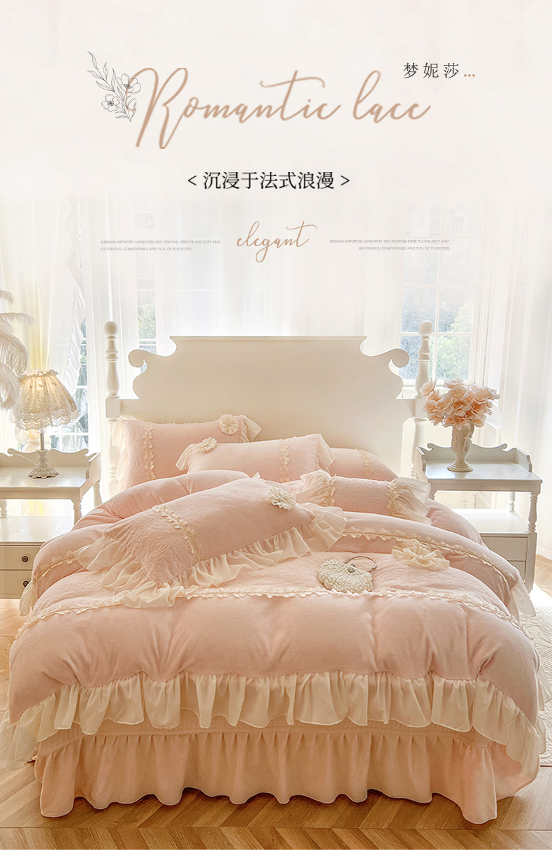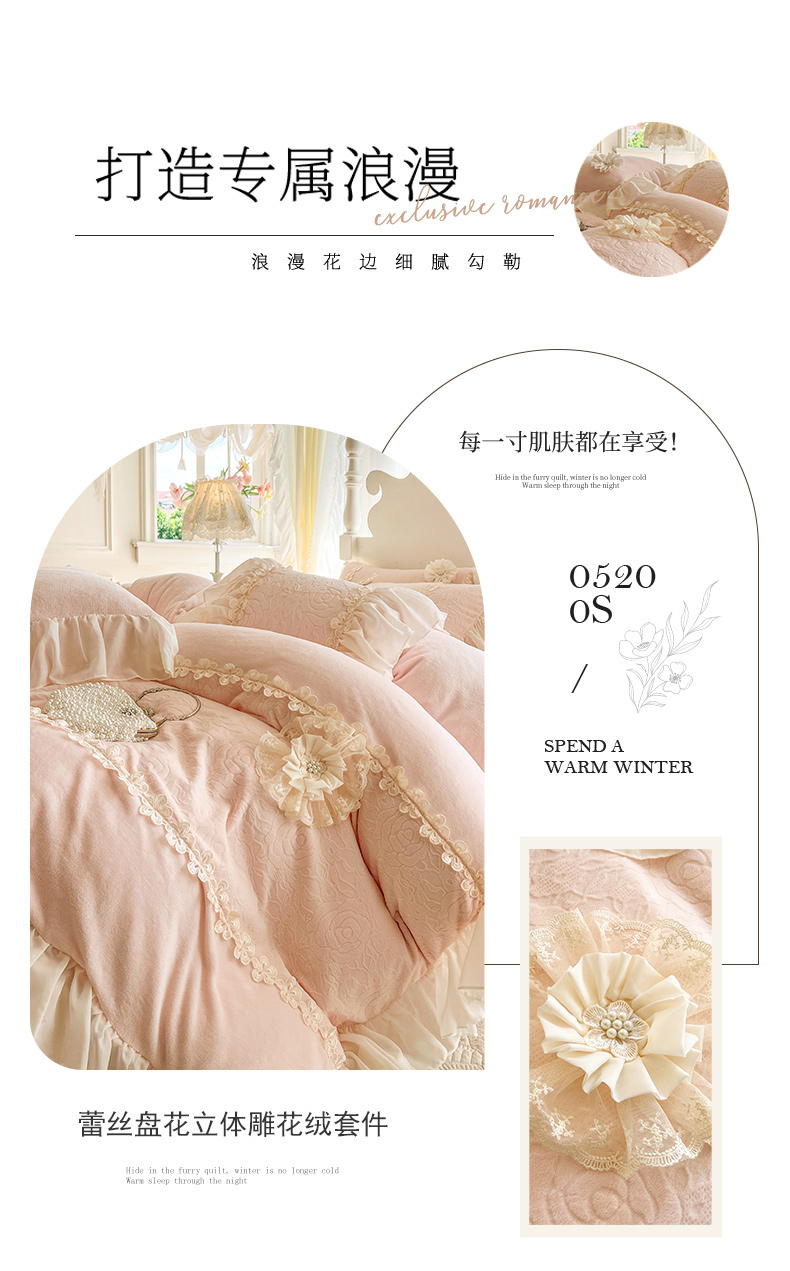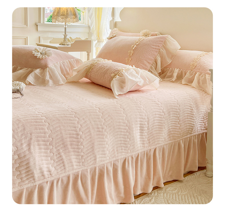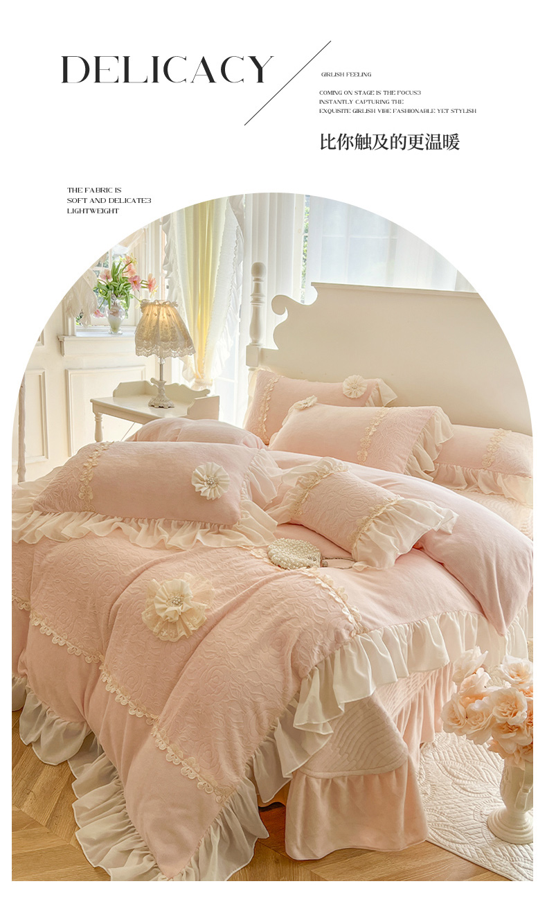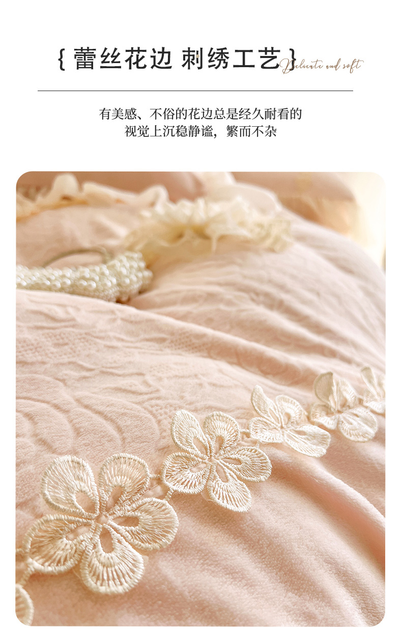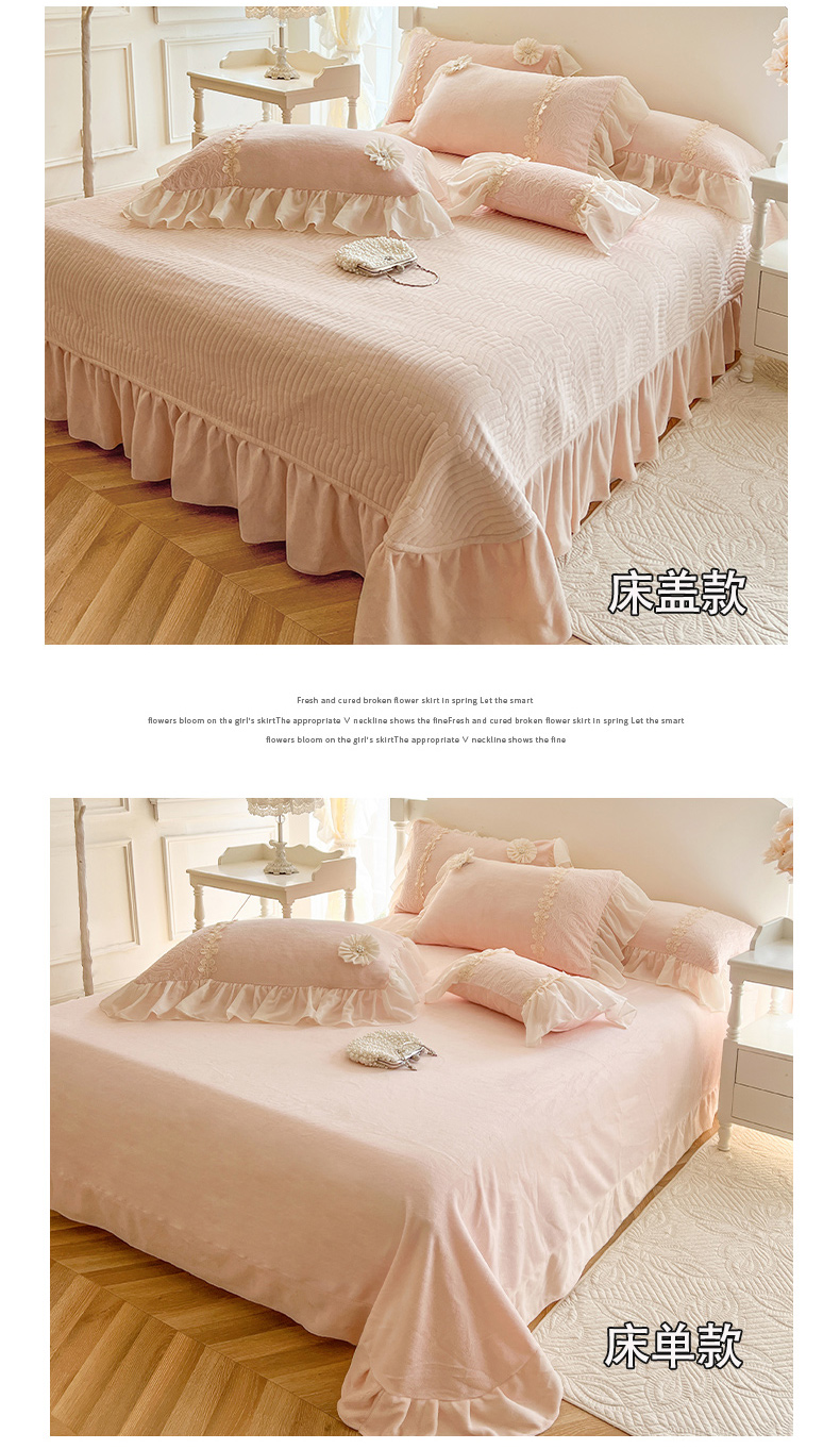(总) 乐朵家居 2025新款 维娜 牛奶绒 床盖款四件套,粉玉,奶白
