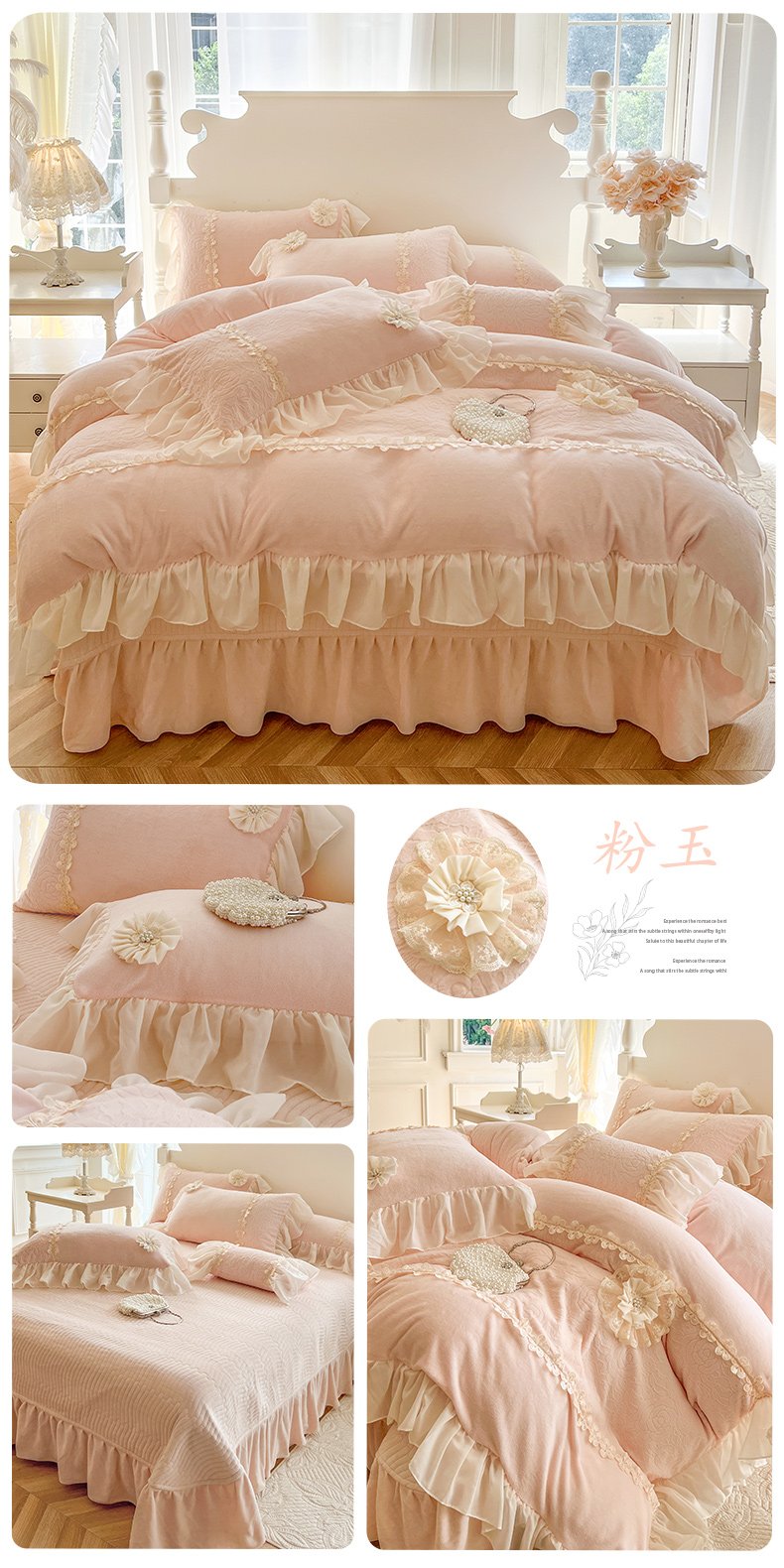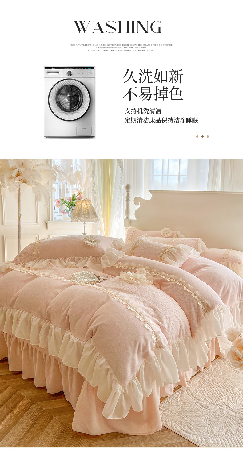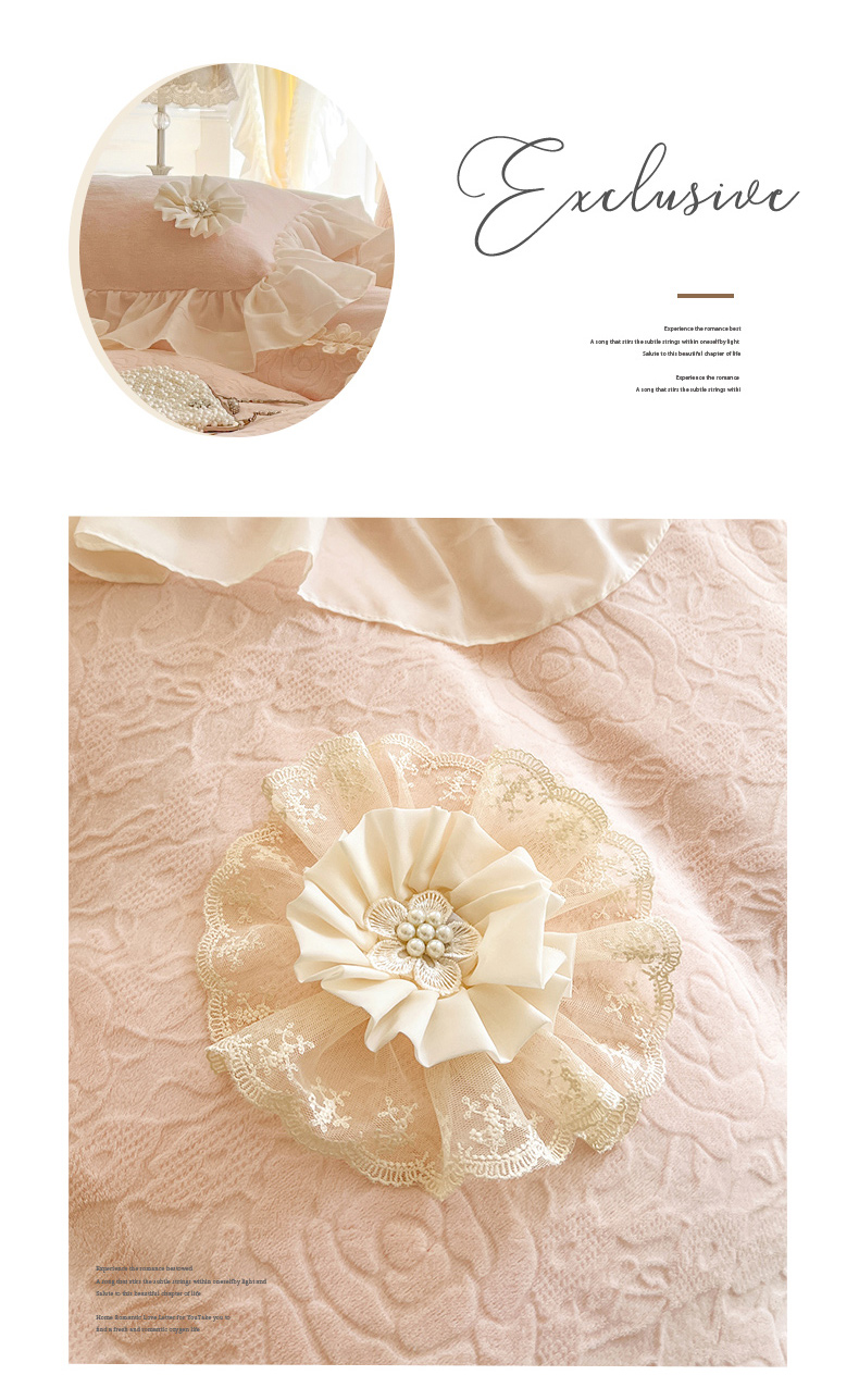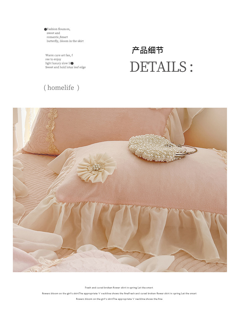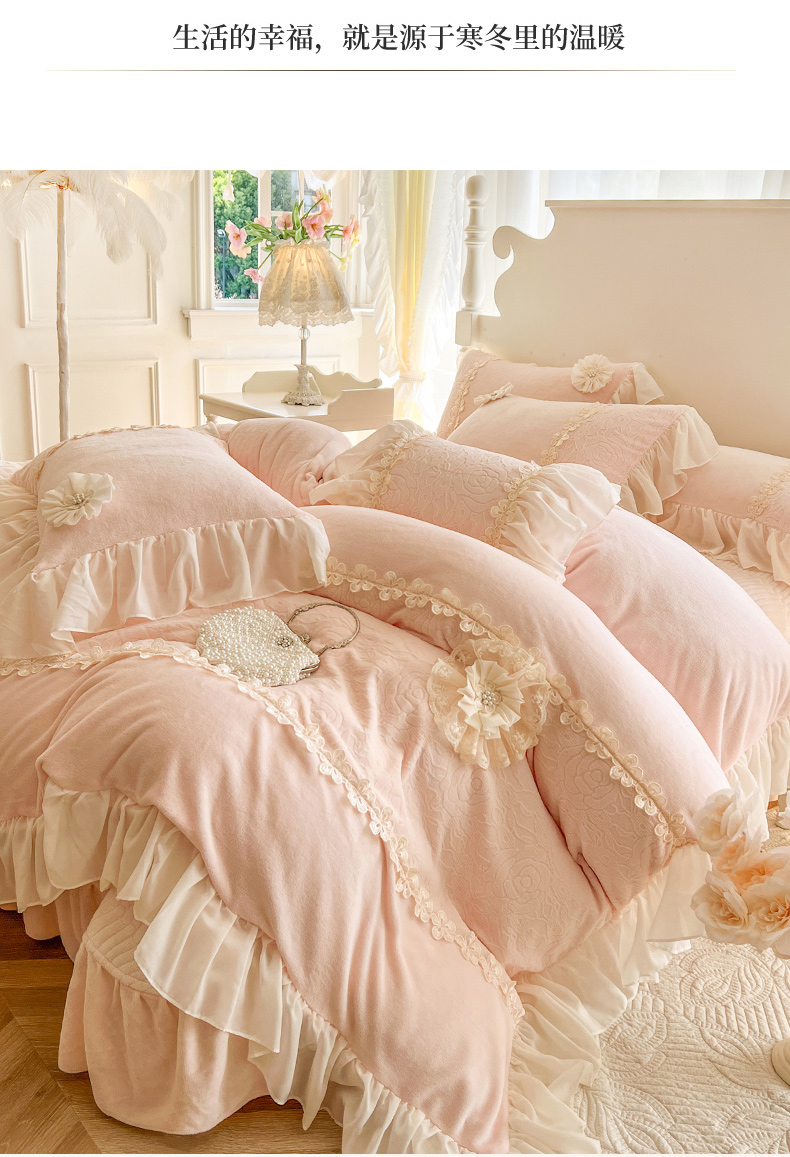(总)乐朵家居 2025新款 南法庄园 牛奶绒 夹棉床盖四件套,粉玉,奶白