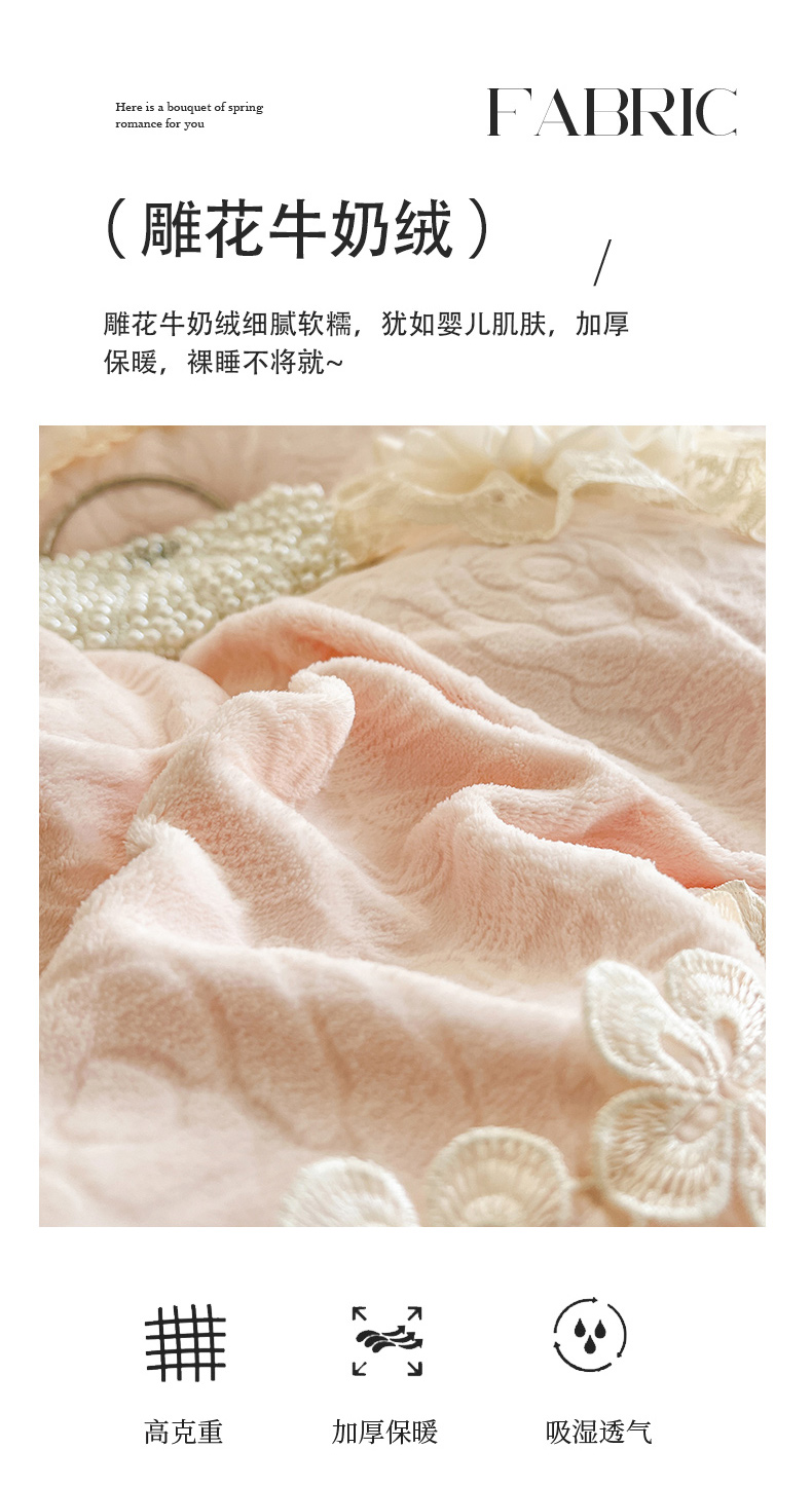 (总)乐朵家居 2025新款 左岸玫瑰 重工款 牛奶绒 夹棉床盖四件套(主推请询价),左岸玫瑰-粉玉,左岸玫瑰-米白