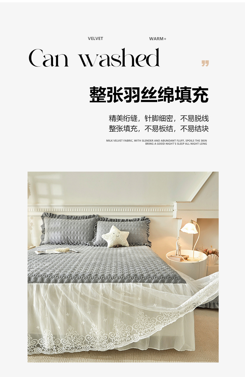 (总)怡源梦 2025新款A类牛奶绒夹棉床笠三件套-甜心公主系列,灰色,咖色,大红色,粉玉色,绿色,米白色,紫色