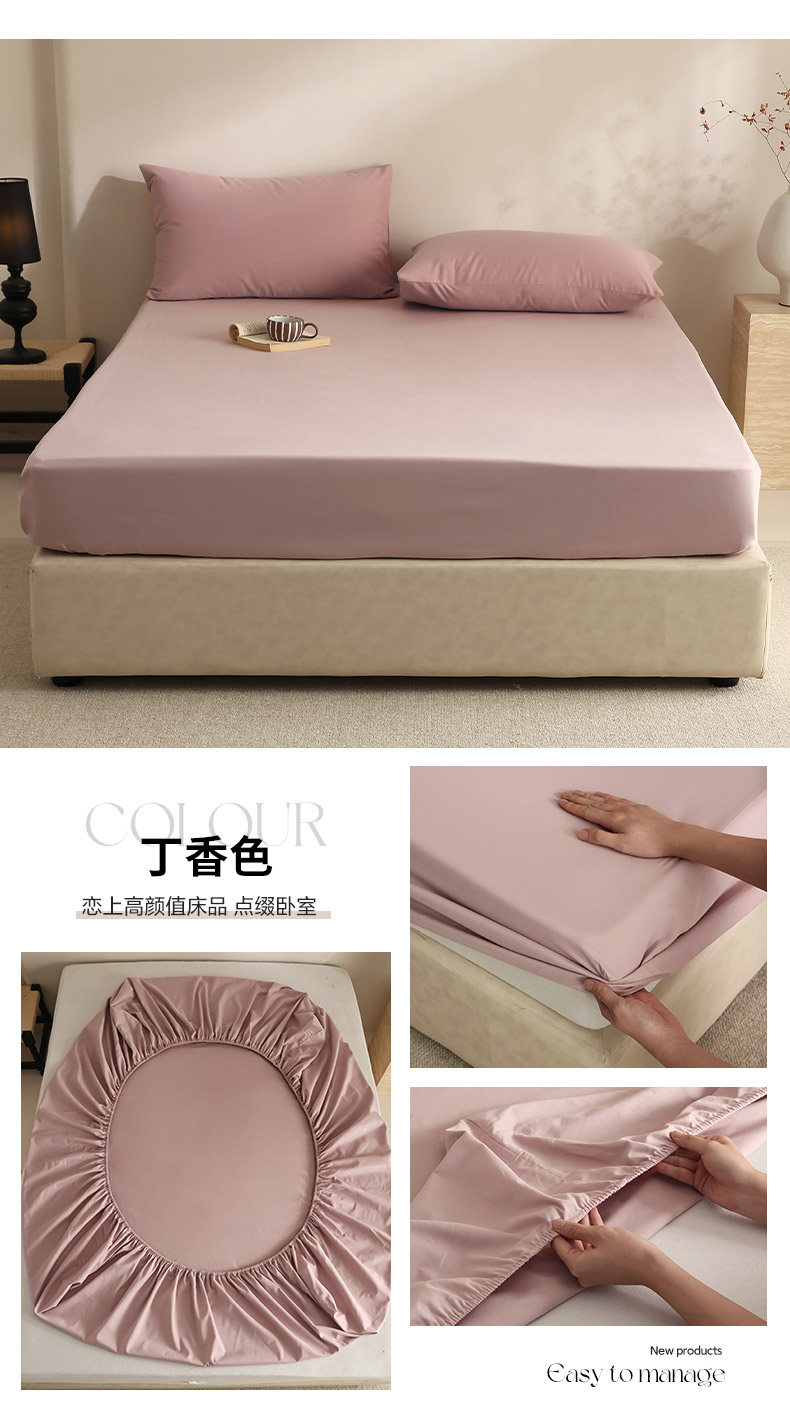 • 91家纺网 家纺一手货源 找家纺 轩和家居 2024新款50S长绒棉磨毛单床笠 丁香色