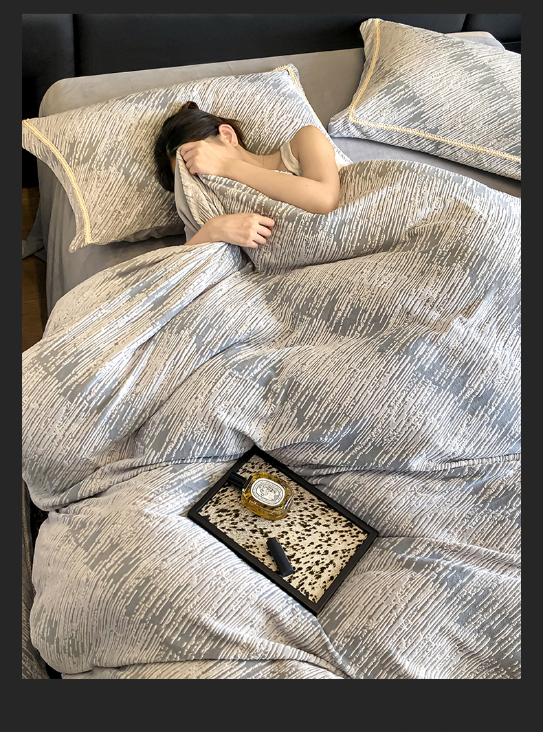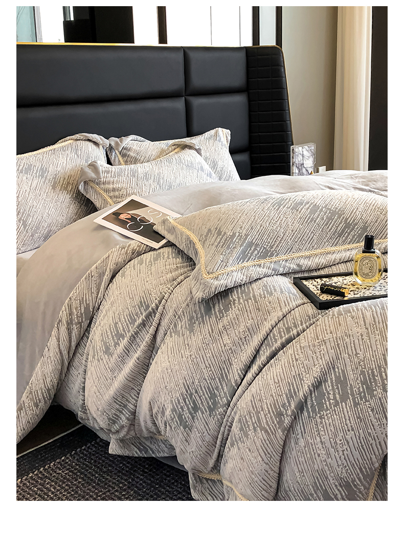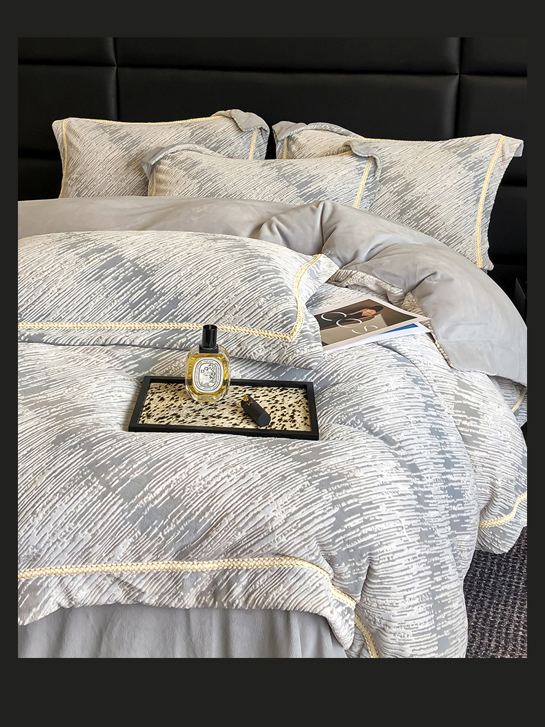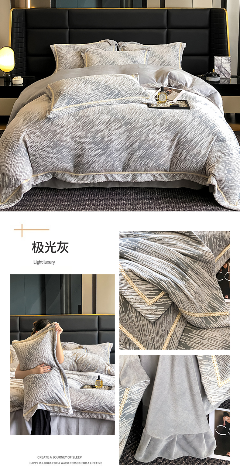 金喜 2024新款高克重全消光牛奶绒雕花绒轻奢风四件套加厚双面牛奶绒四件套-星川鎏金梦系列 极光灰