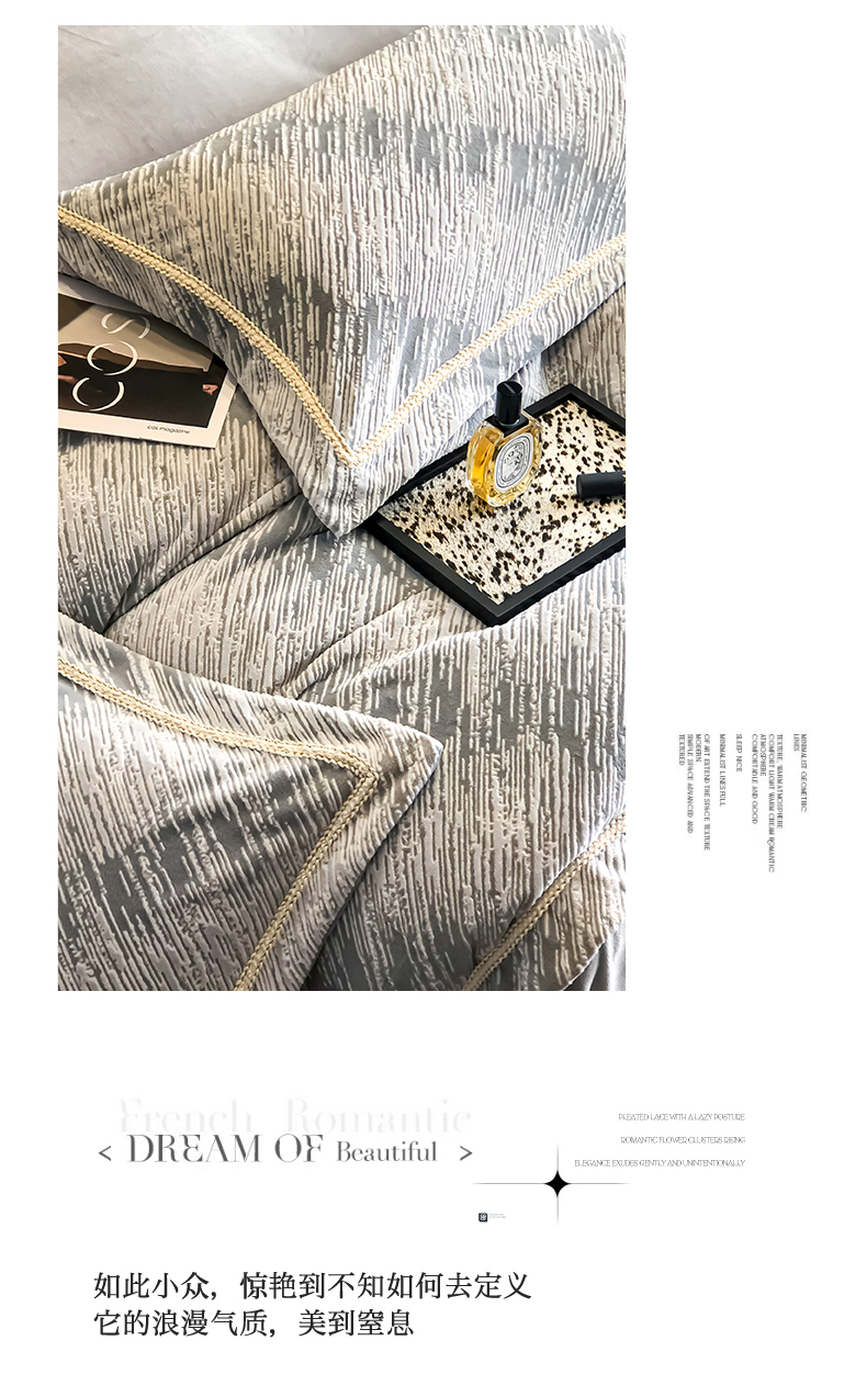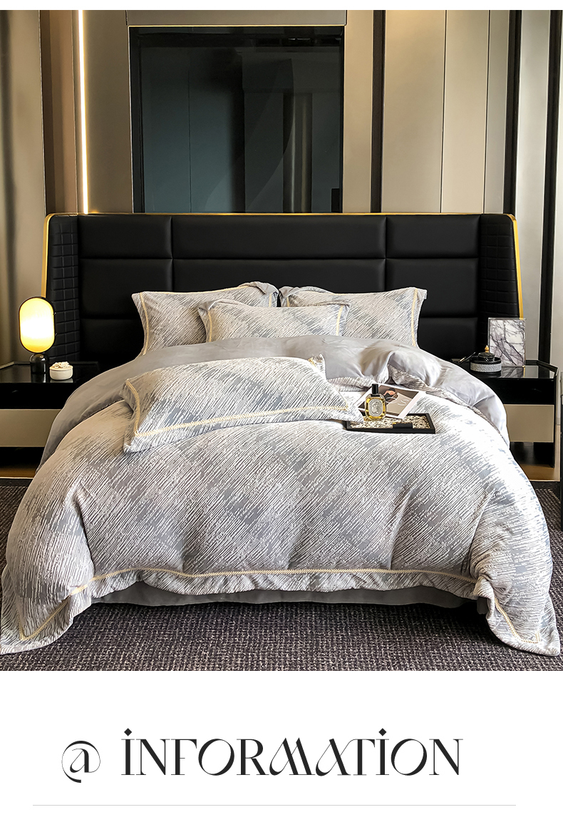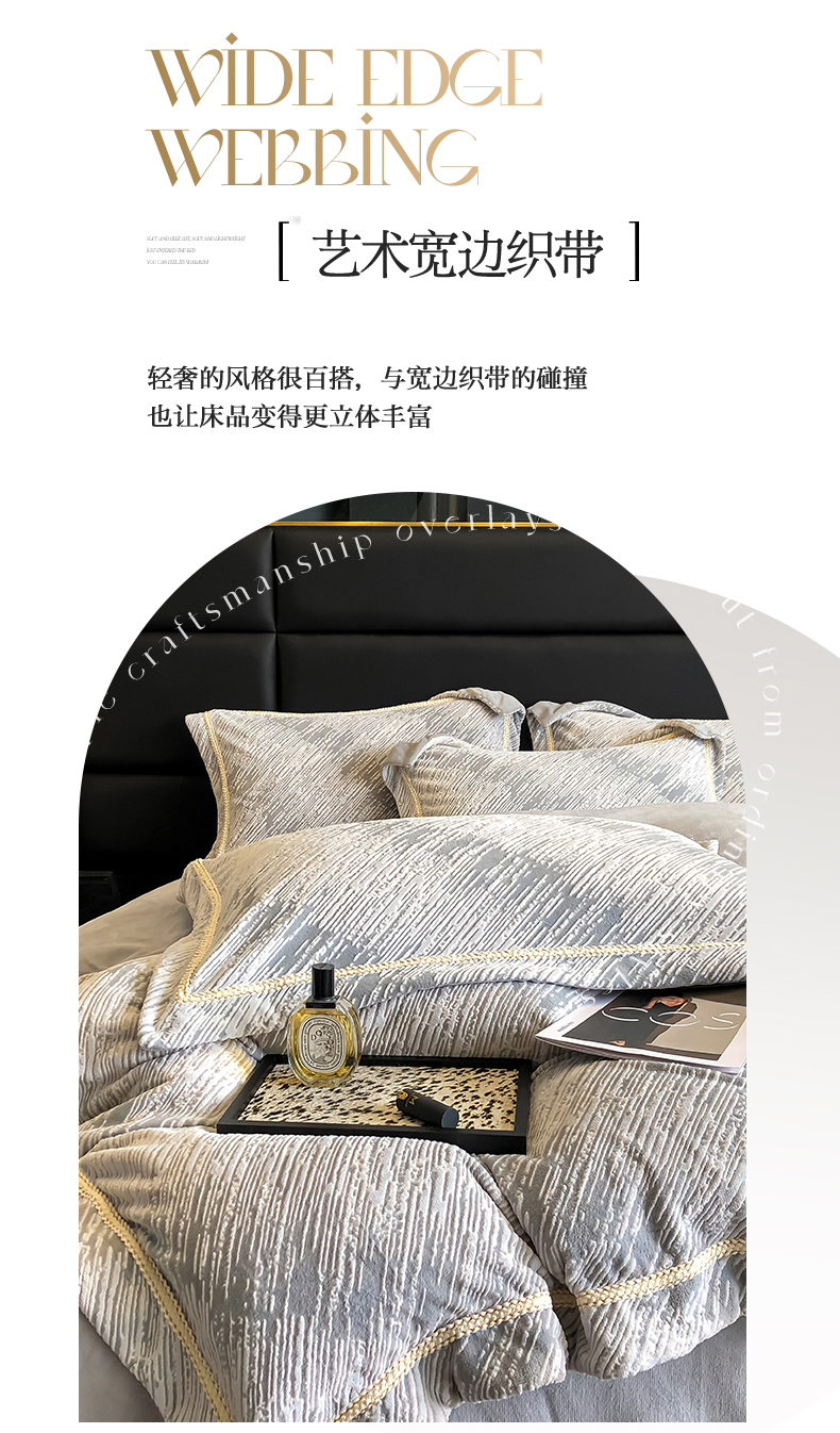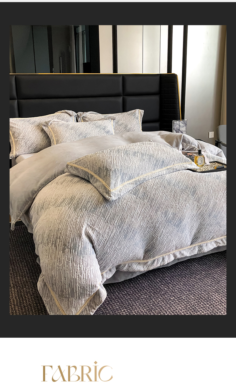 商品名称:金喜 2024新款高克重全消光牛奶绒雕花绒轻奢风四件套加厚双面牛奶绒四件套-星川鎏金梦系列 极光灰