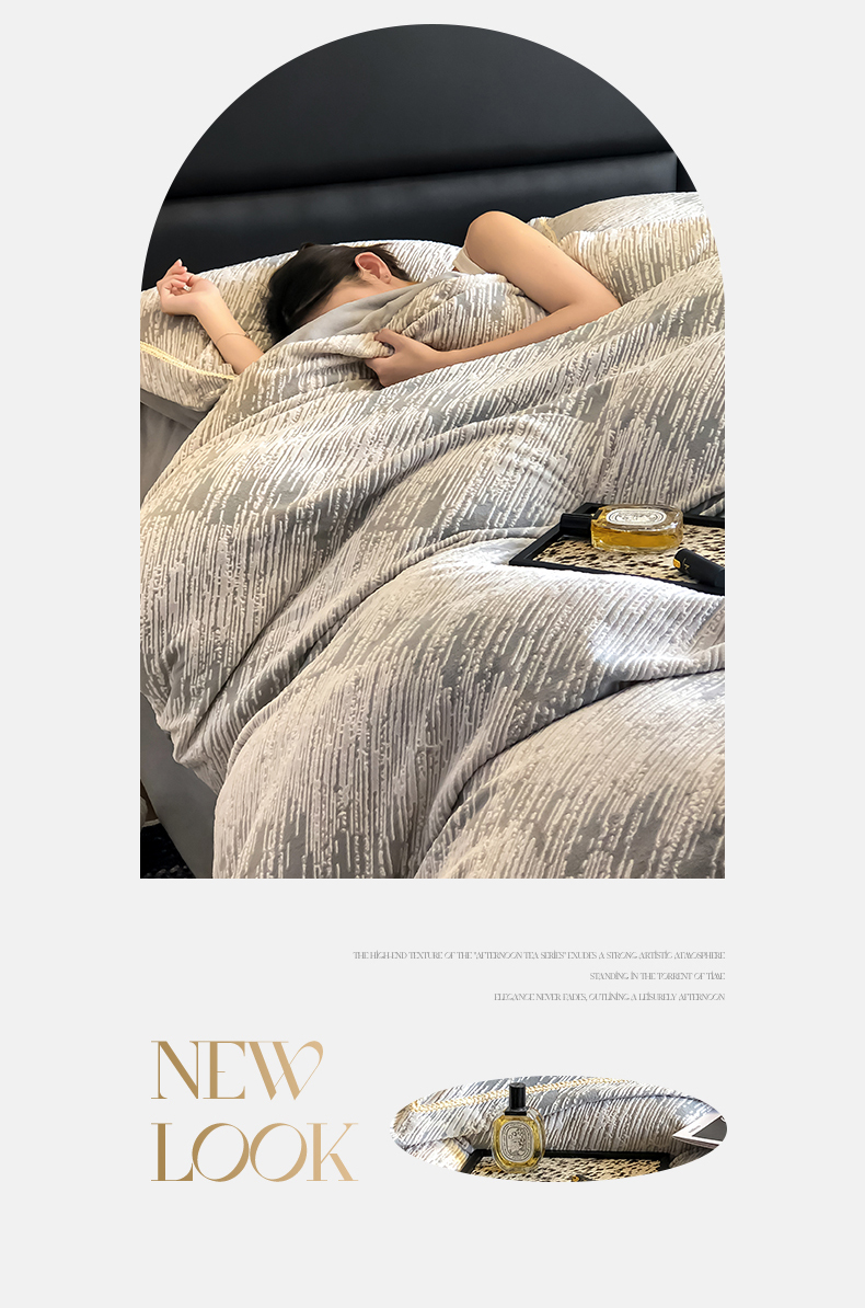 (总)金喜 2024新款高克重全消光牛奶绒雕花绒轻奢风四件套加厚双面牛奶绒四件套-星川鎏金梦系列,蜜茶棕,清水绿,桃花粉,浅灰棕