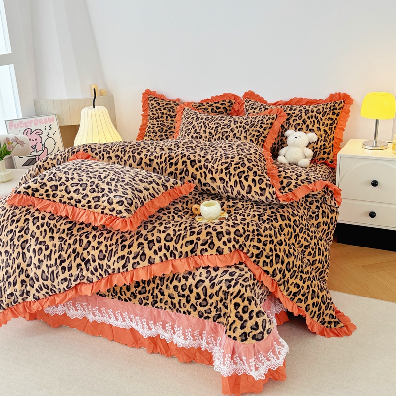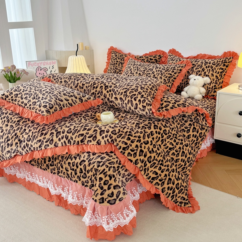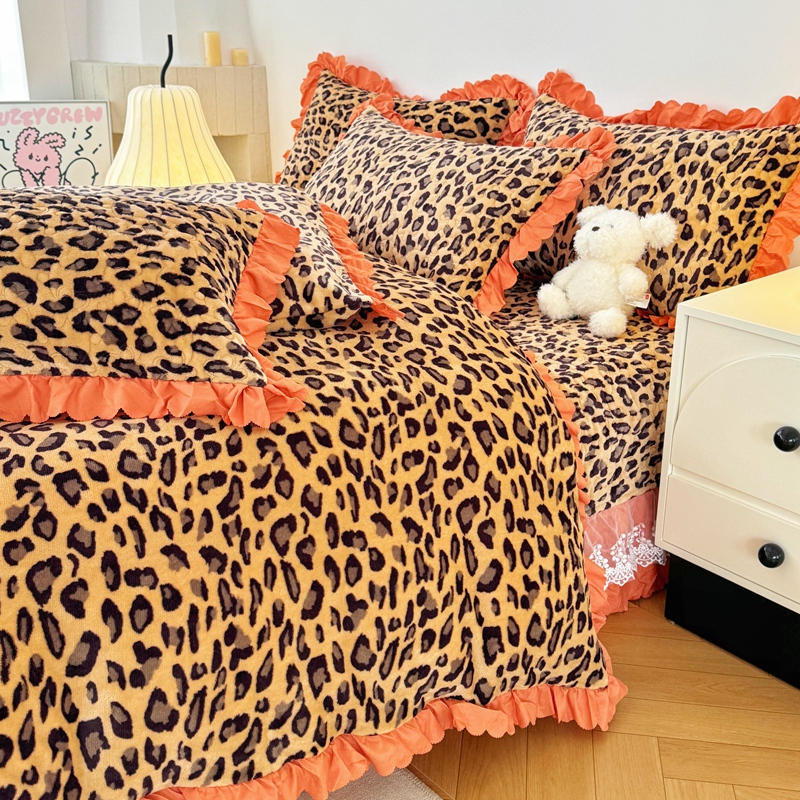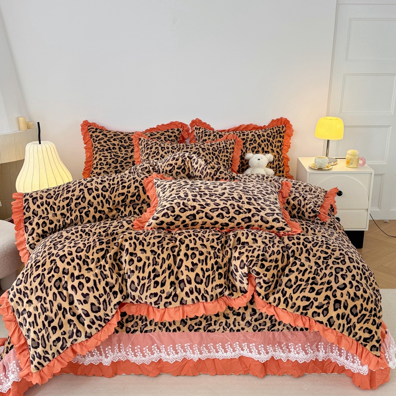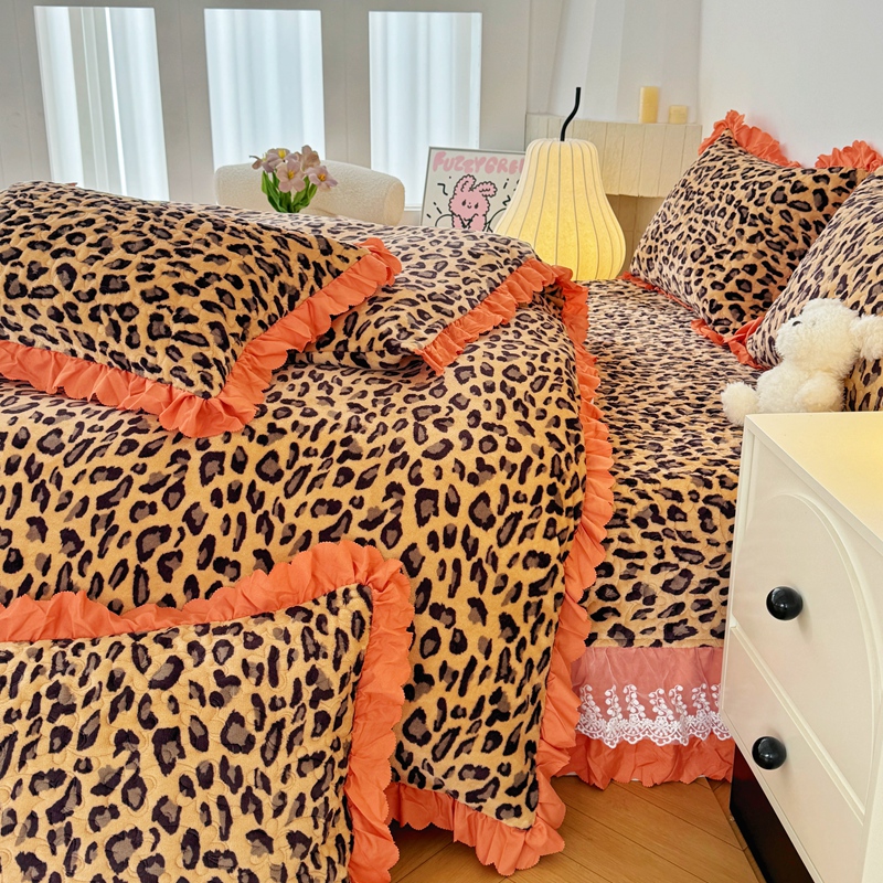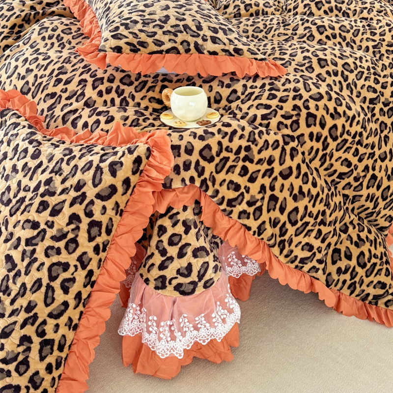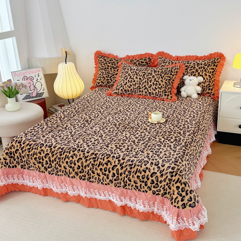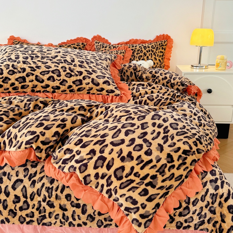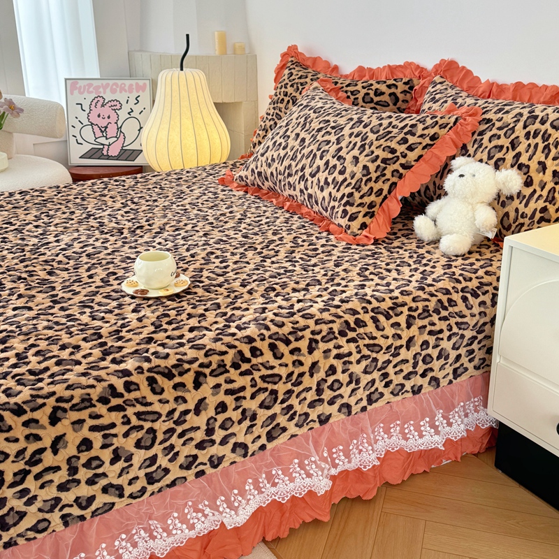 商品名称:添越 2024新款牛奶绒夹棉床盖三件套四件套 豹纹