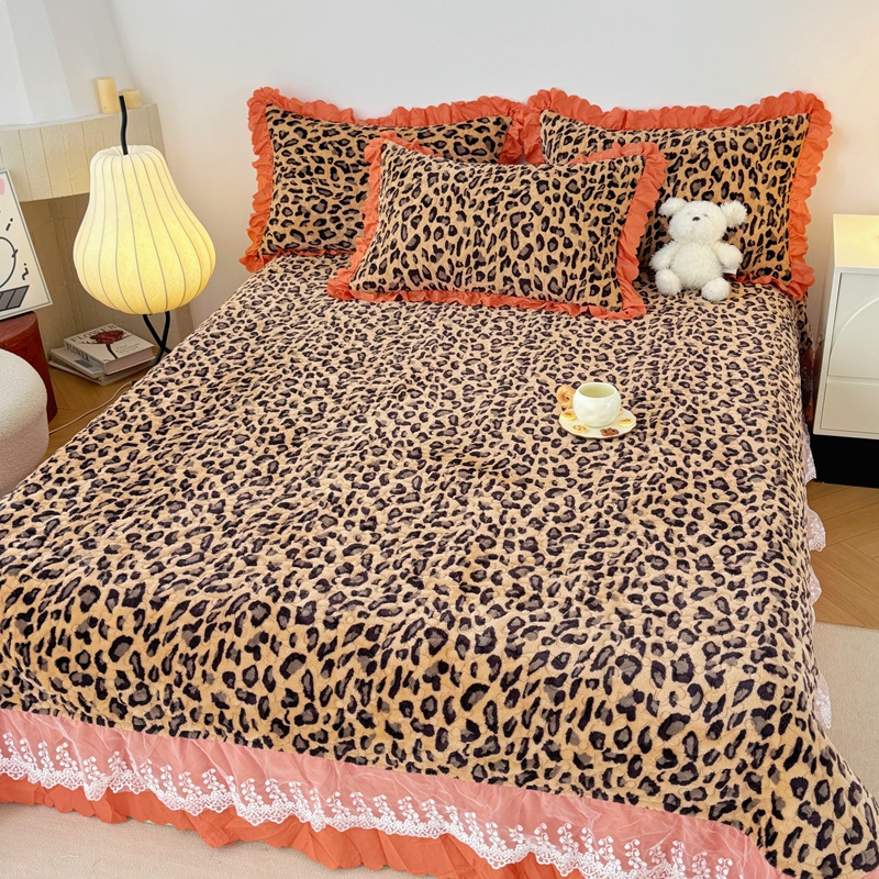 添越 2024新款牛奶绒夹棉床盖三件套四件套 豹纹