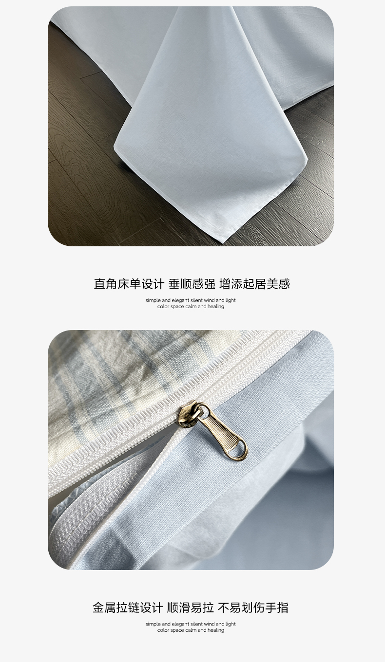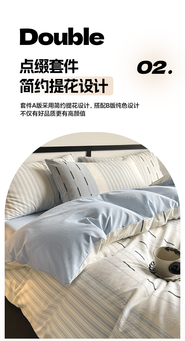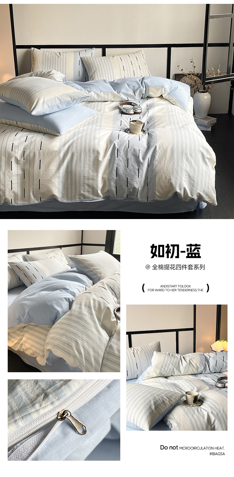 当前位置: 91家纺网 > 商品网购 > 床品套件 > 四件套 > 全棉普通四件套 > 雅居纺家纺 2024新款100%全棉简约提花四件套 如初-蓝