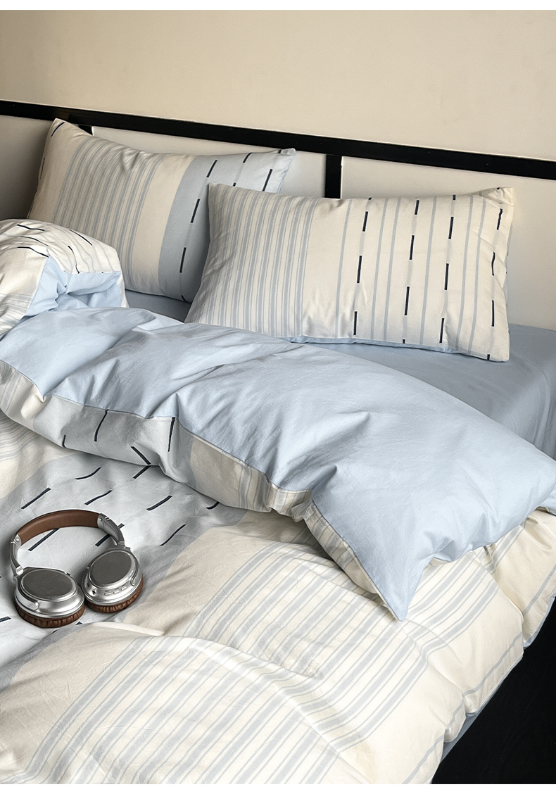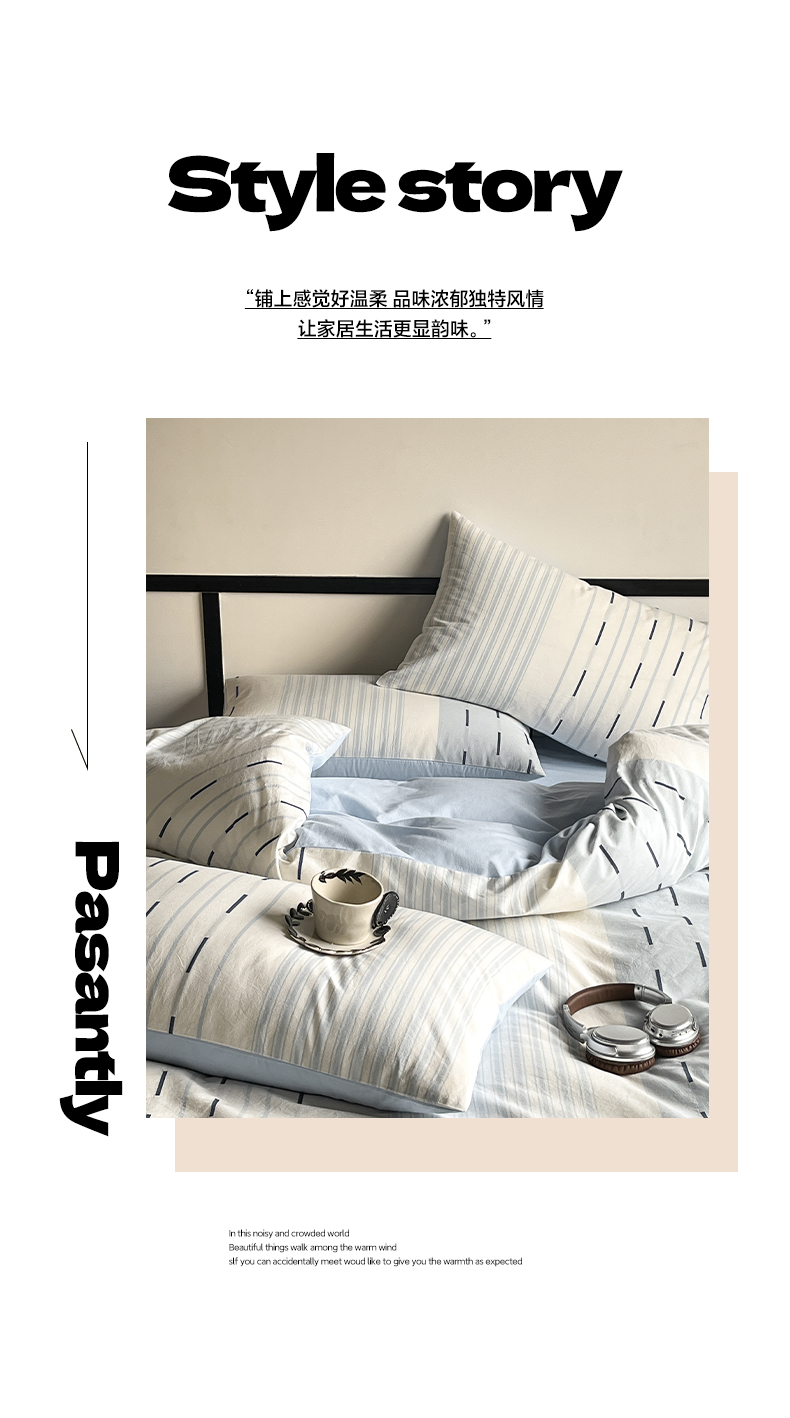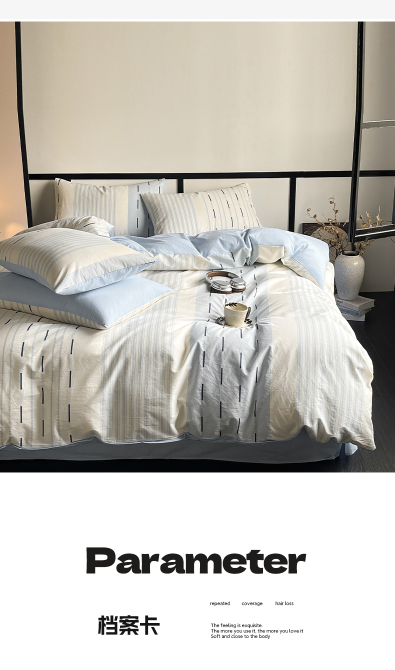 当前位置: 91家纺网 > 商品网购 > 床品套件 > 四件套 > 全棉普通四件套 > 雅居纺家纺 2024新款100%全棉简约提花四件套 如初-蓝