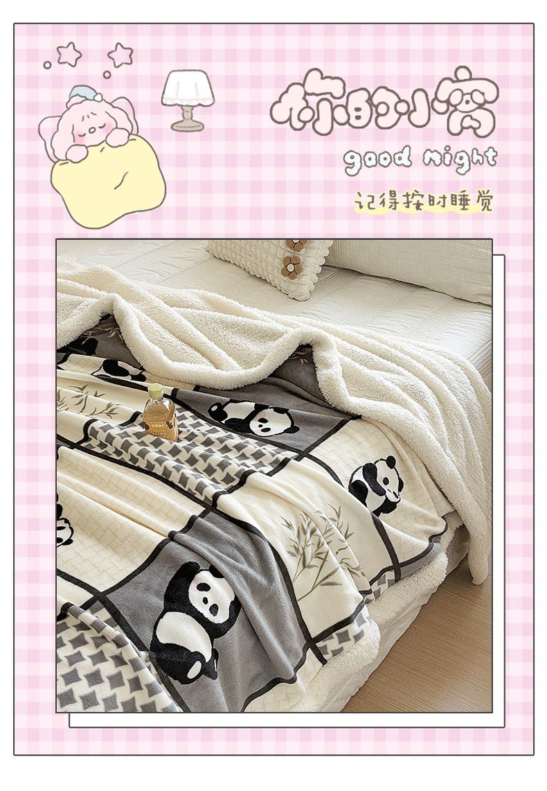 商品名称:悦织湾家纺 2025秋冬新款高克重加厚羊羔绒毛毯毯子跨境专供外贸出口电商直播热播款 熊猫皮皮