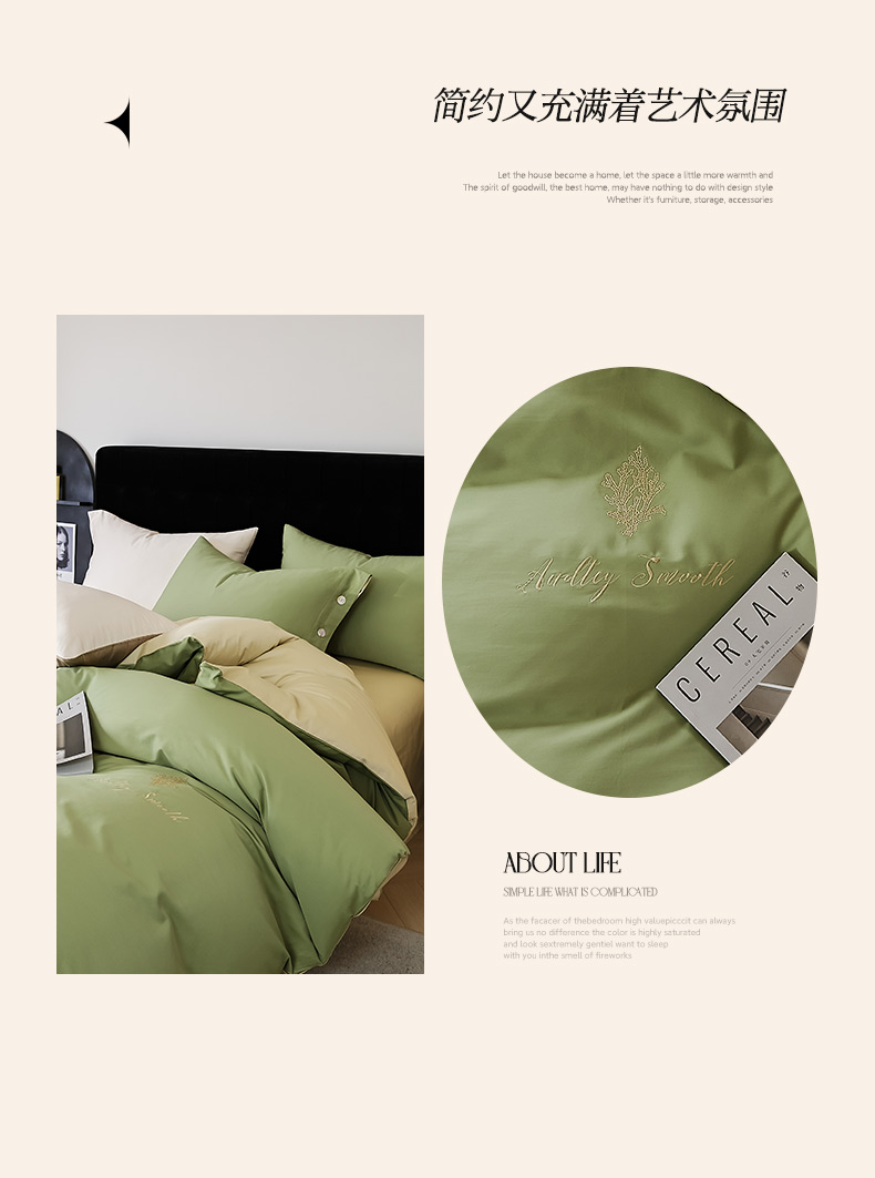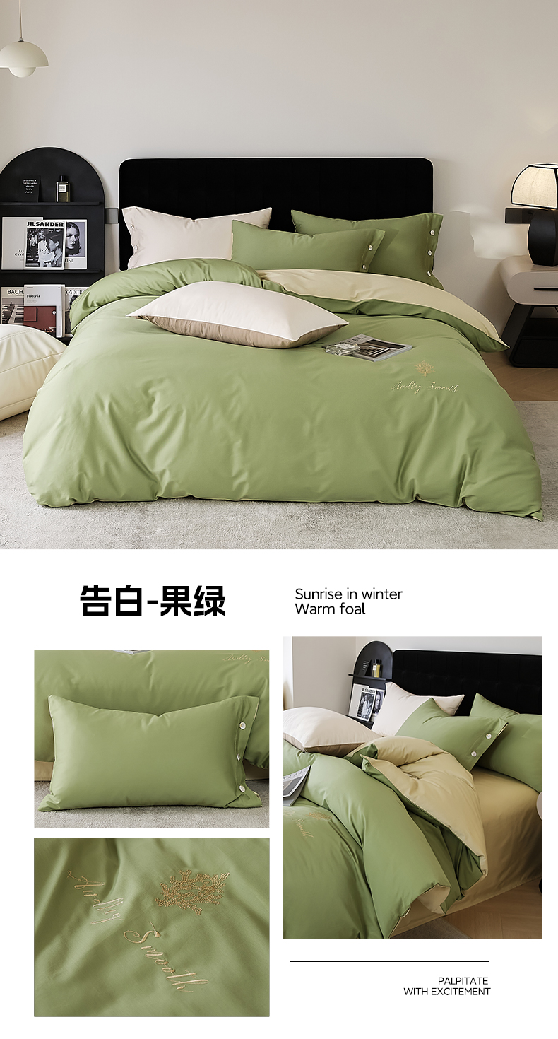 当前位置: 91家纺网 > 商品网购 > 床品套件 > 四件套 > 长绒棉四件套 > 2024新款60S长绒棉珊瑚绣花款四件套-告白系列(常规版) 告白-果绿