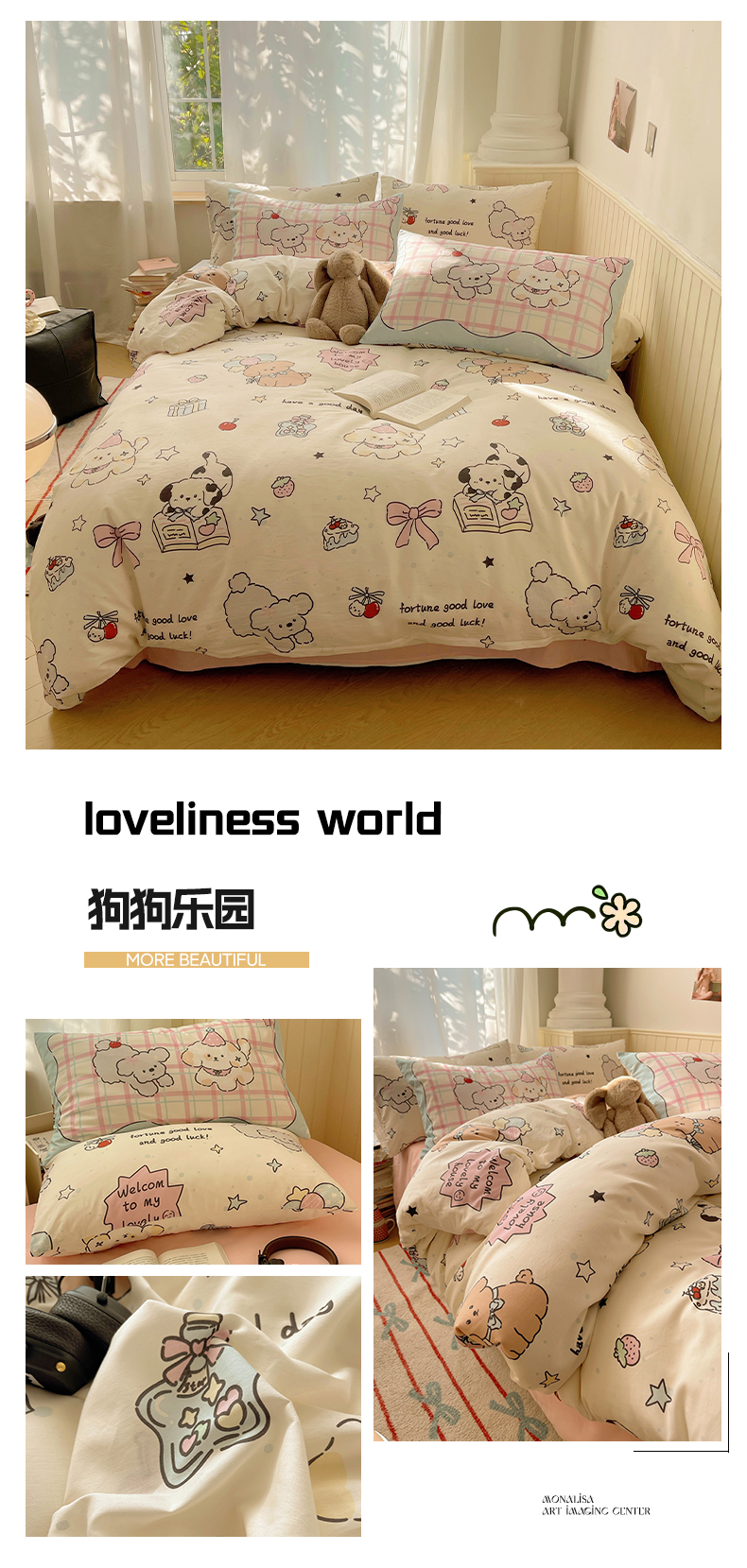 美乐迪家纺 2025新款全棉混搭系列四件套 狗狗乐园