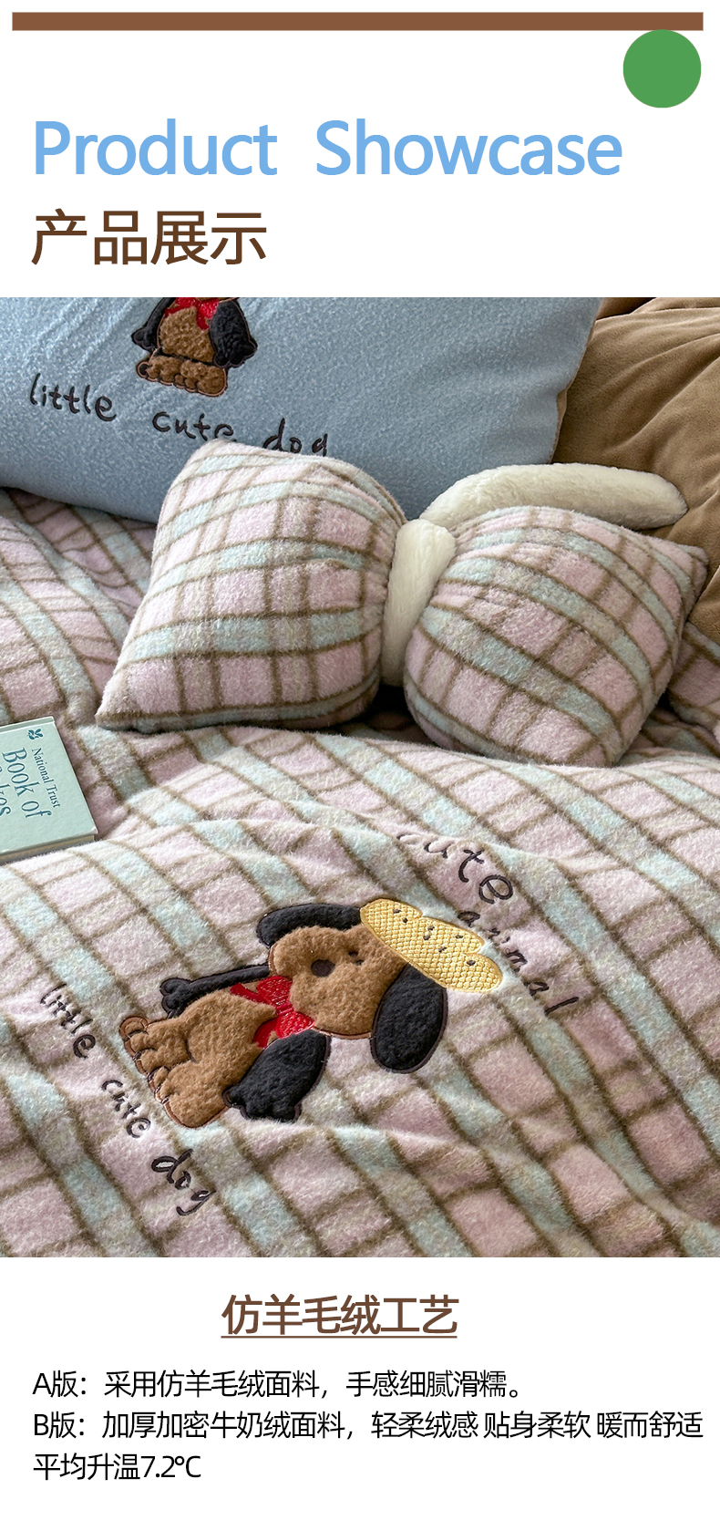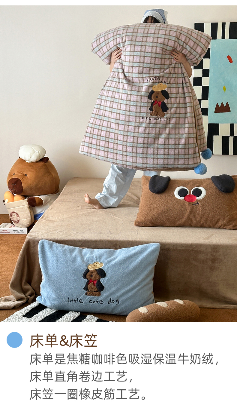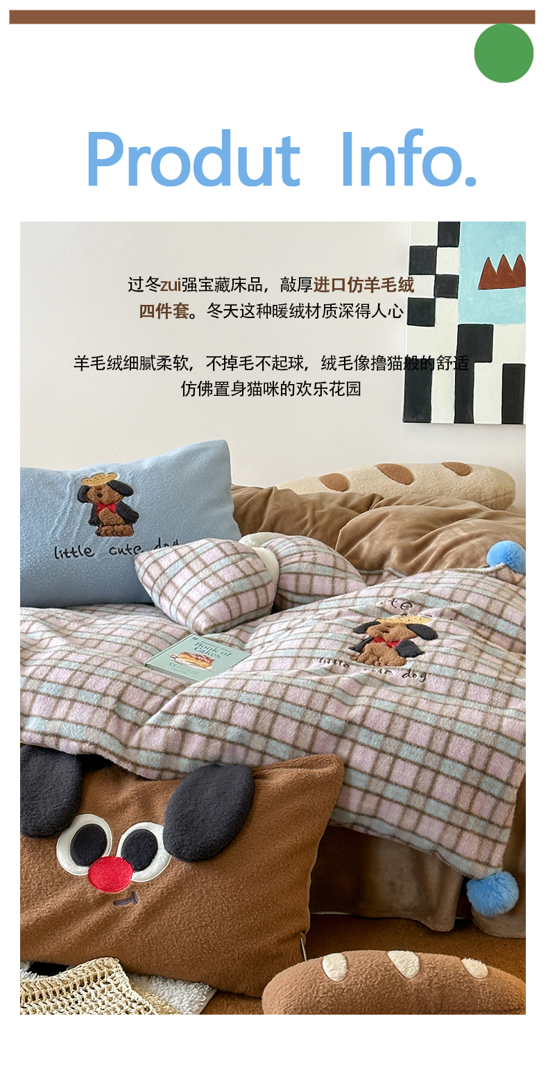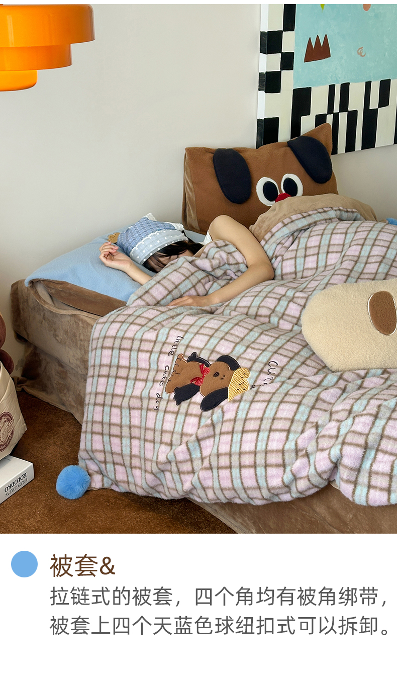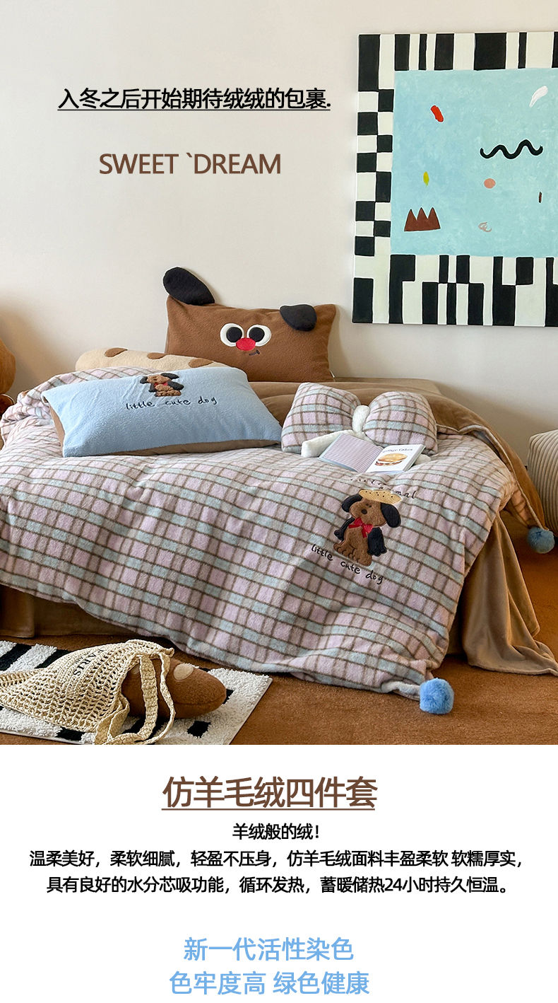 (总)桔子家纺 2025秋冬新款兔兔绒美式复古系列四件套,coco可可(四件套),查理(四件套),吉米(四件套)