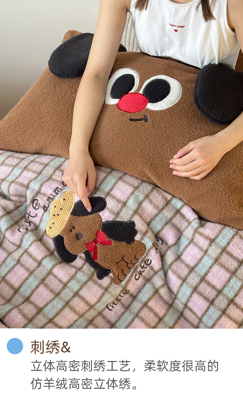 (总)桔子家纺 2025新款兔兔绒牛奶绒豹纹系列卡通绣花四件套,兔兔粉bao,兔兔黑bao,兔兔棕bao