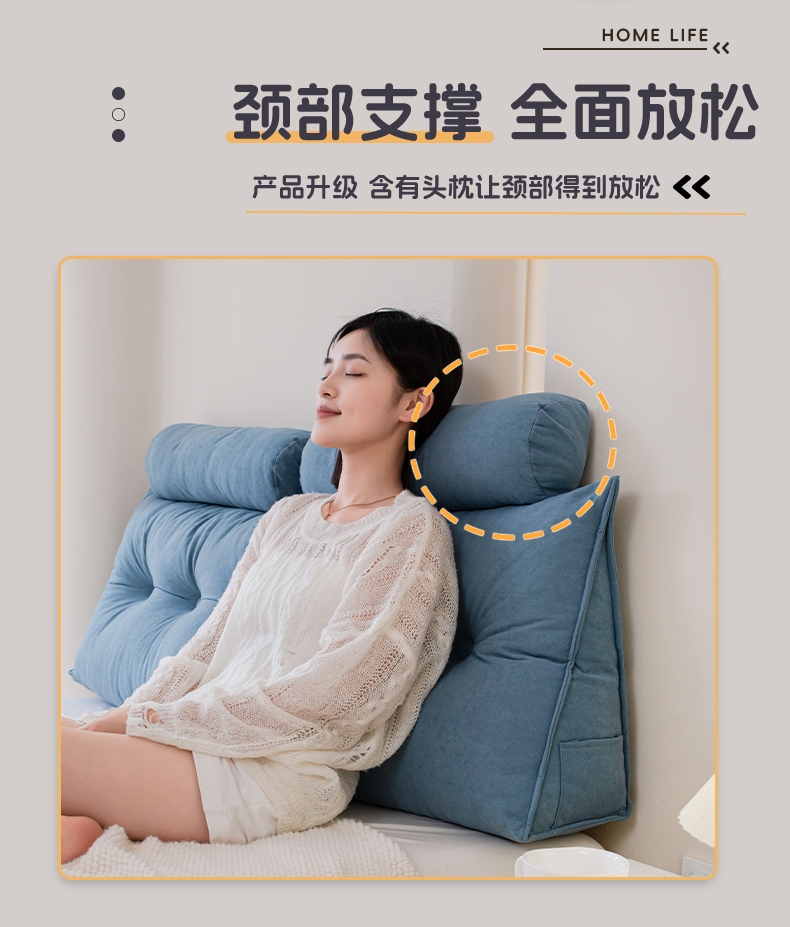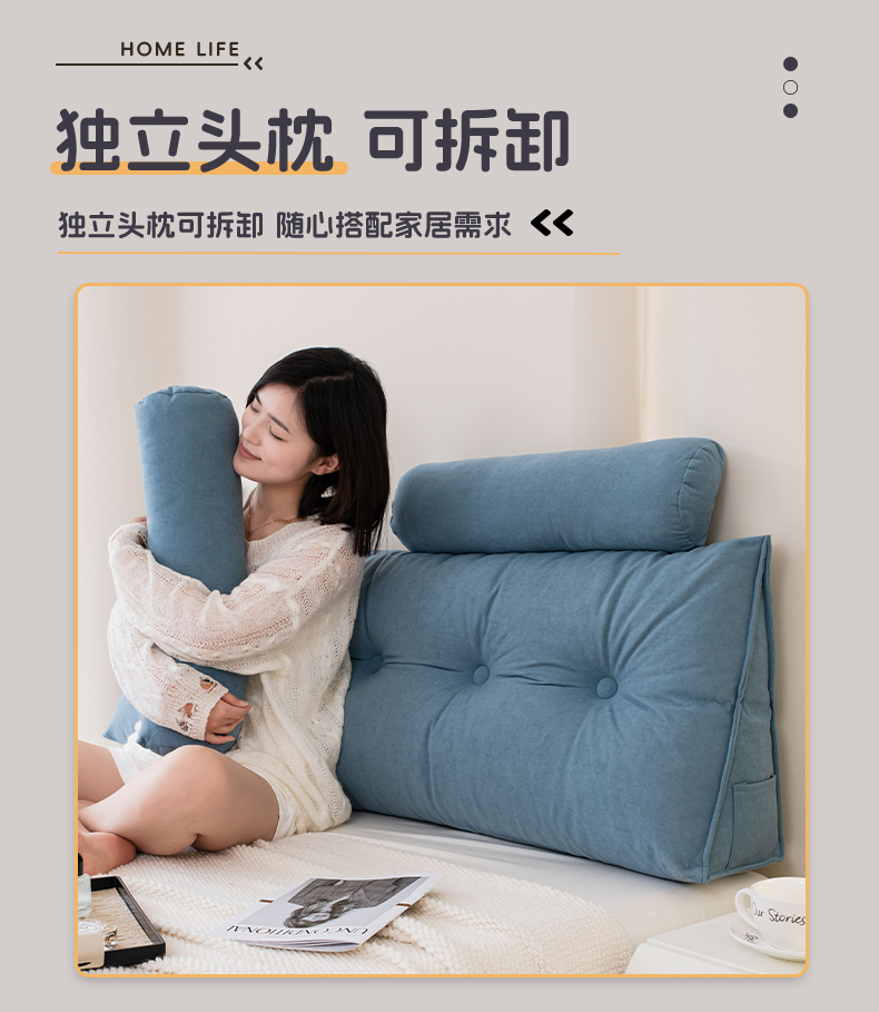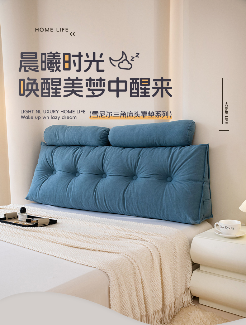 (总)碧尔家居 2025新款时尚床头靠枕护腰大靠背榻榻米三角靠垫飘窗看书加厚软包防撞免洗,卡其灰,蓝色,米白,深灰,天蓝