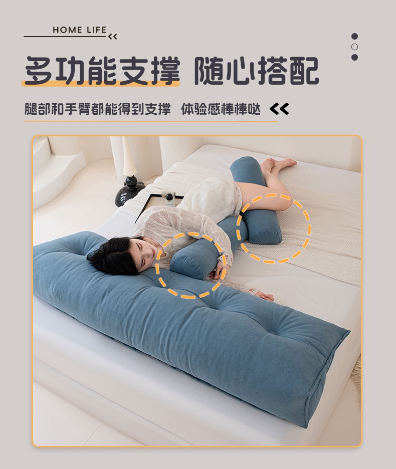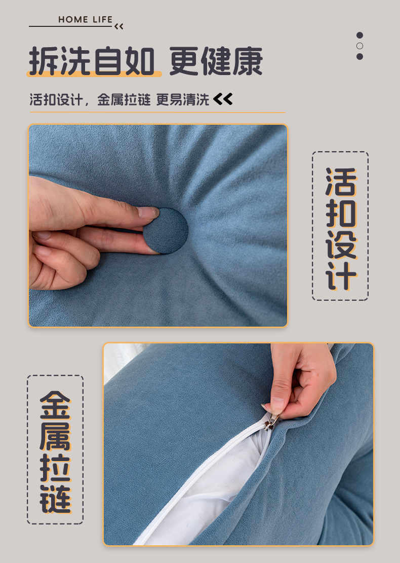 (总)碧尔家居 2025新款简约猫长条机械钉扣水洗棉床头靠枕,米黄,浅蓝,银灰