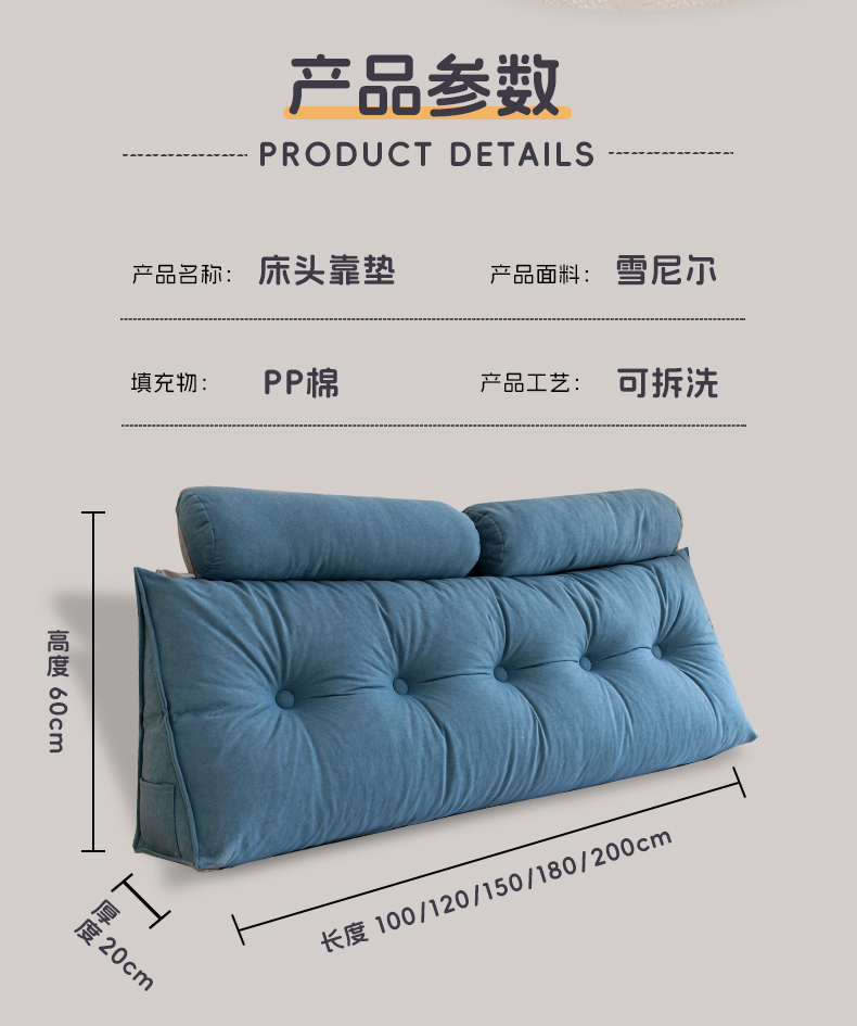 商品名称:碧尔家居 2025新款轻奢风床头靠枕榻榻米三角大靠垫软包加厚防撞护腰沙发靠背可拆洗蓝色