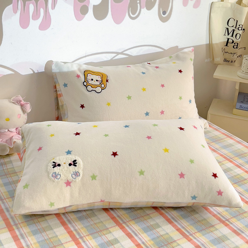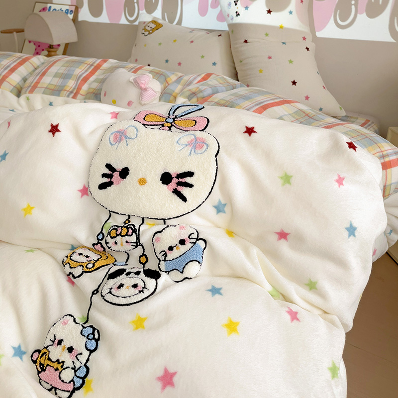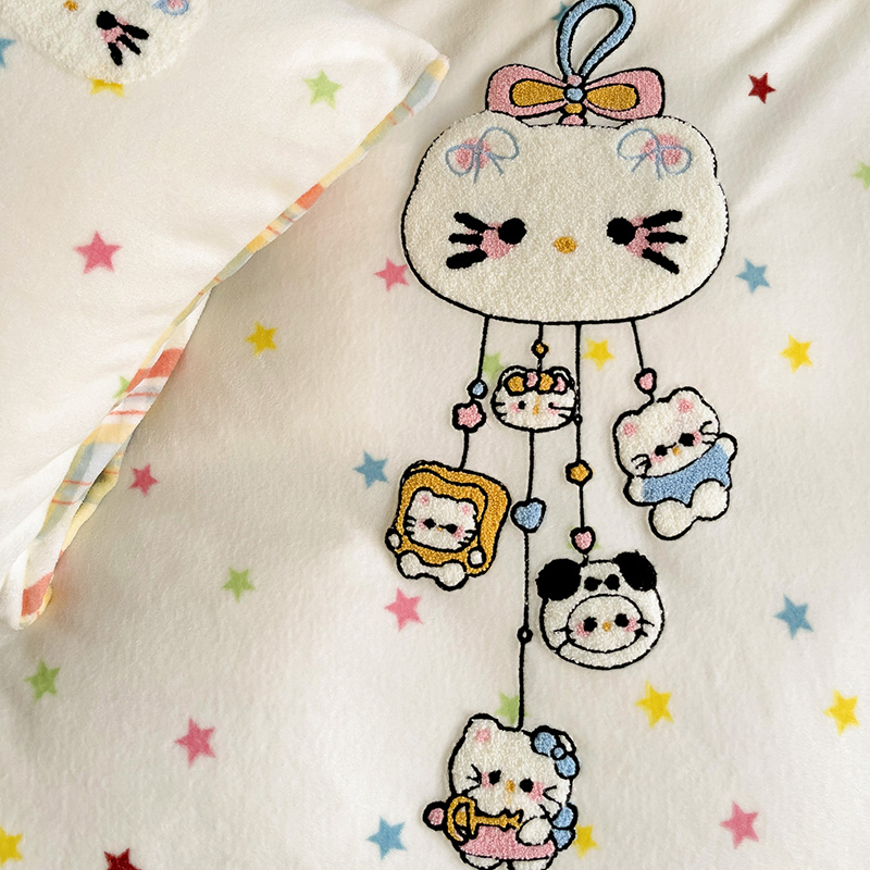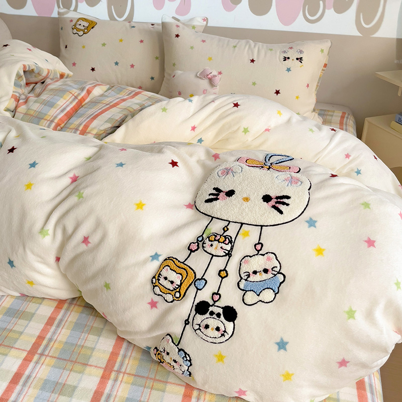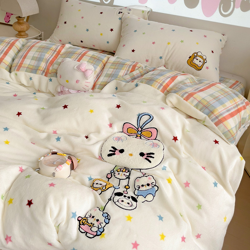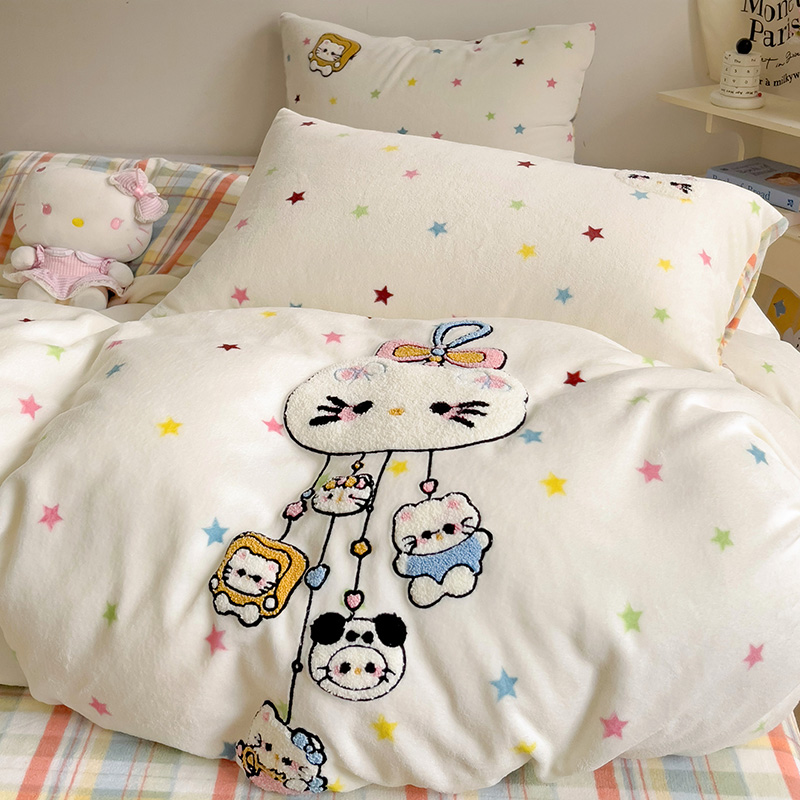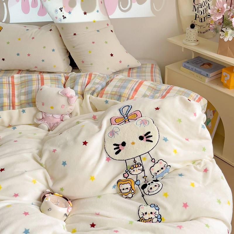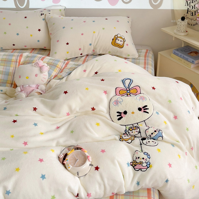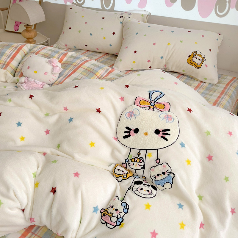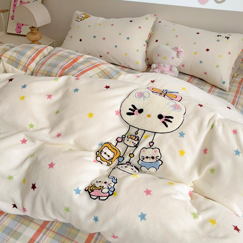 乐童家纺 2024新款高克重牛奶绒小清新印+绣系列四件套 星星风铃