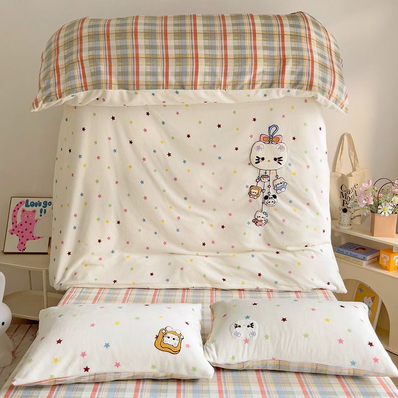 商品名称:乐童家纺 2024新款高克重牛奶绒小清新印+绣系列四件套 星星风铃