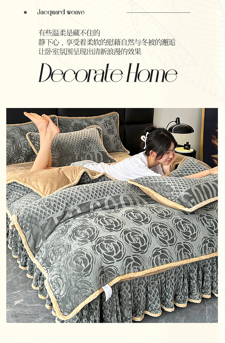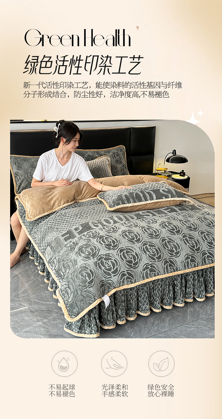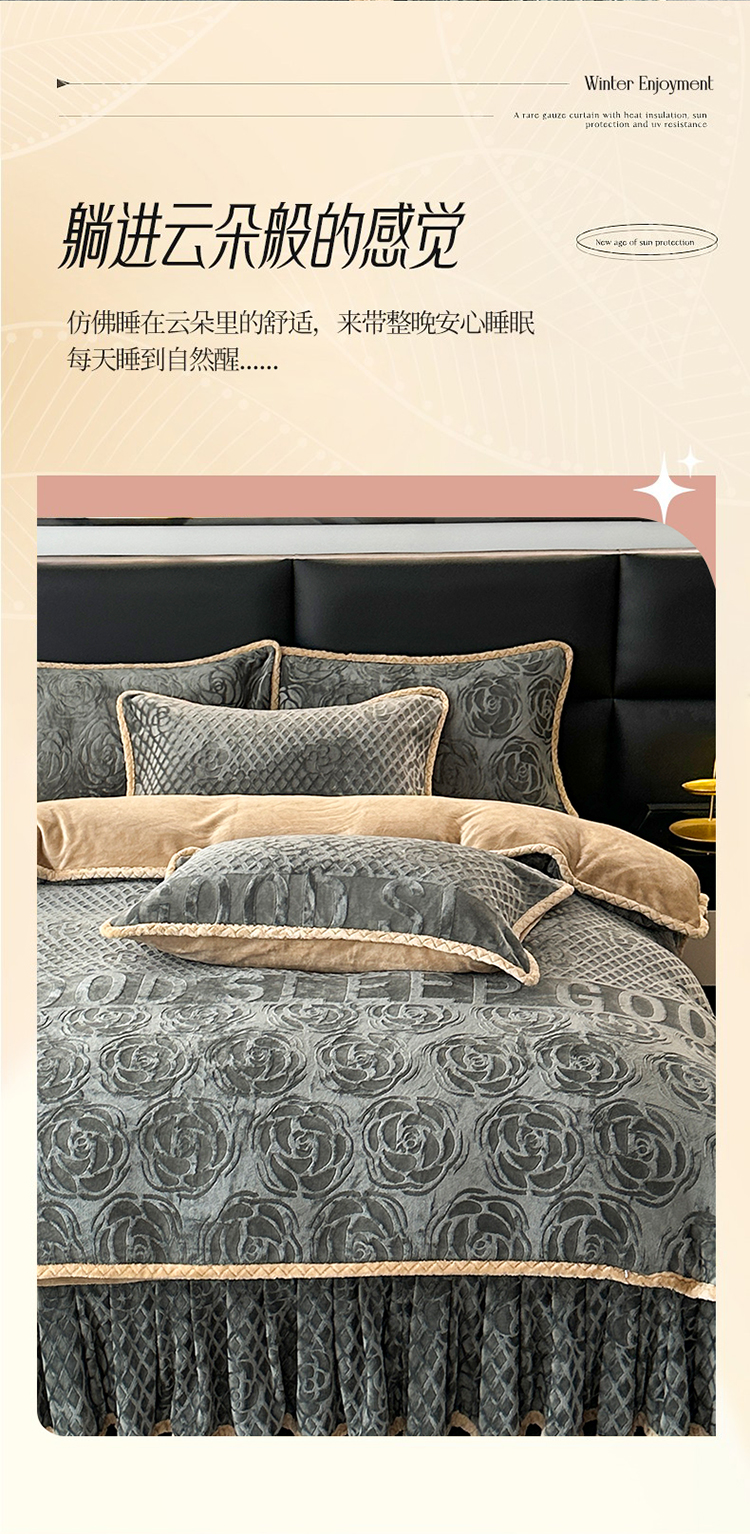 (总)小叮当家纺仓储工厂店 2025新款水晶绒夹棉床裙四件套,宝石兰,藏青,豆沙,粉玉,灰,酒红,墨绿,月光蓝