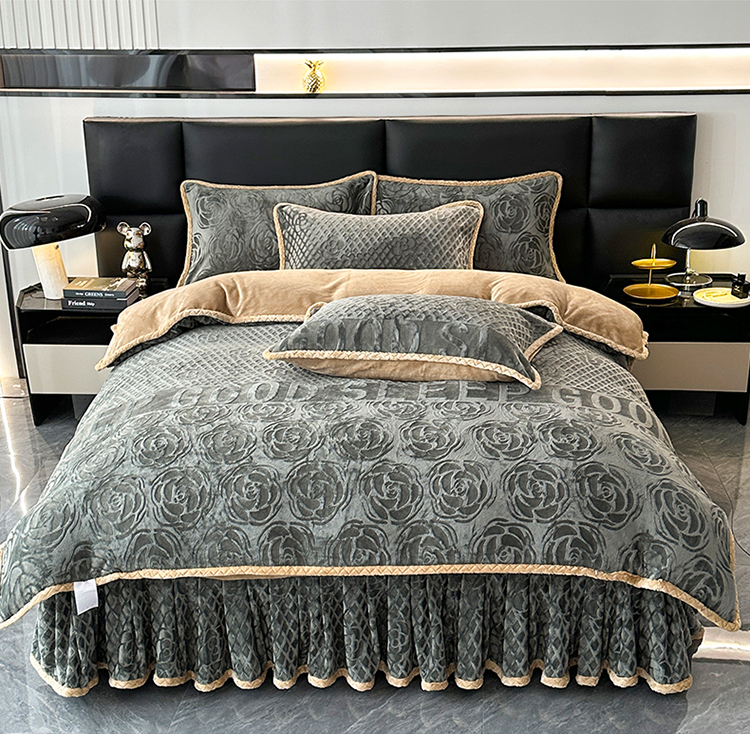 商品名称:(买家秀爆款不断货)A类母婴级8D牛奶雕花绒四件套珊瑚绒四件套雪花绒四件套花卉雕花牛奶绒四件套北欧风 挚爱-经典灰
