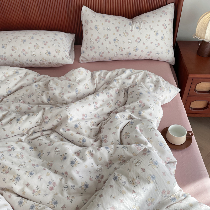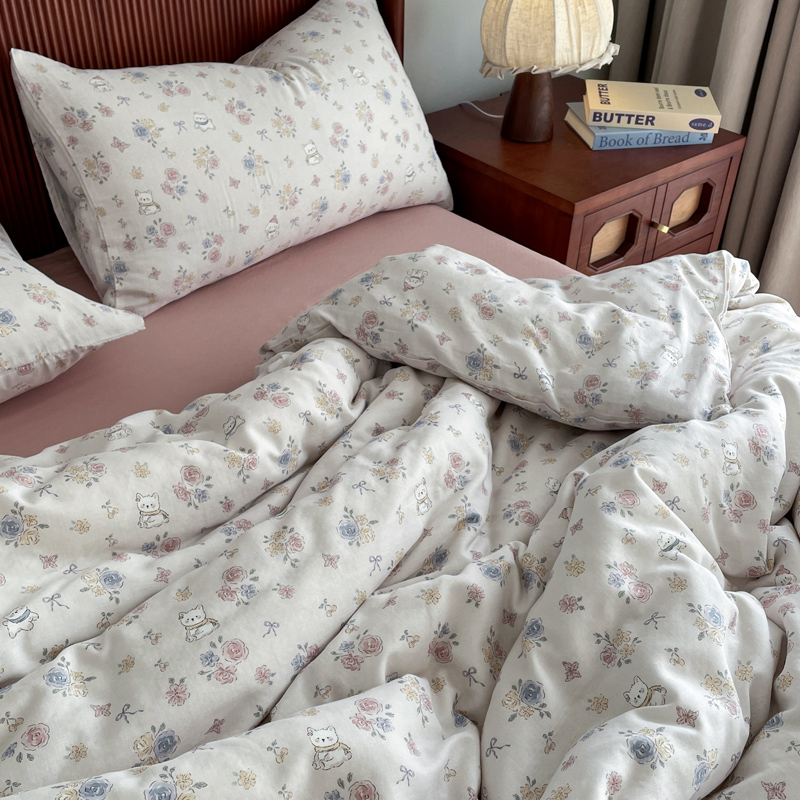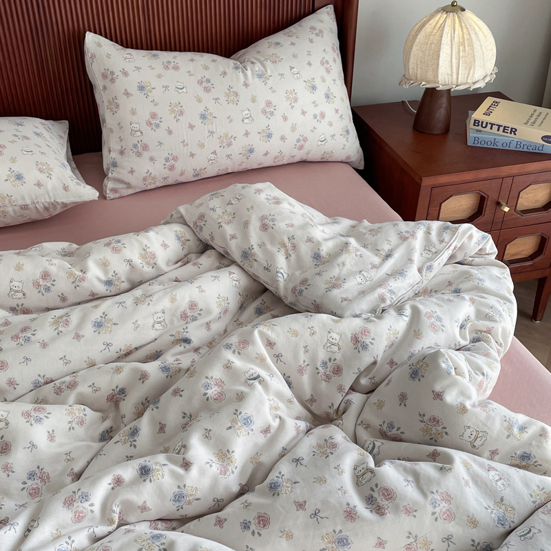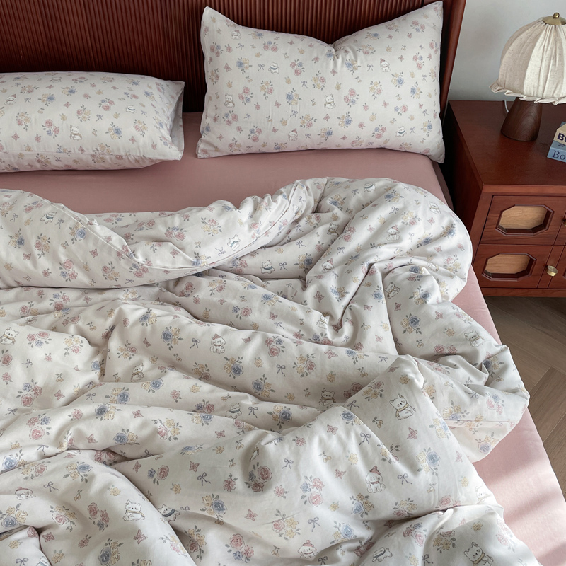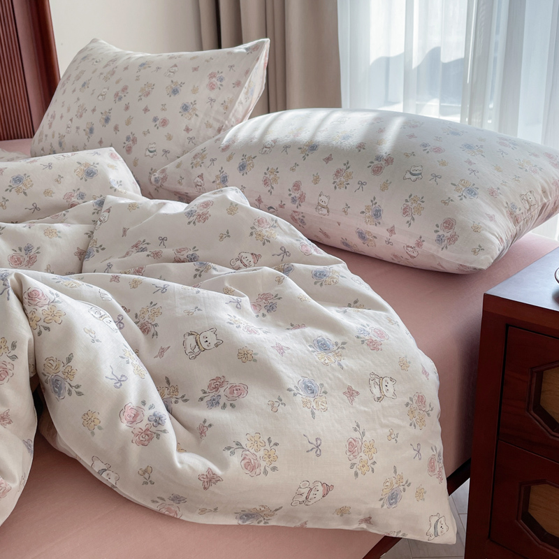 商品名称:一比一家纺 2025新款全棉母婴级抗菌有氧全棉双层纱亲肤全棉小清新印花三件套四件套 萌宠乐园