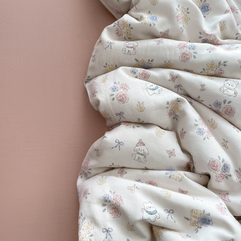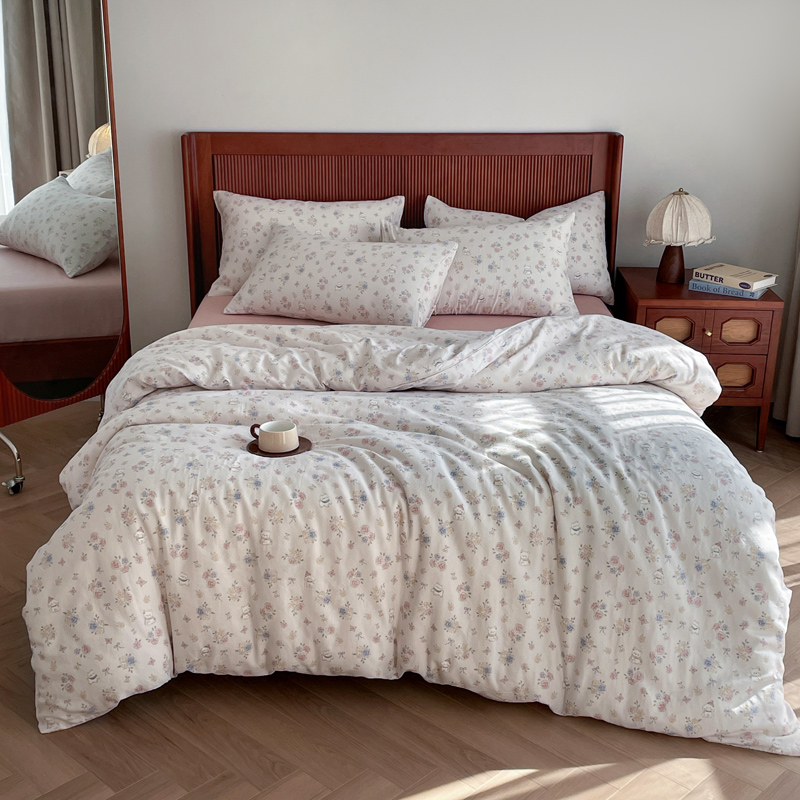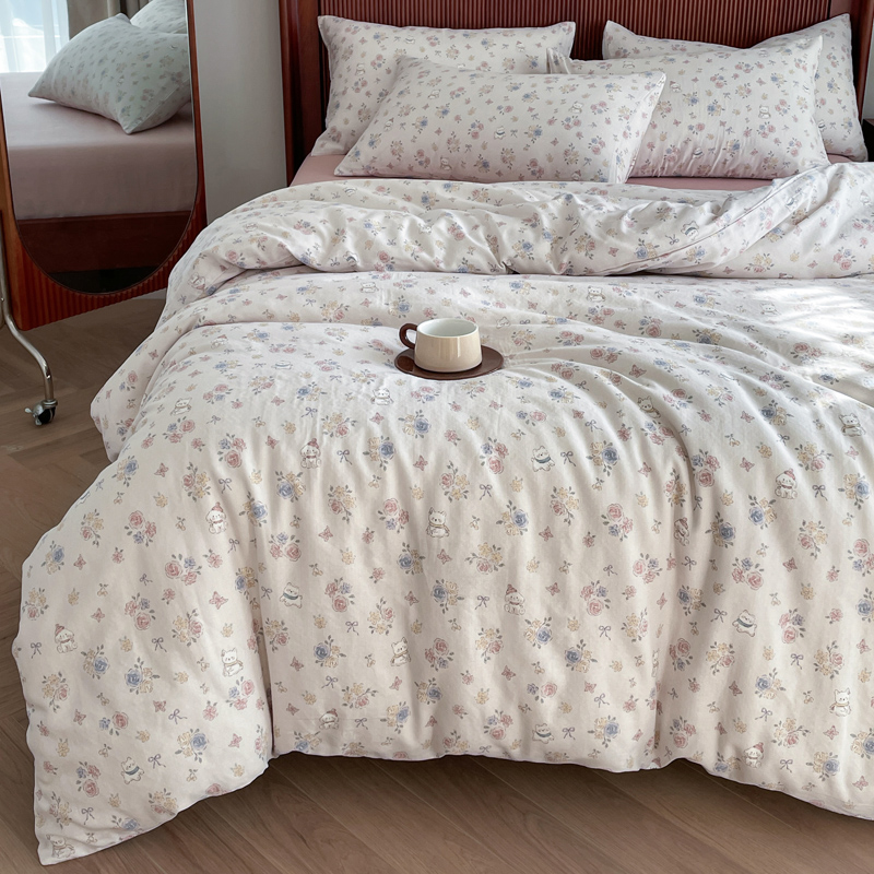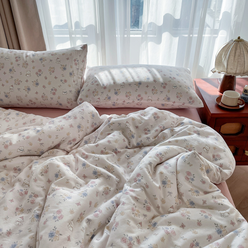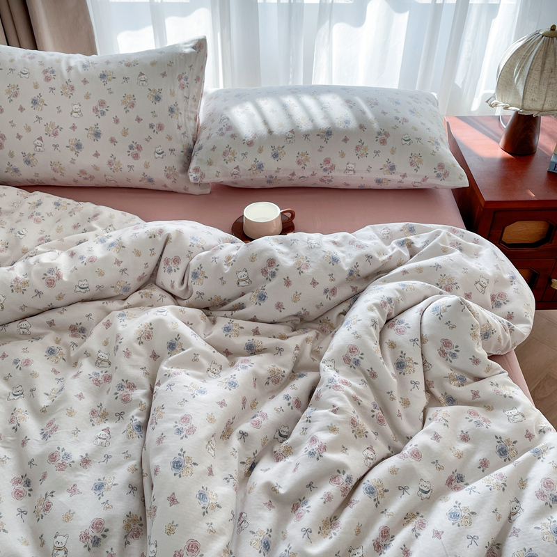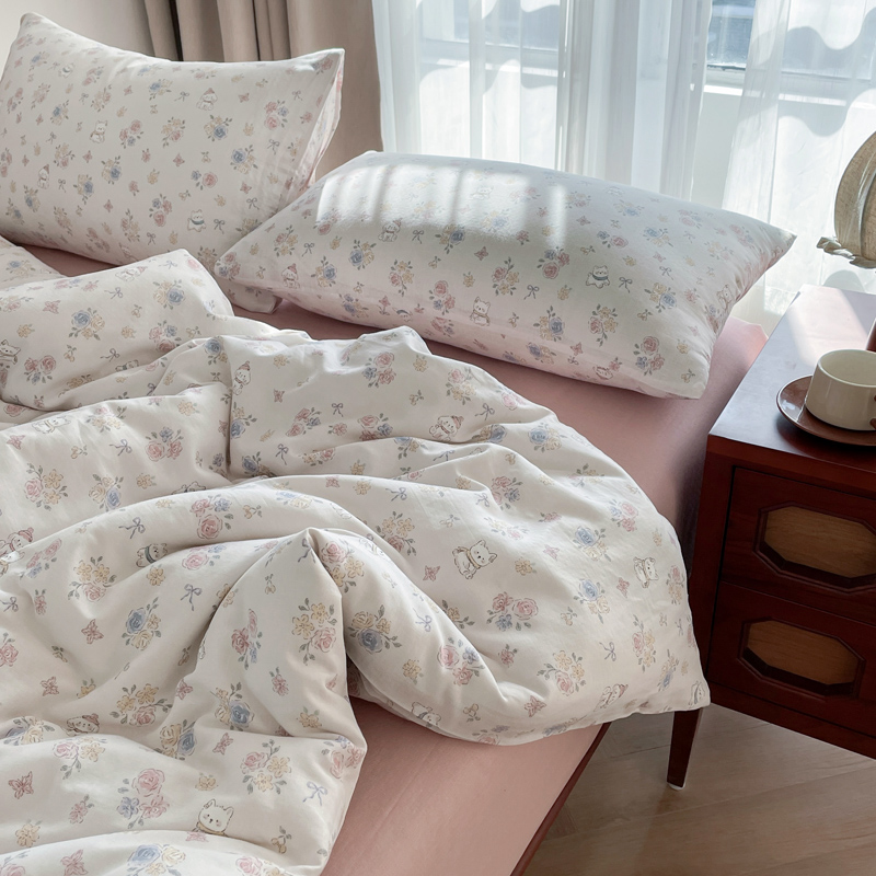 商品名称:一比一家纺 2025新款全棉母婴级抗菌有氧全棉双层纱亲肤全棉小清新印花三件套四件套 萌宠乐园