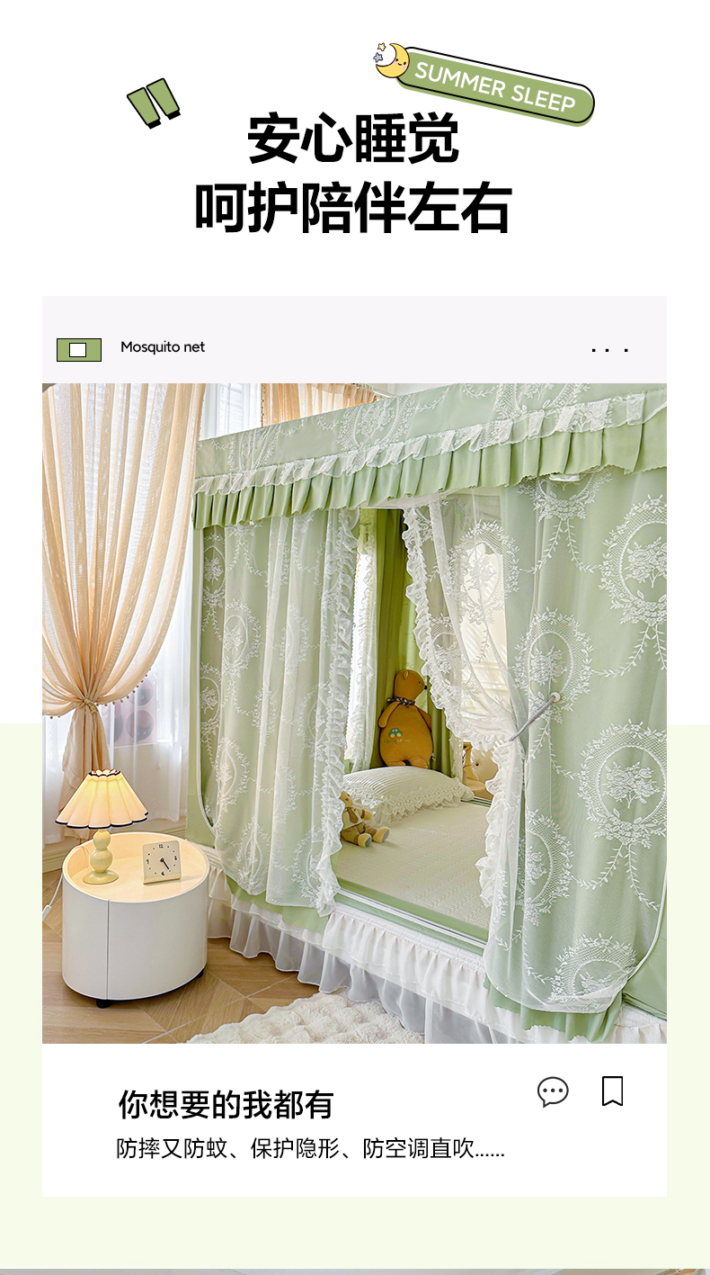 当前位置: 91家纺网 > 商品网购 > 床上用品 > 蚊帐 > 坐床式蚊帐 > 都市缘蚊帐 2025新款遮光坐床布帘蚊帐拉链方帐婴儿防摔蚊帐-501 青提绿