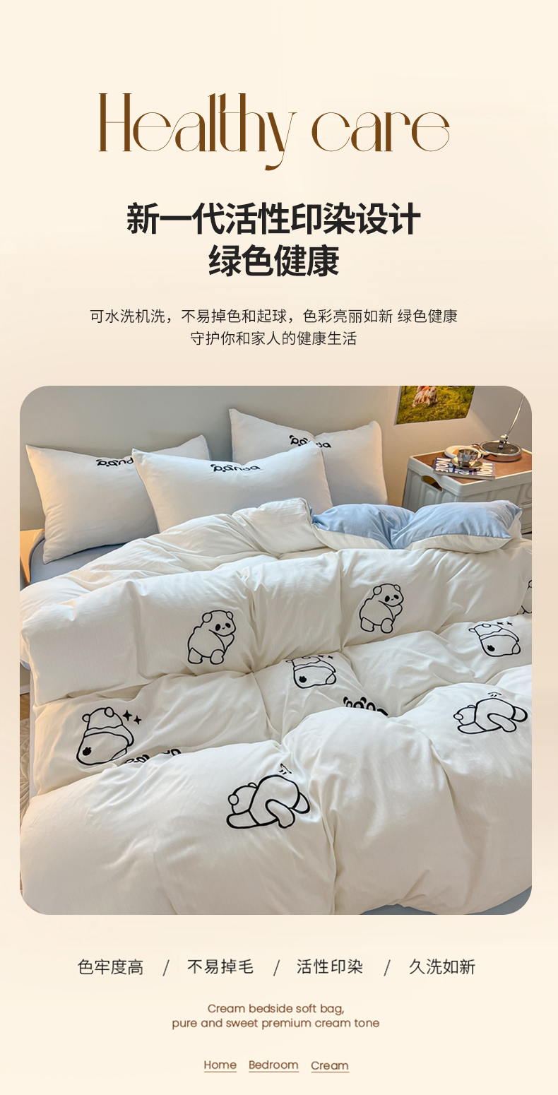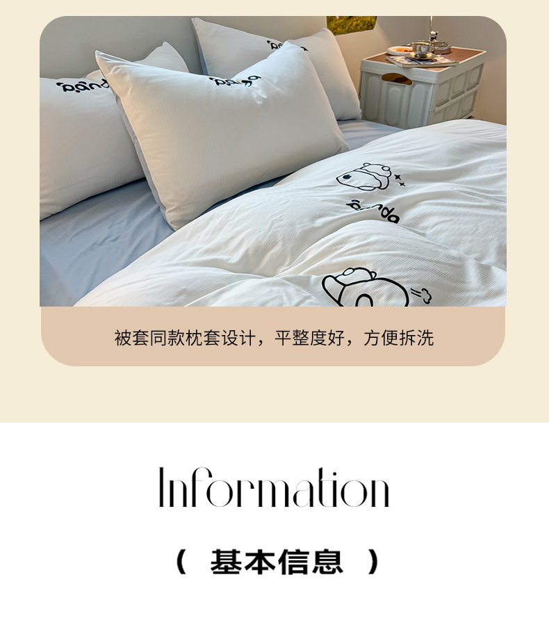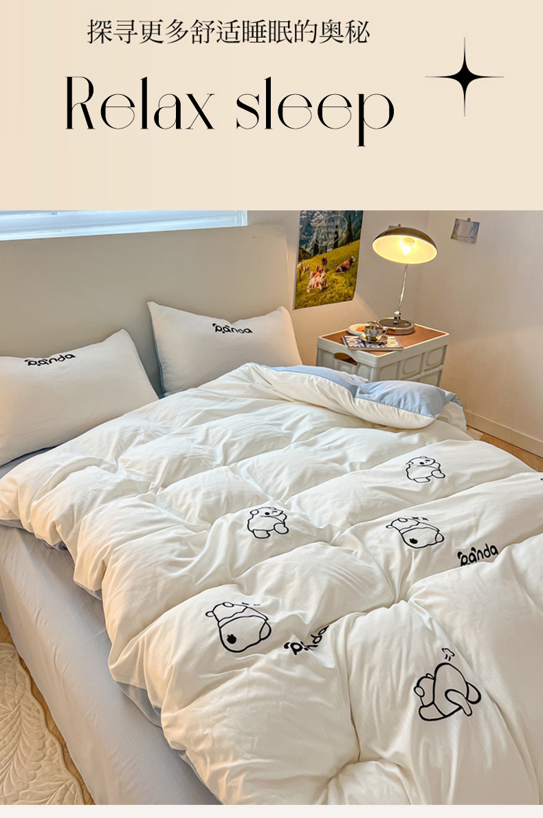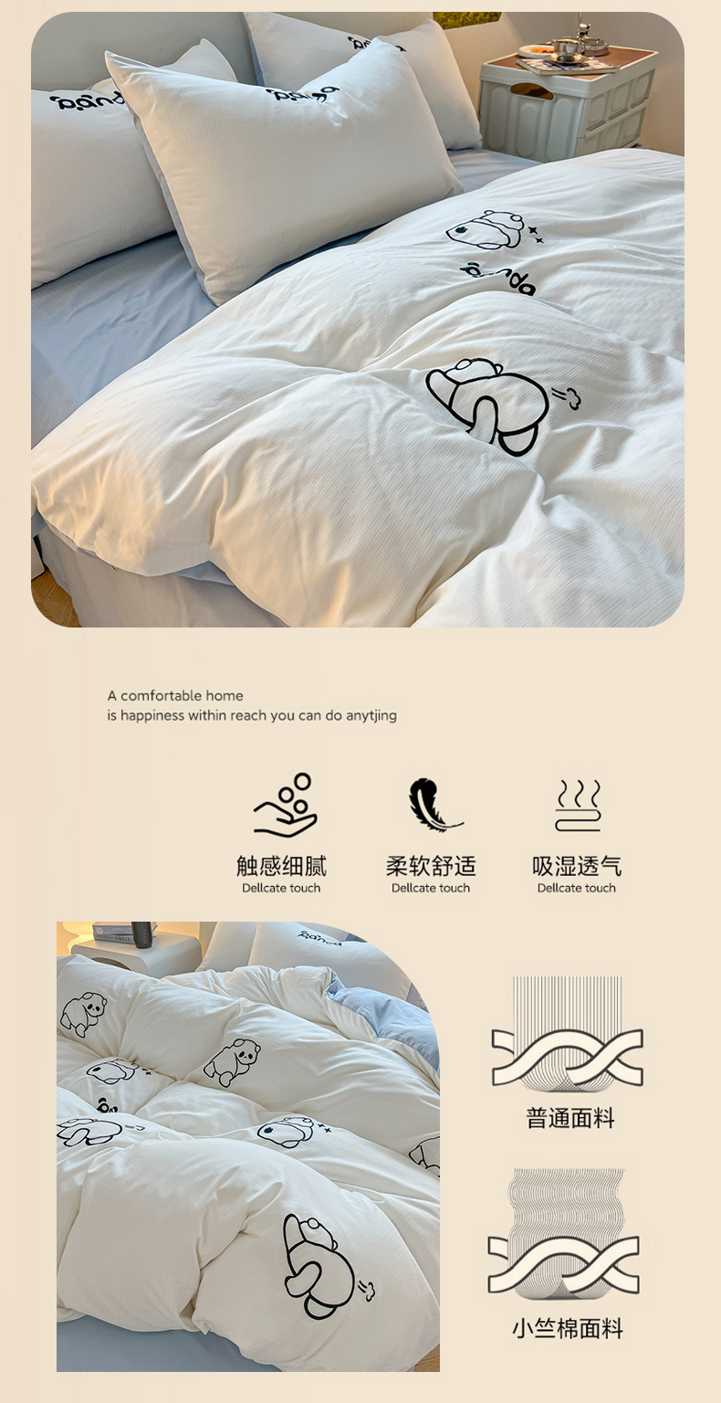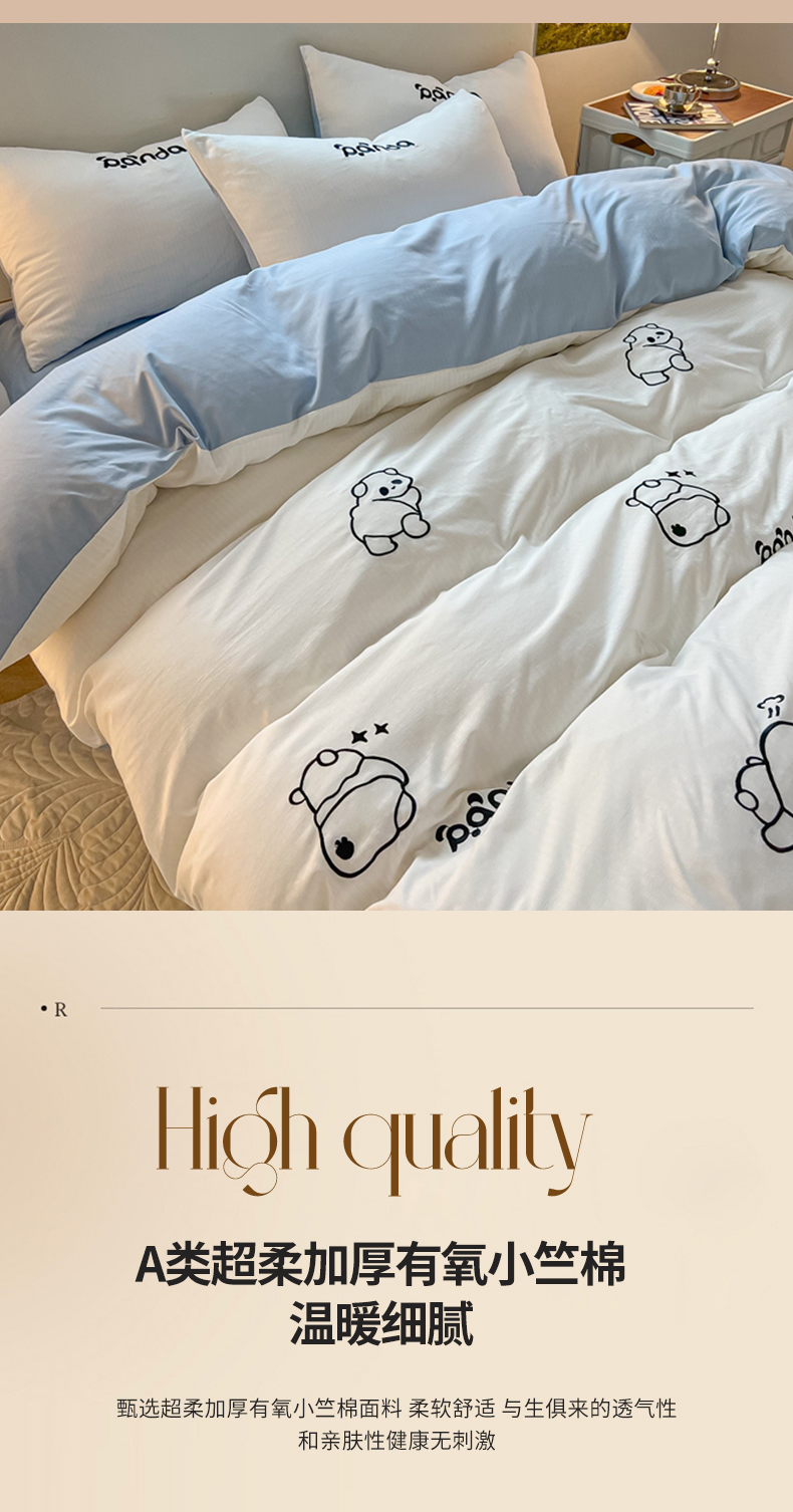 当前位置: 91家纺网 > 商品网购 > 床品套件 > 四件套 > 小竺棉四件套 > 多乐家纺 2025新款超柔加厚有氧提花针织小竺棉绣花四件套(提供买家秀) Panda-奶白蓝
