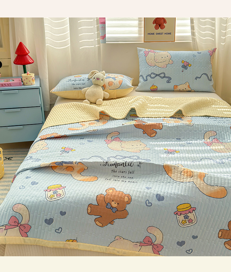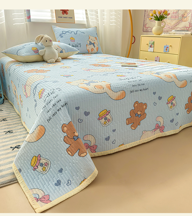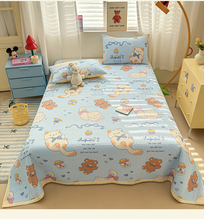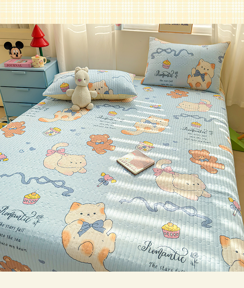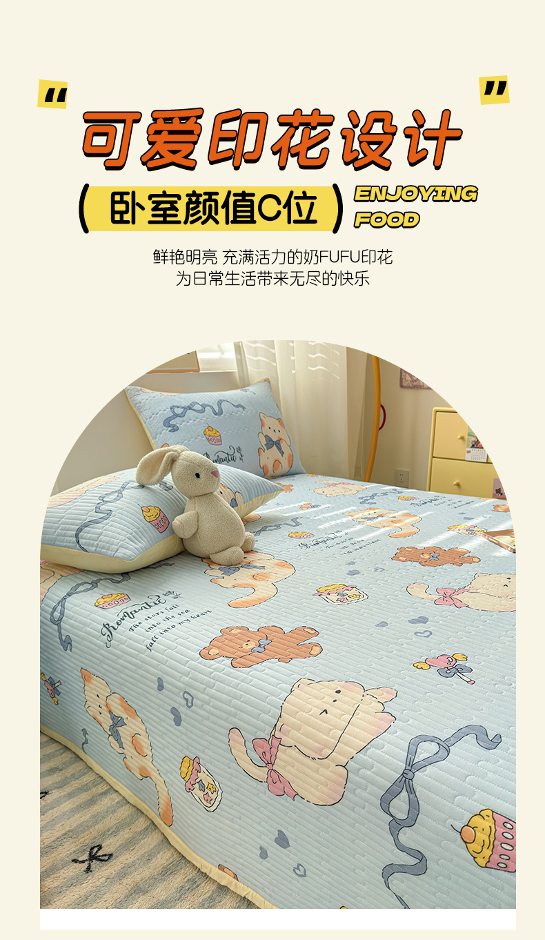 商品名称:罗亿家纺 2025新款水洗棉双层纱夹棉绗缝床盖(提供买家秀) 小猫逃离记