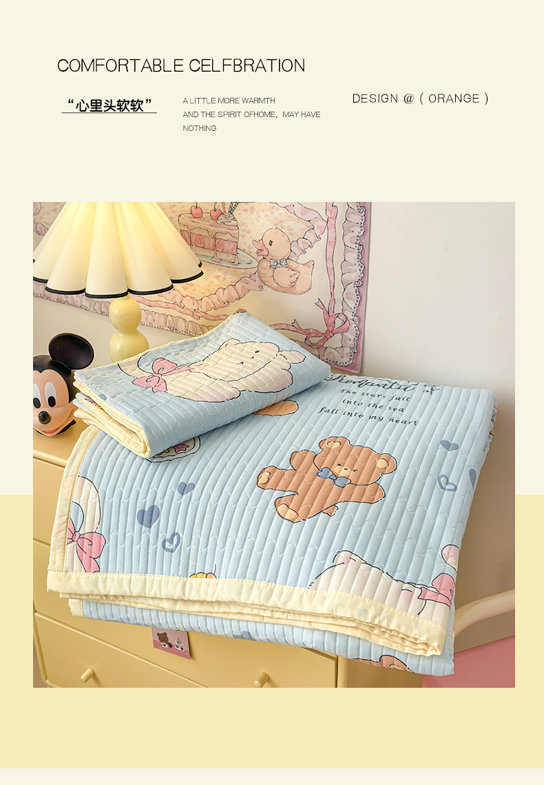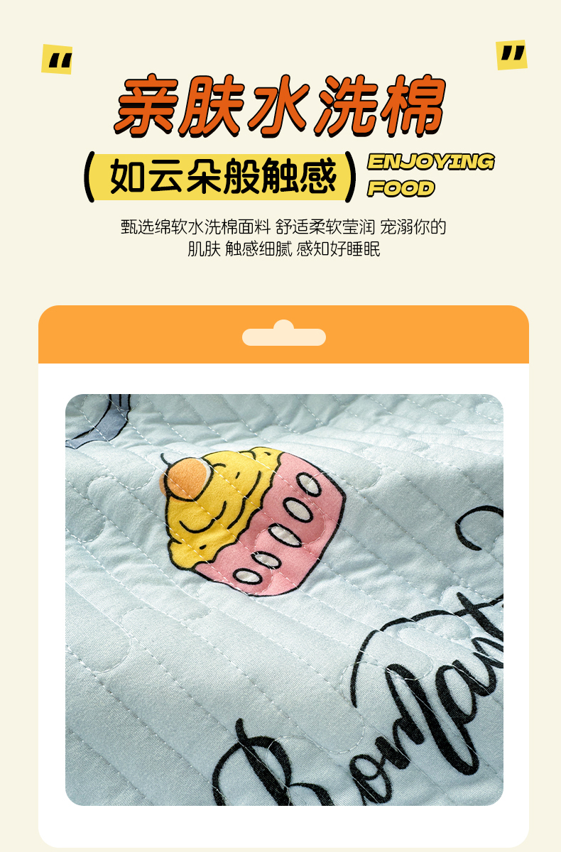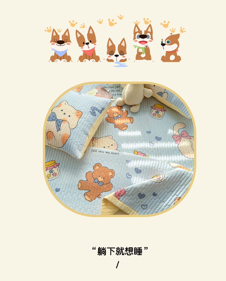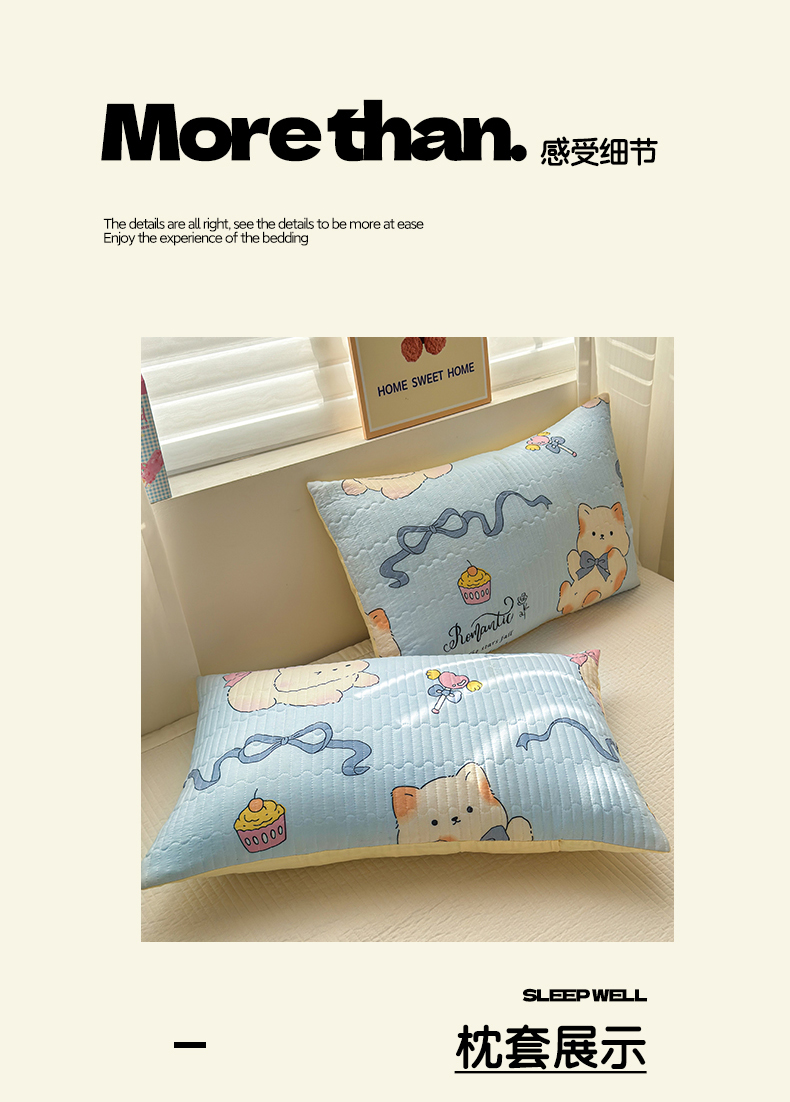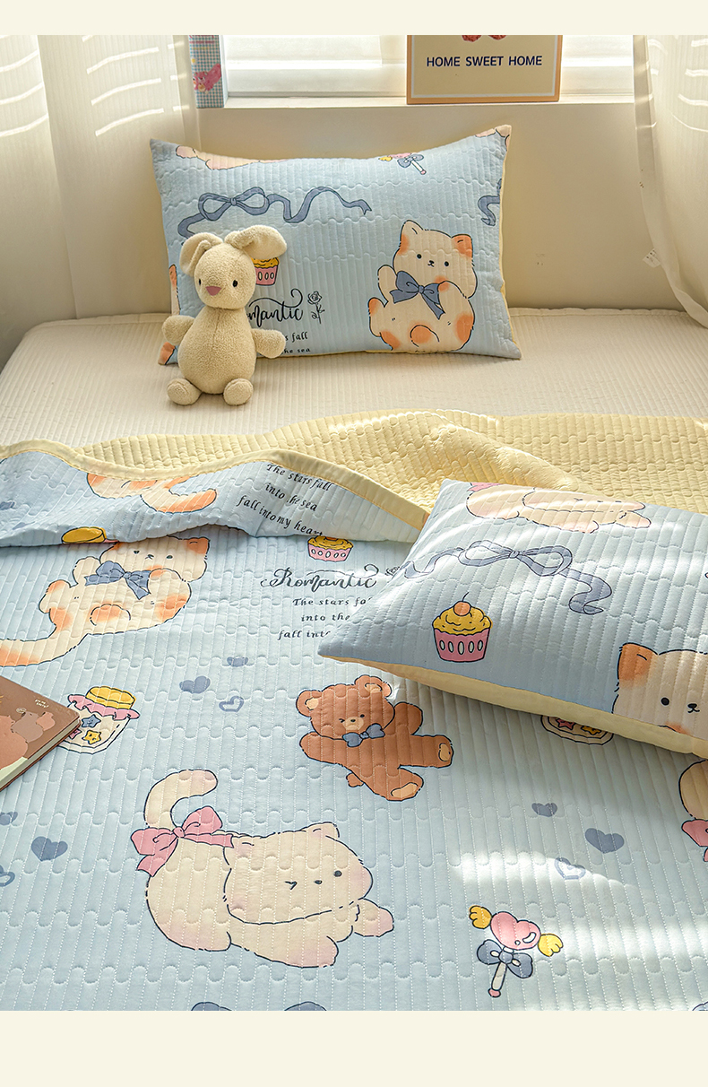 商品名称:罗亿家纺 2025新款水洗棉双层纱夹棉绗缝床盖(提供买家秀) 小猫逃离记