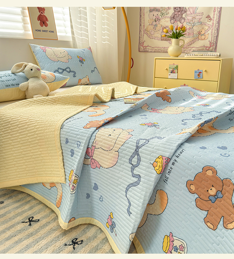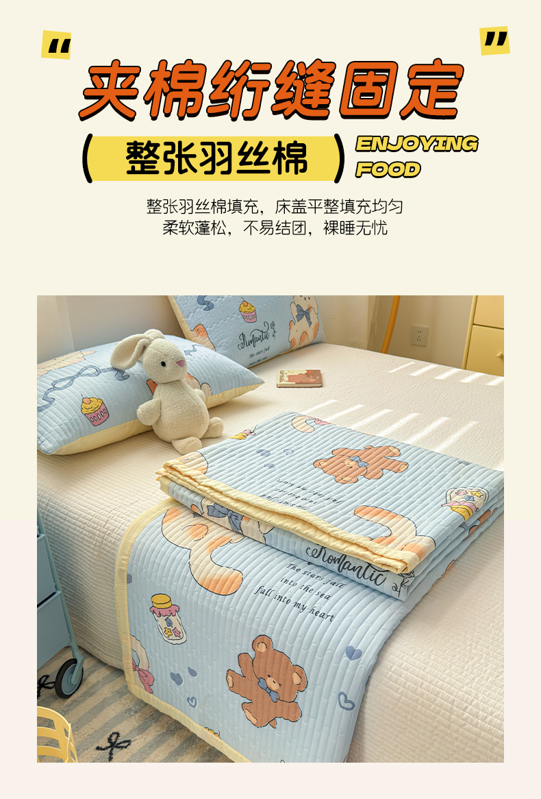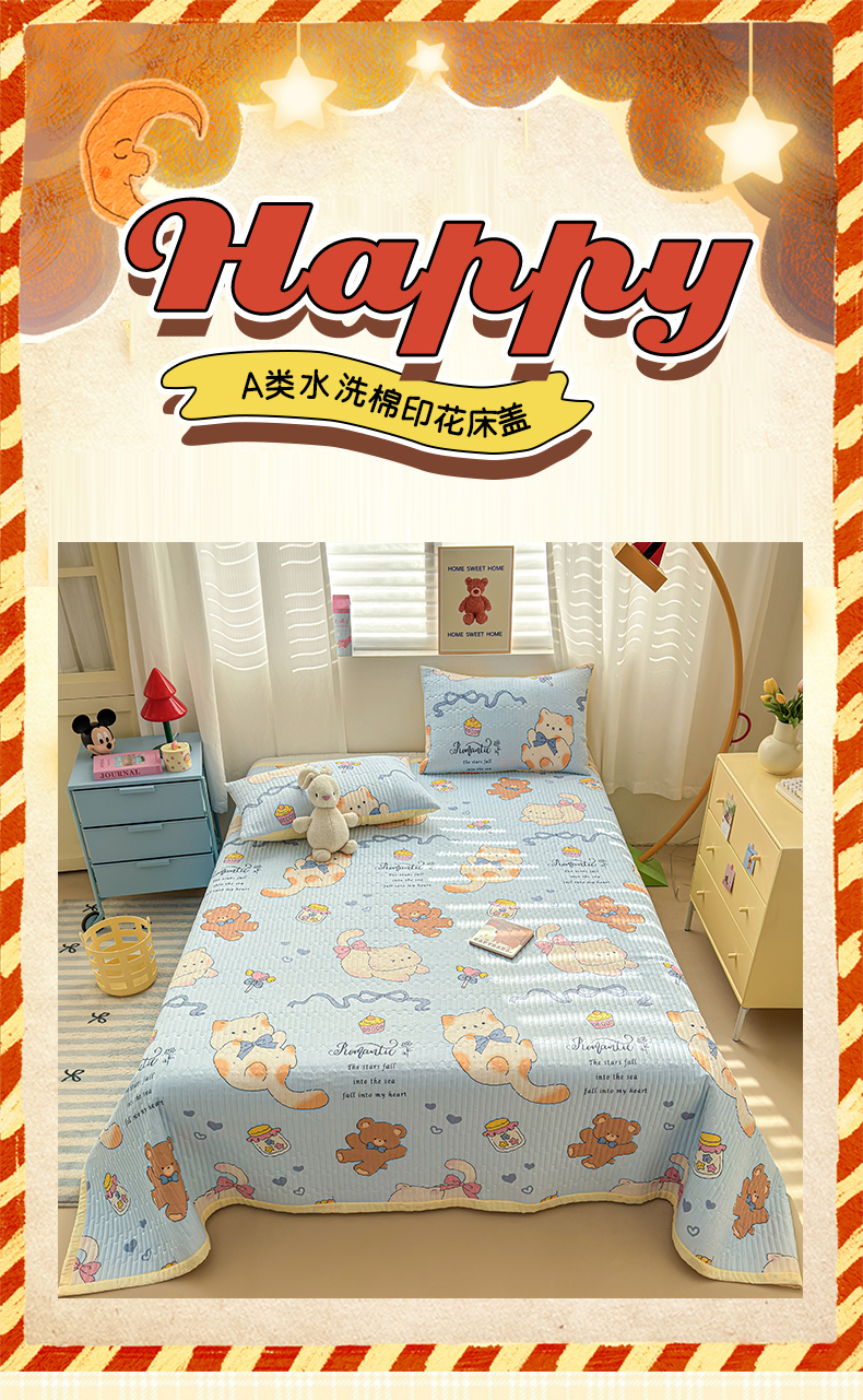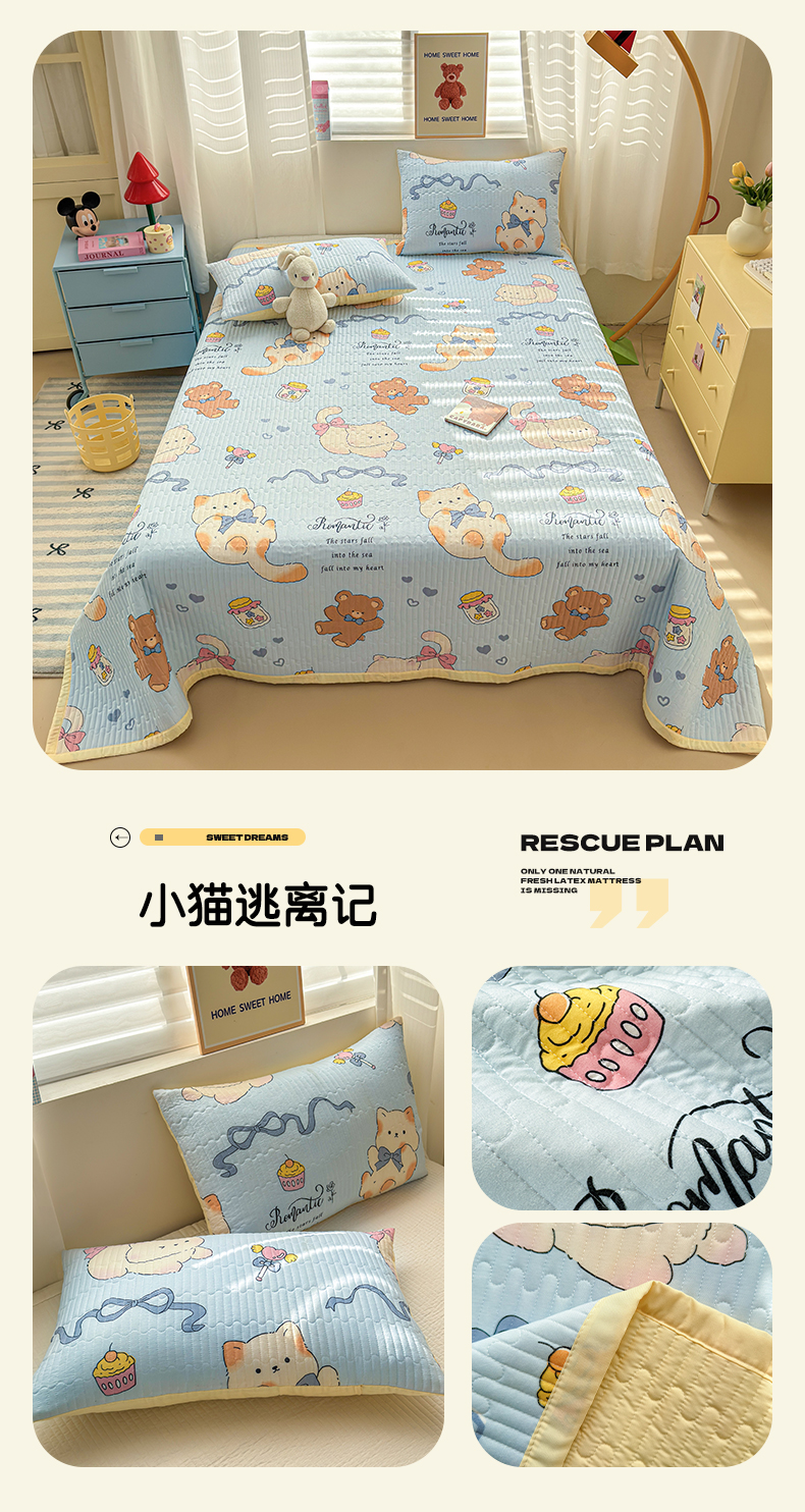 罗亿家纺 2025新款水洗棉双层纱夹棉绗缝床盖(提供买家秀) 小猫逃离记