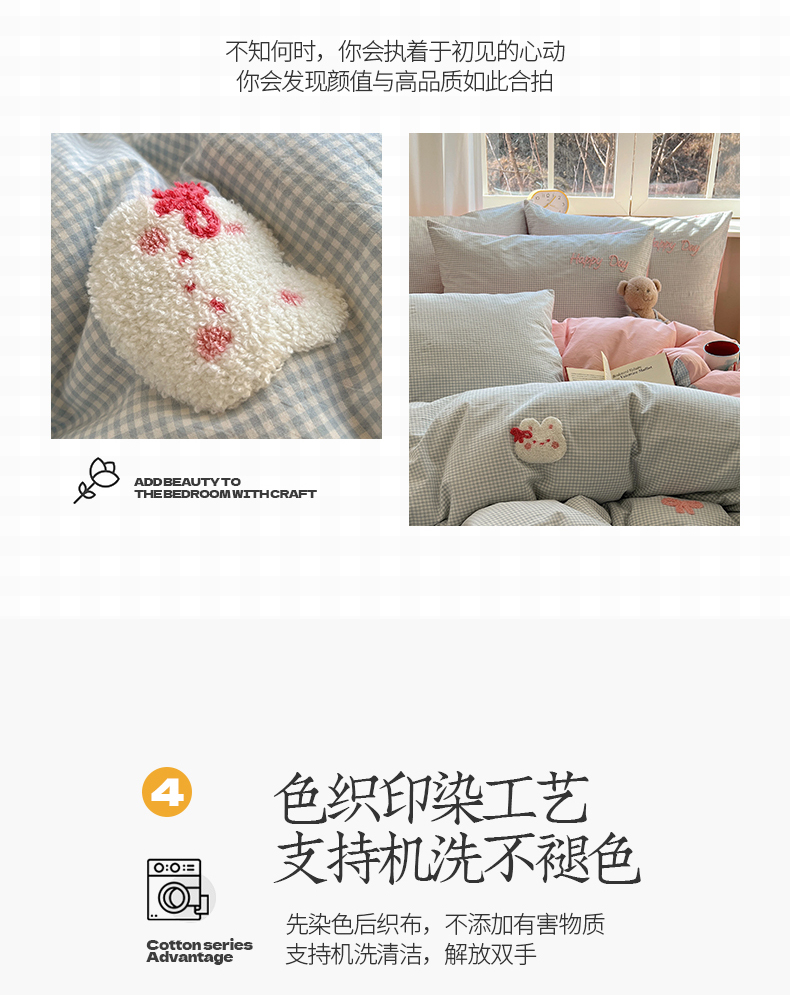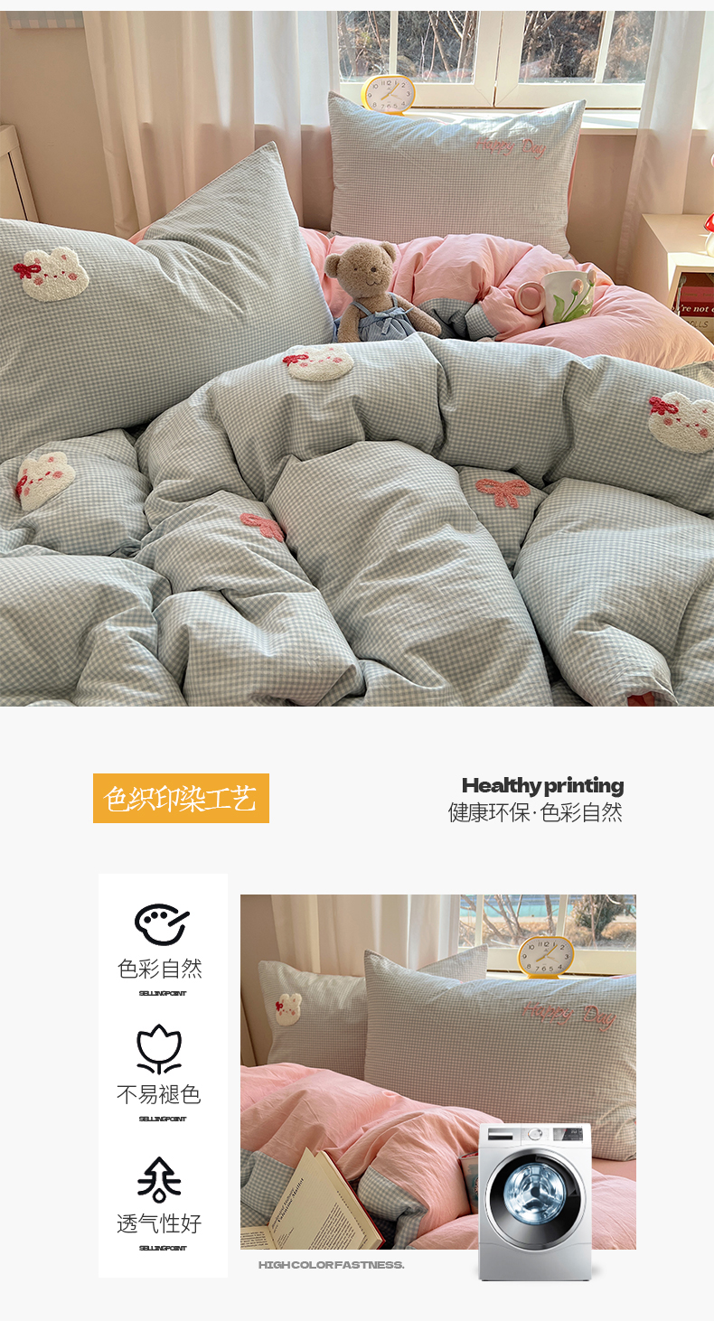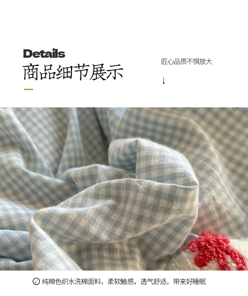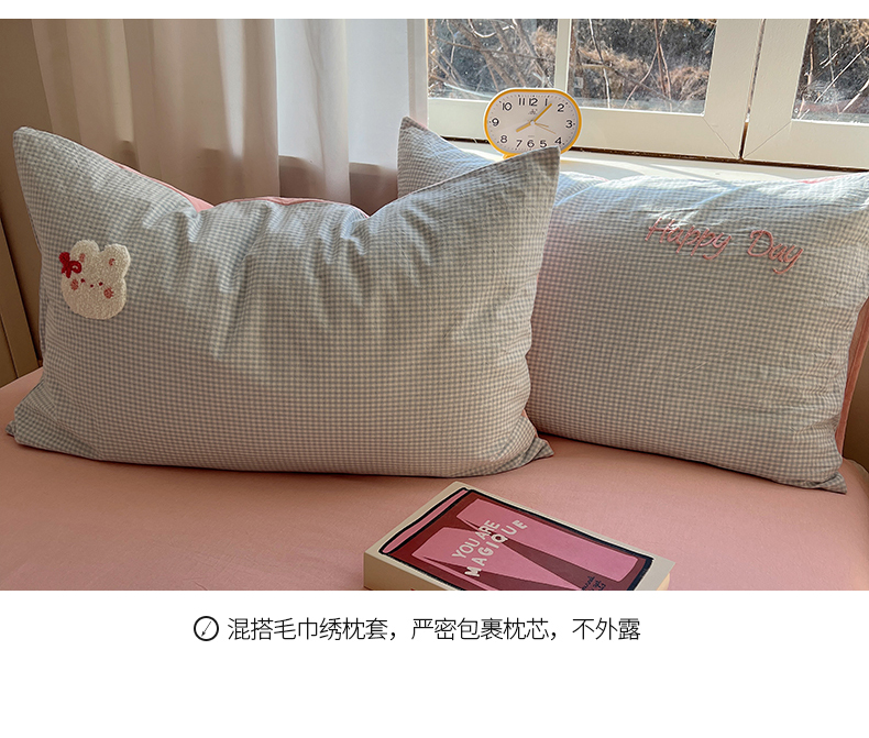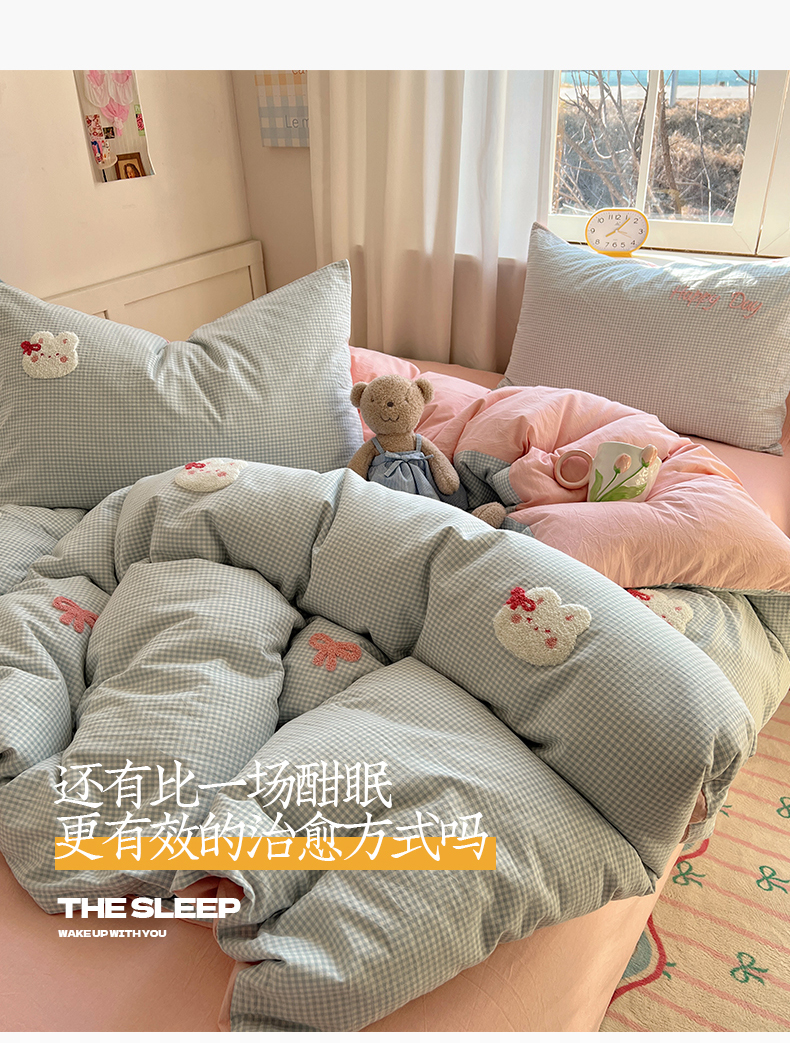当前位置: 91家纺网 > 商品网购 > 床品套件 > 四件套 > 水洗棉四件套 > 桃子家居 2025新款A类ins纯棉色织水洗棉毛巾绣奶油少女猫咪兔兔混搭系列四件套 色织水洗棉-兔兔蝴蝶结蓝粉
