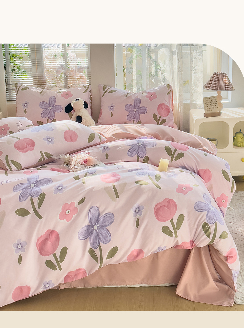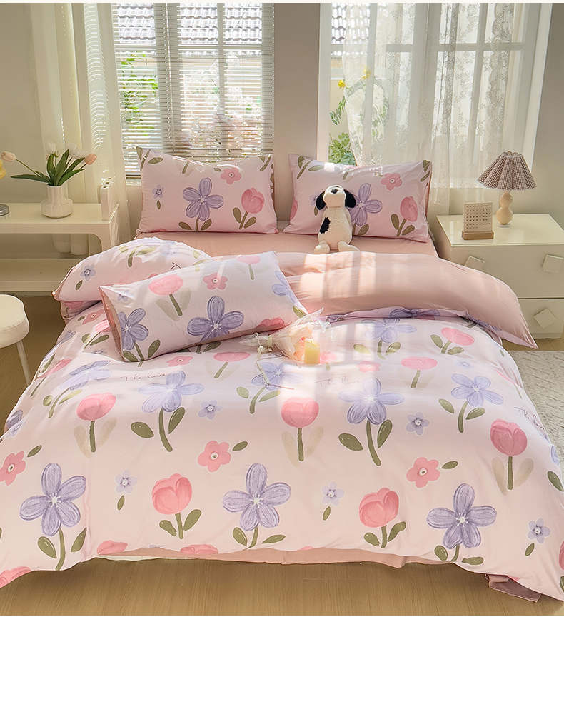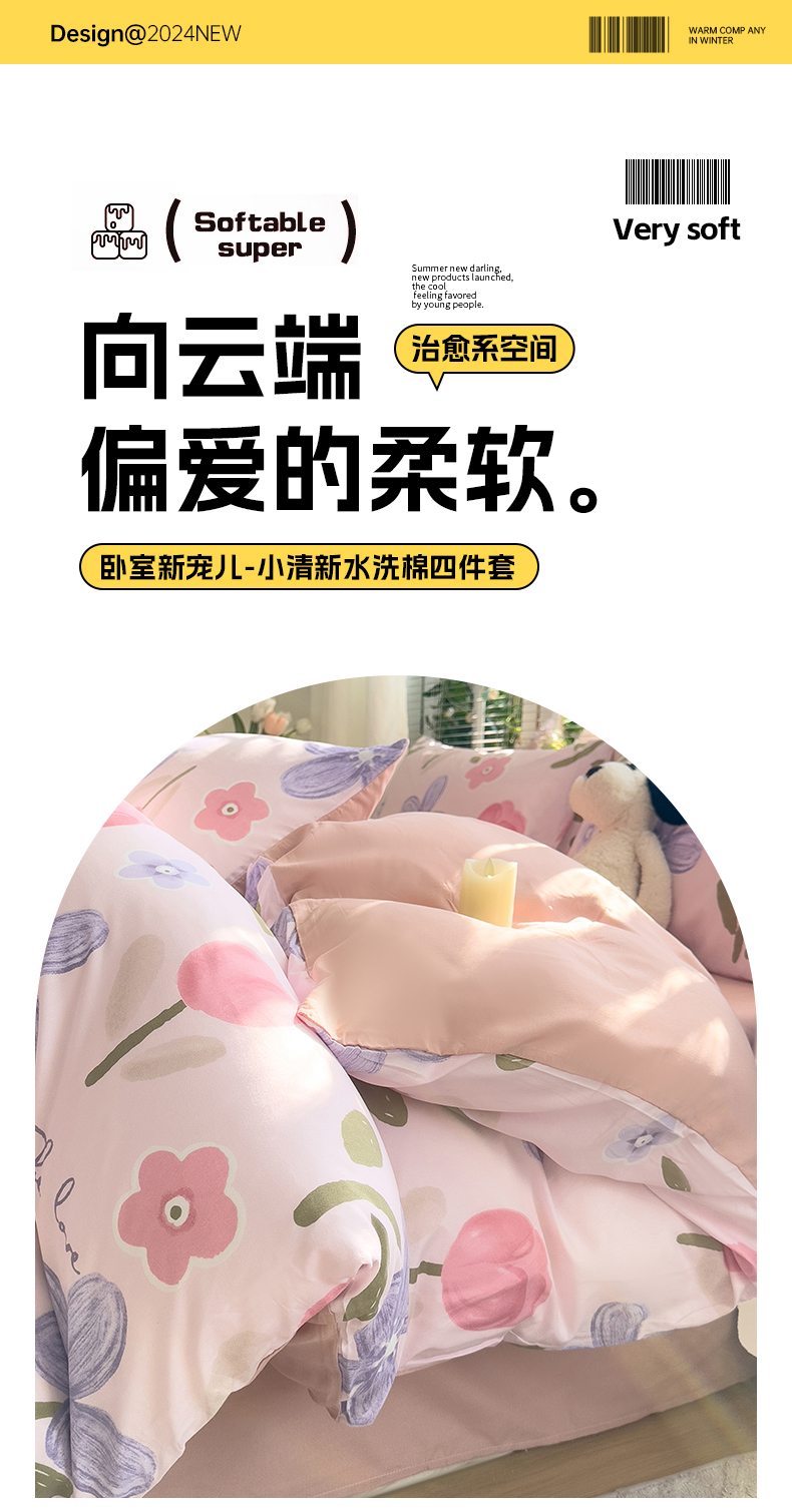 雅阁尔2025新款直播热款水洗棉四件套小碎花床单被套三件套 提香