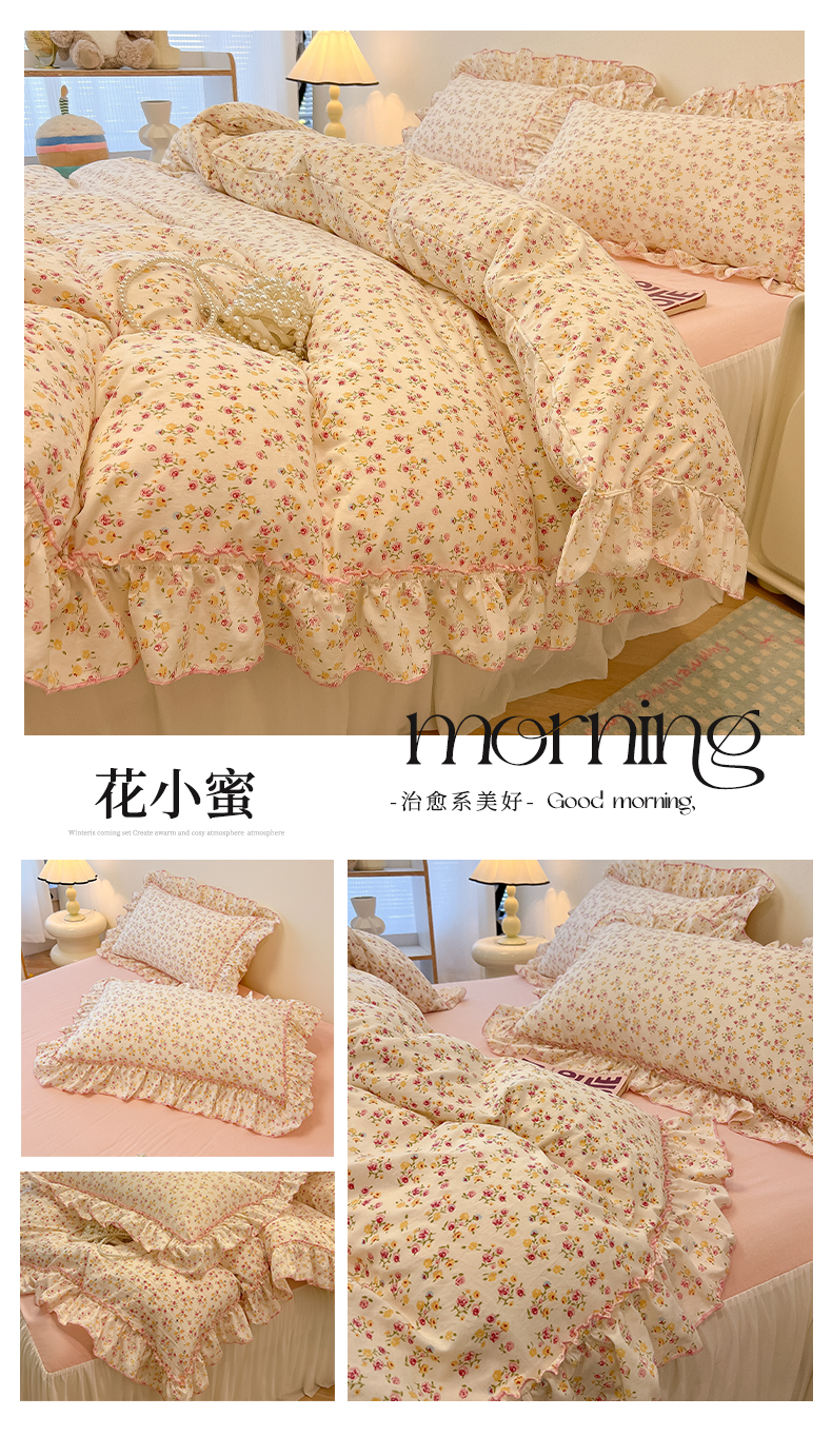 当前位置: 91家纺网 > 商品网购 > 床品套件 > 四件套 > 其它四件套 > 盼季家纺 2025新款公主风花边小清新水洗棉床上四件套床单被套床裙三件套-风格一 花小蜜