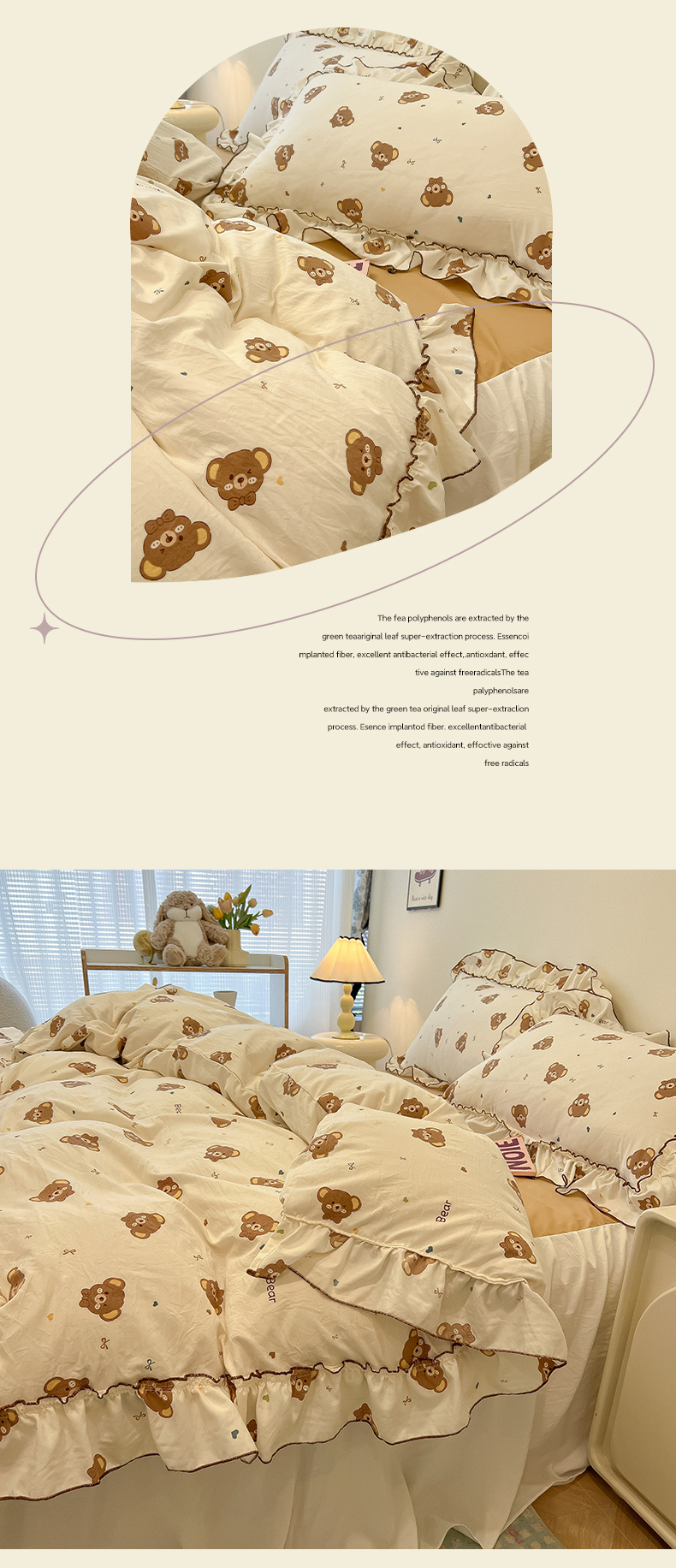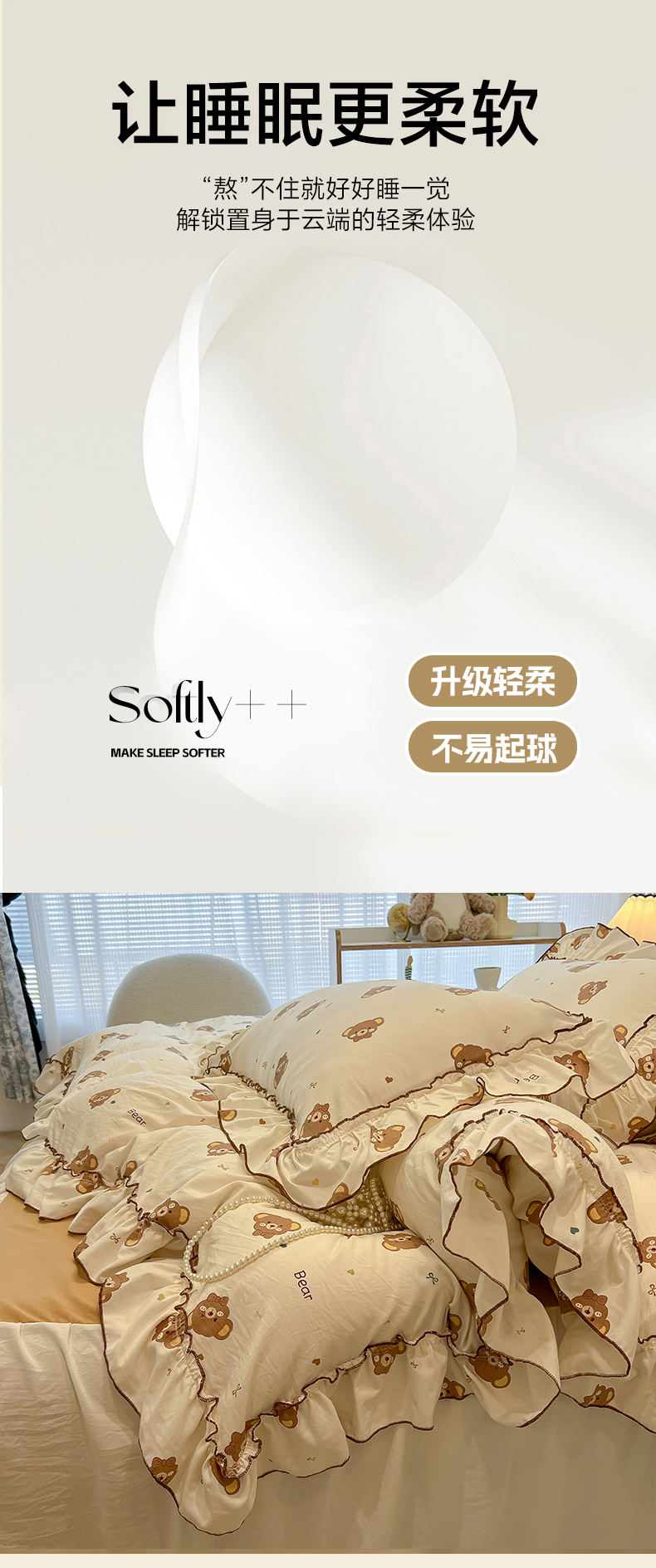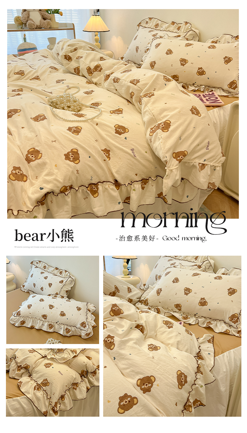 当前位置: 91家纺网 > 商品网购 > 床品套件 > 四件套 > 其它四件套 > 盼季家纺 2025新款公主风花边小清新水洗棉床上四件套床单被套床裙三件套-风格一 bear小熊