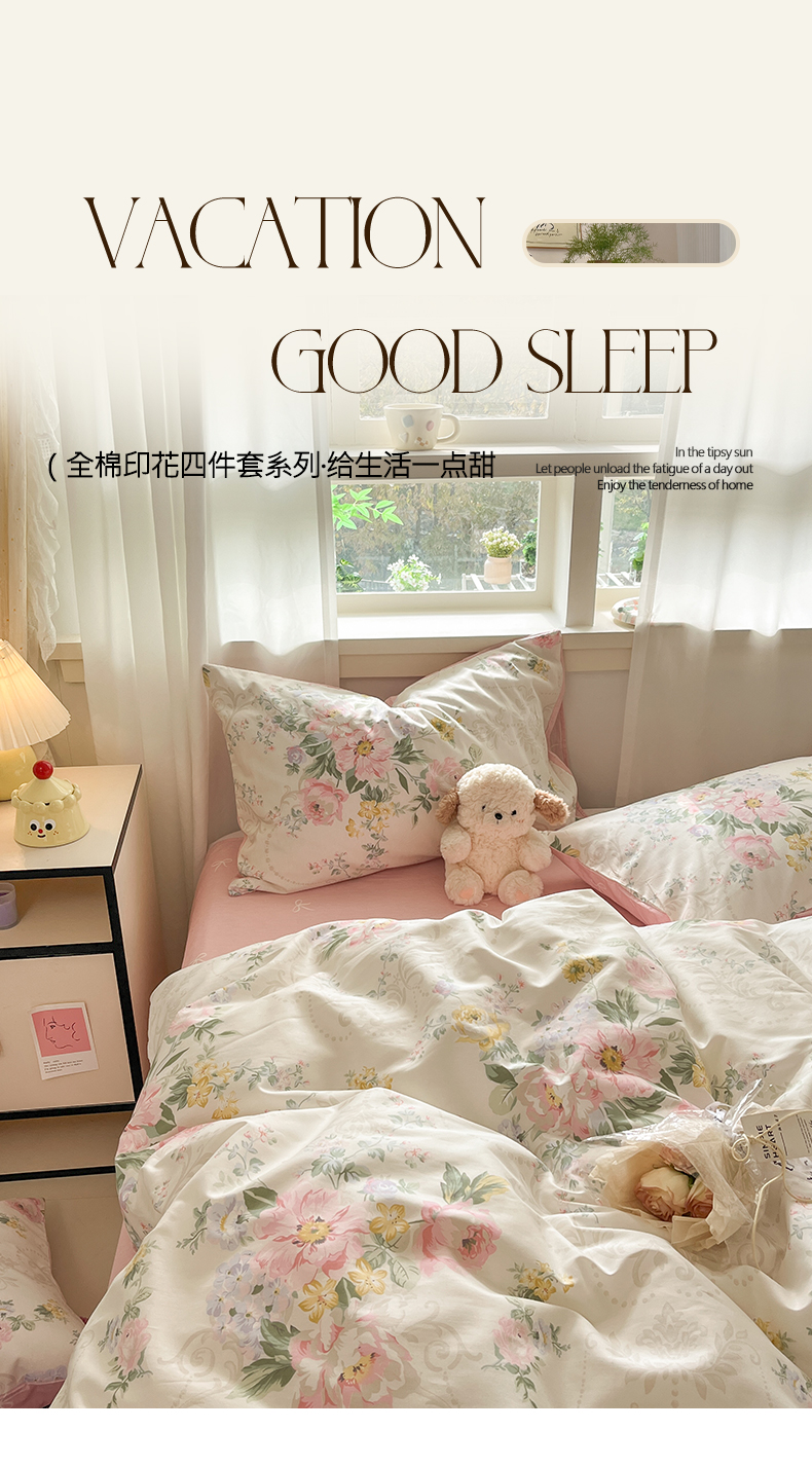 商品名称:盛馨家纺 2025新款ins小清新全棉四件套三件套床笠四件套跑量款系列 满香庭