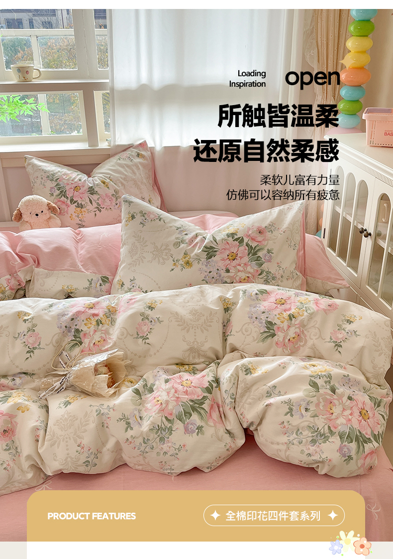 总盛馨家纺 2023新款ins北欧风高支高密全棉喷气小清新纯棉四件套,花丛兔,锦鲤,快乐小狗,梦幻,梦境小兔,入夏,若微,溪沐,叶墨新晨,樱桃兔,星球家园,草莓兔,花粉兔,花花小熊,花开富贵,花蓝兔,花胥梦粉,花韵,狂想曲蓝,萌宠乐园,蜜桃公主,莫奈花园蓝,奇妙幻想蓝,曲奇小熊,圣歌娜,诗情画意,桃桃兔,甜蜜小花,文特森 咖,小黄鸭,叶叶小花,油画草莓,丛林家园,粉色花海,可可大草莓,浪漫花朵,满庭花开,漫时光,暖阳紫,郁金香小兔