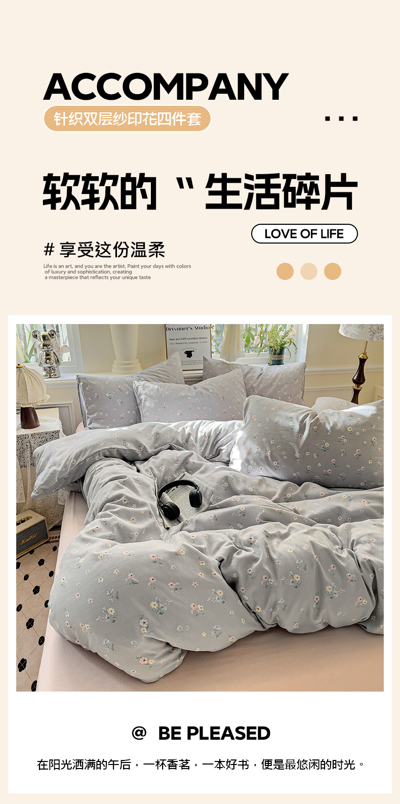 当前位置: 91家纺网 > 商品网购 > 床品套件 > 四件套 > 其它四件套 > 逸尚阁 2025新款针织双层纱印花四件套(提供买家秀) 繁花