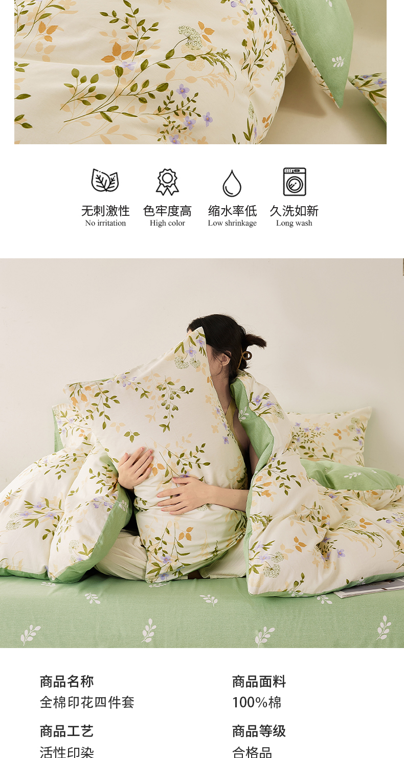 商品名称:潮邦创意家居 2025特价春夏新款13070全棉四件套 【第一批】 絮言