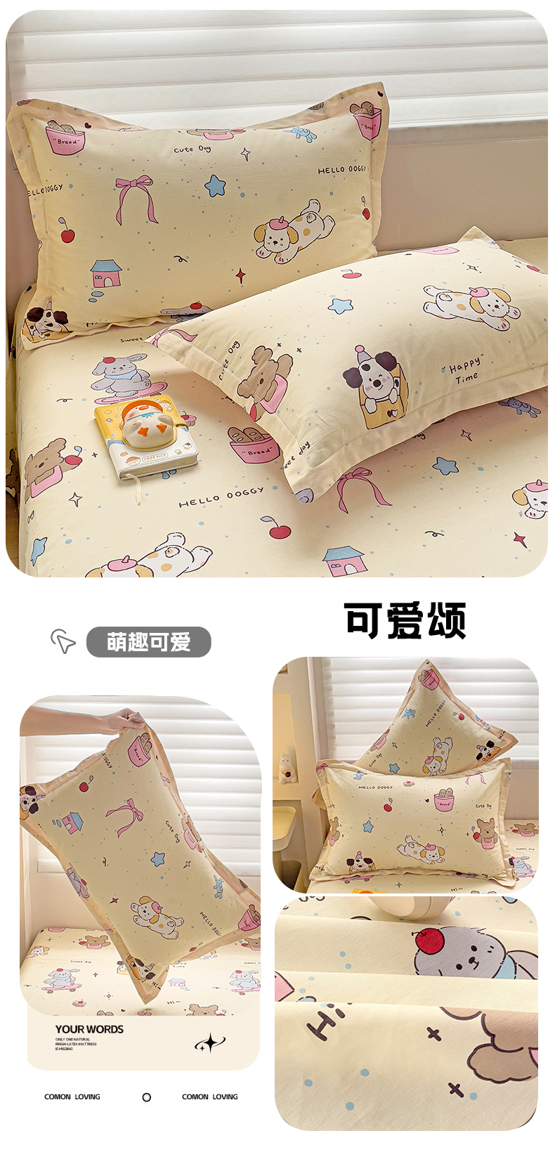商品名称:春雨家居 2025新款春夏卡通印花全棉单枕套 4.可爱颂