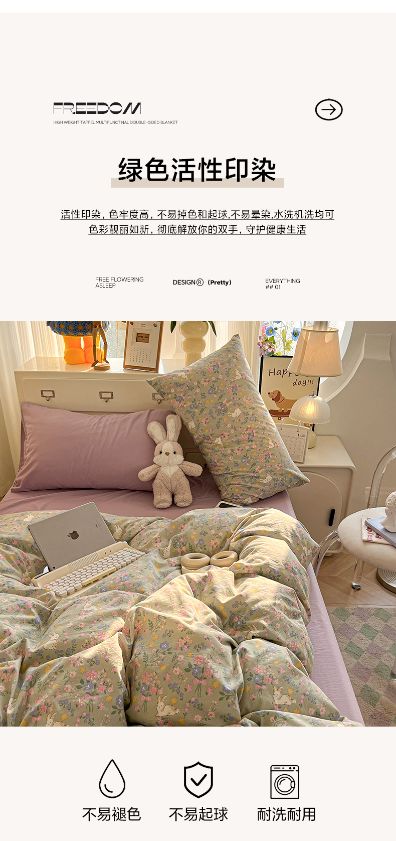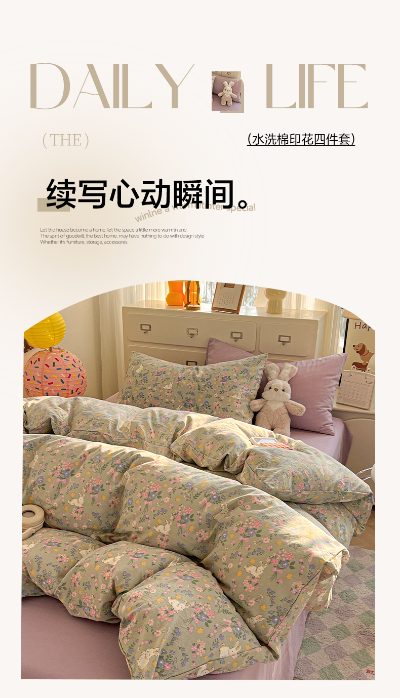 当前位置: 91家纺网 > 商品网购 > 床品套件 > 四件套 > 水洗棉四件套 > 韩巢家纺 2025新款超柔水洗棉印花被套床单床上用品四件套 丝带飞飞兔