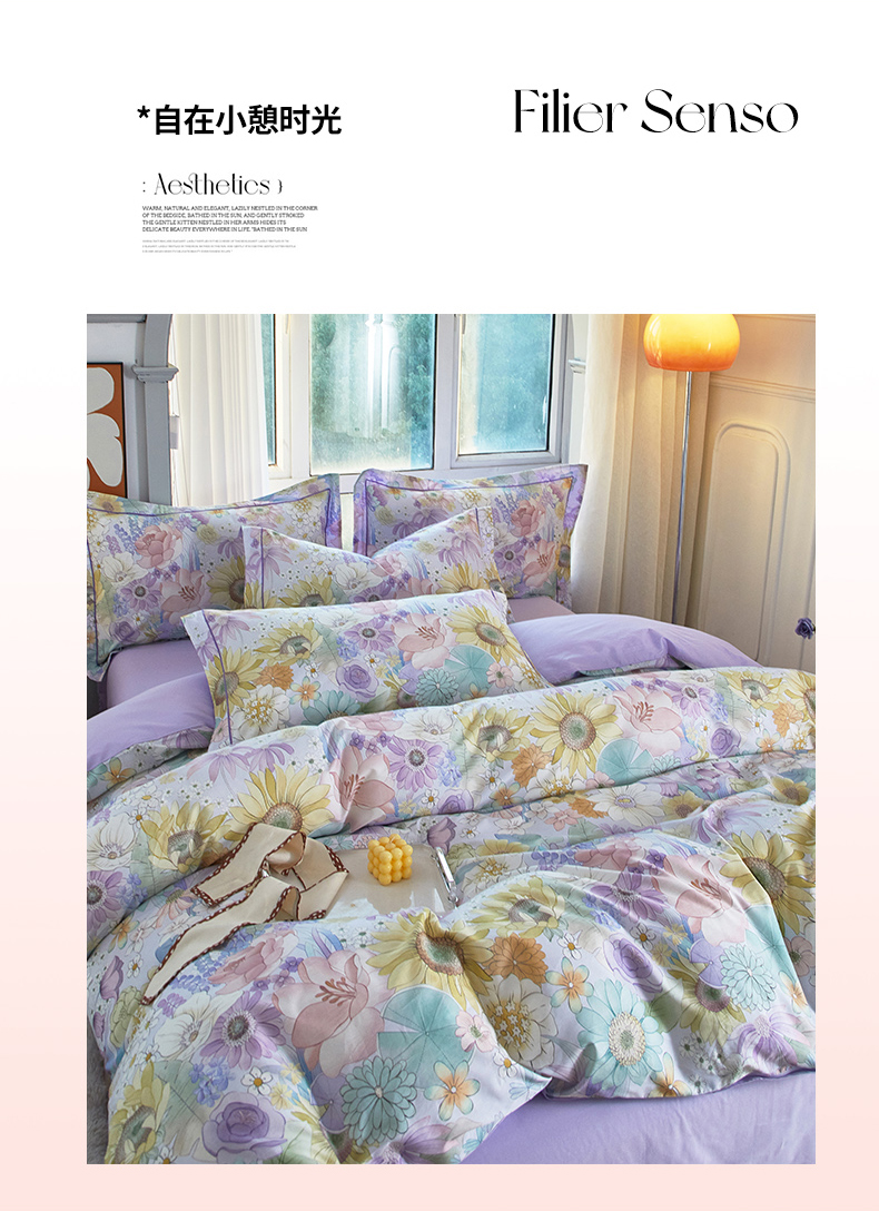 启航家居 2025新款全棉铂金棉数码印花四件套 普罗旺斯紫