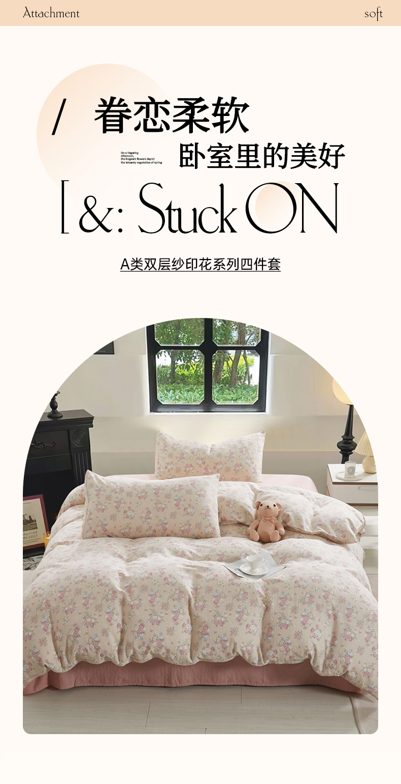 (总)棉小二 2025新款双层纱印花系列四件套,朝花-米咖,花悦-灰,茉彩-咖,婉茵-粉,朝花-粉,花悦-米,迷你小屋,茉彩-豆沙,慕思,情怀-粉,情怀-玉,婉茵-黄