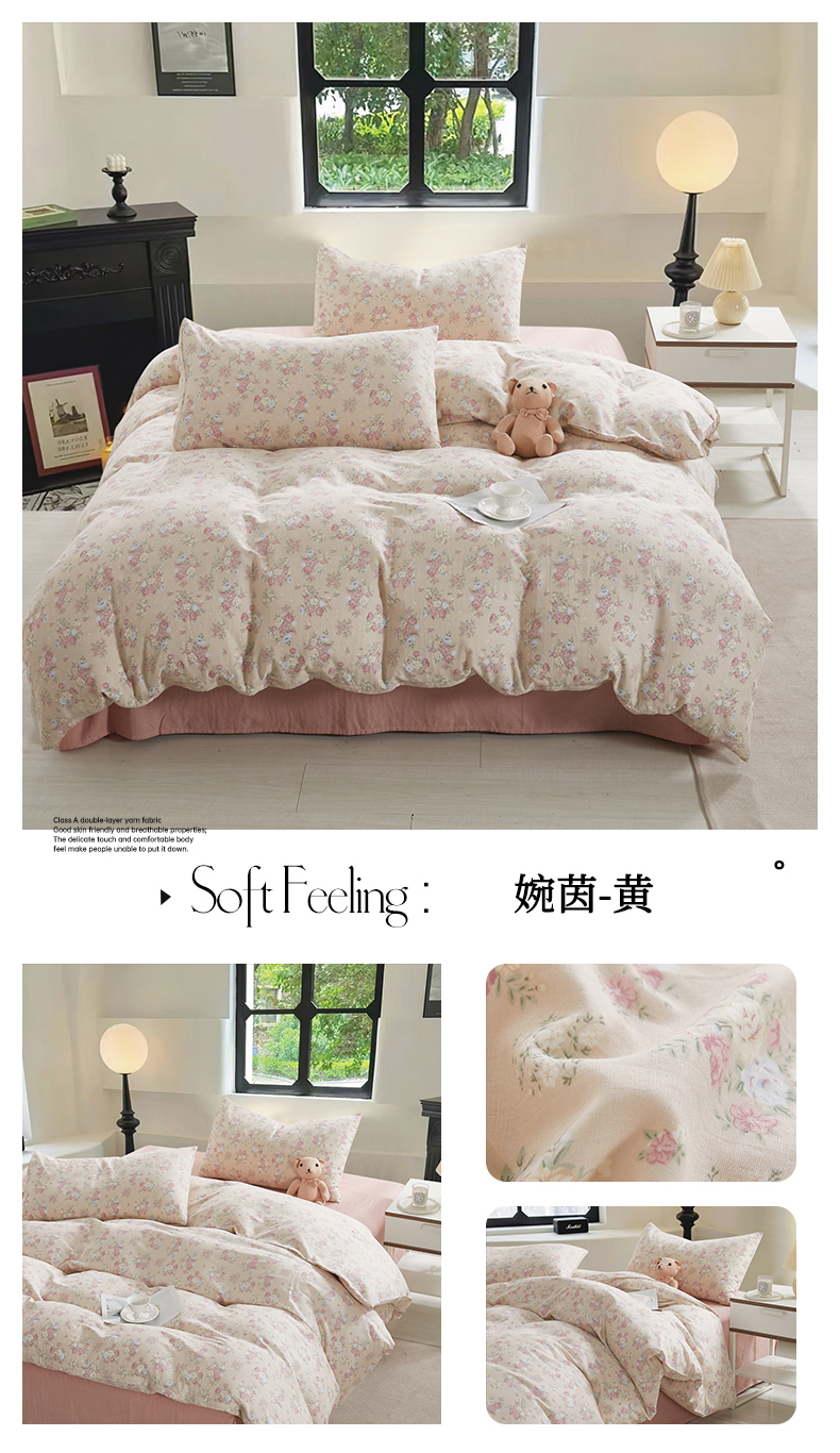 棉小二 2025新款双层纱印花系列四件套 婉茵-黄