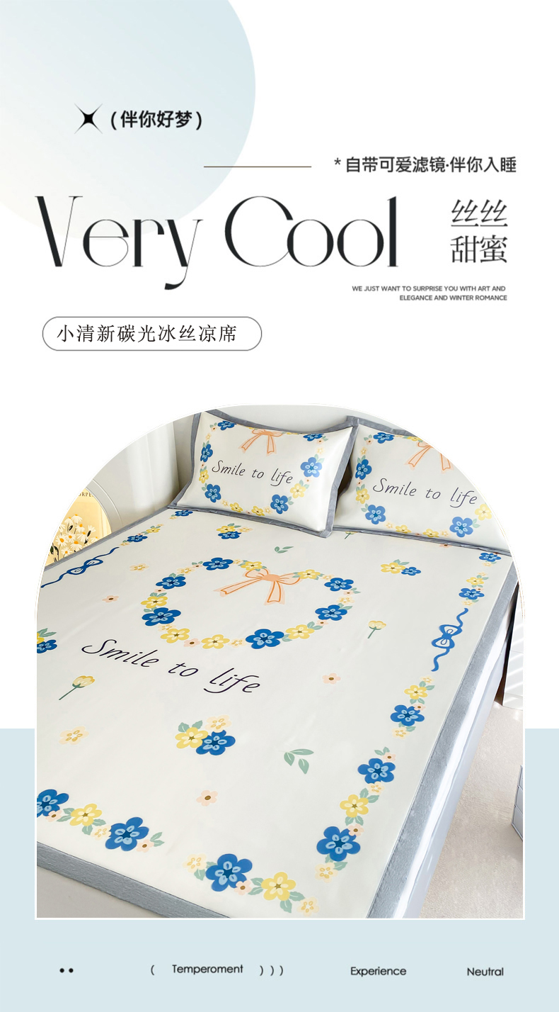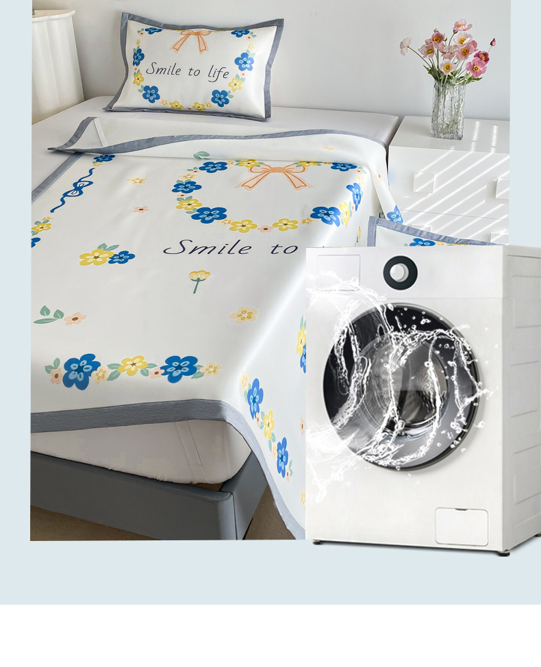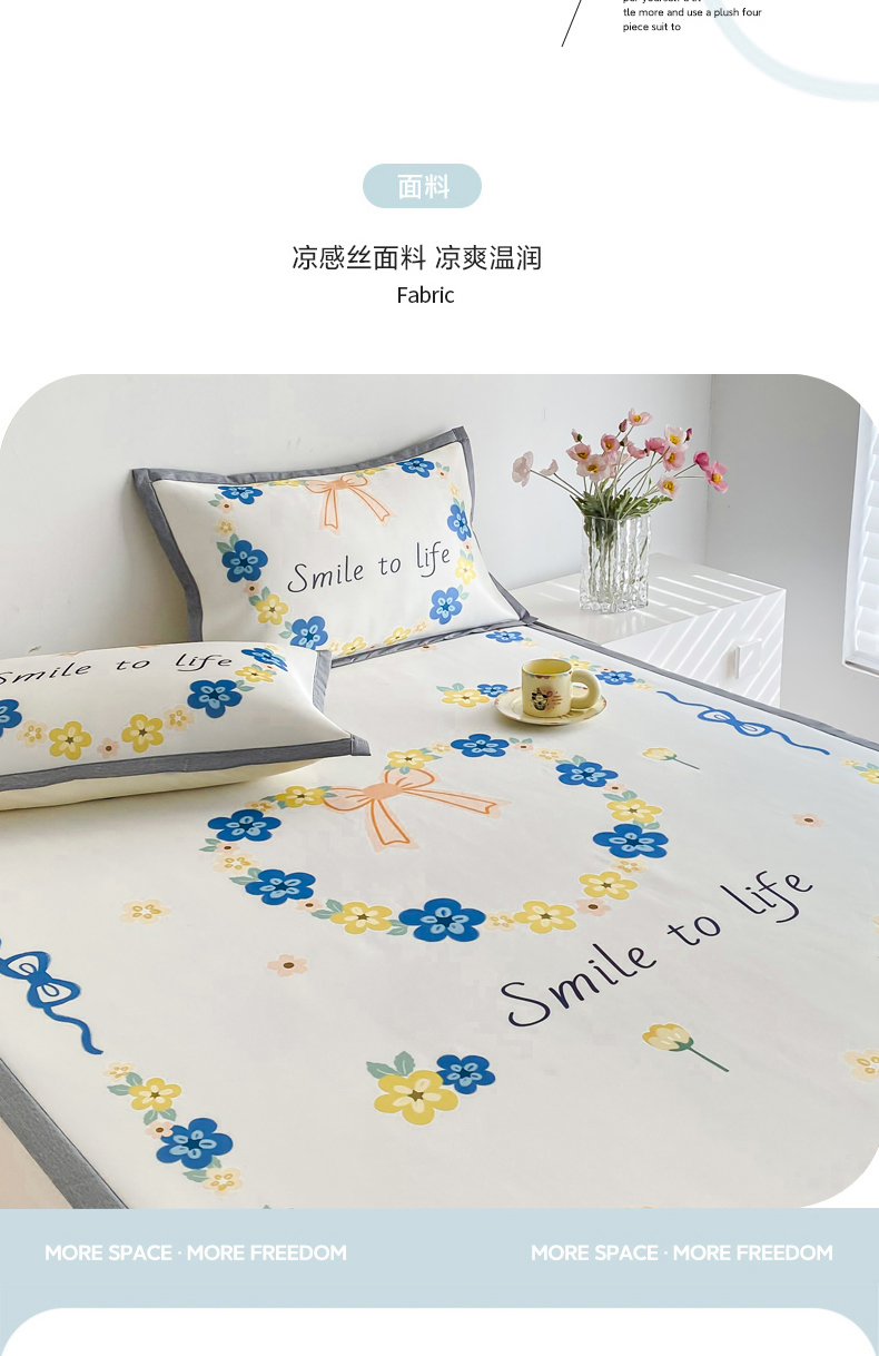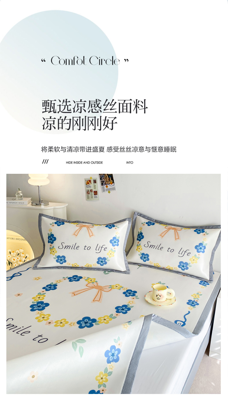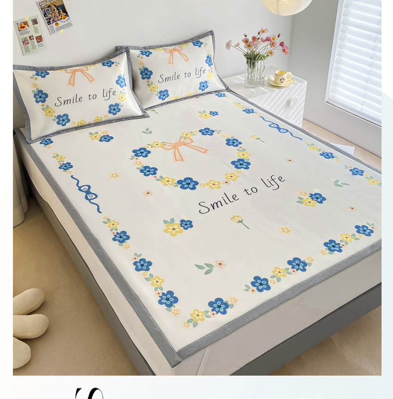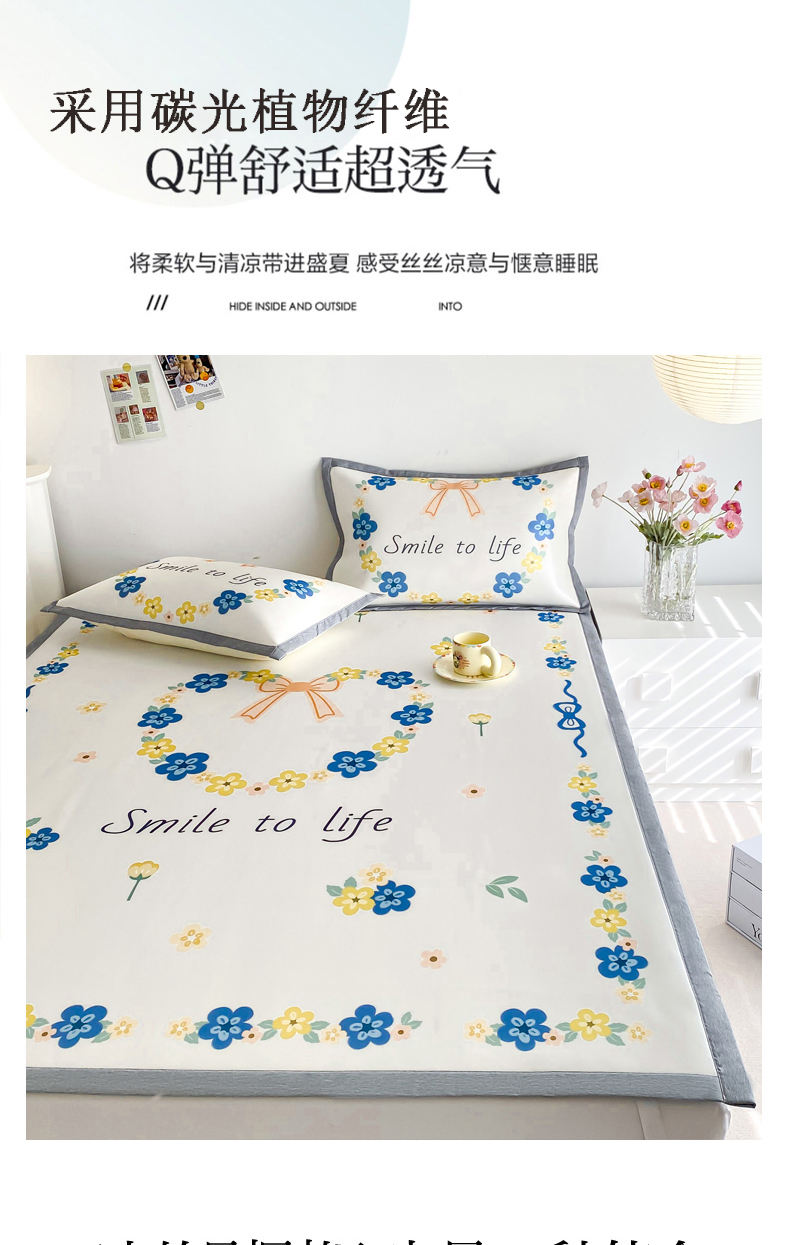 商品名称:邵依 2025新款数码印花烫光冰丝席凉席子藤席 蝶恋